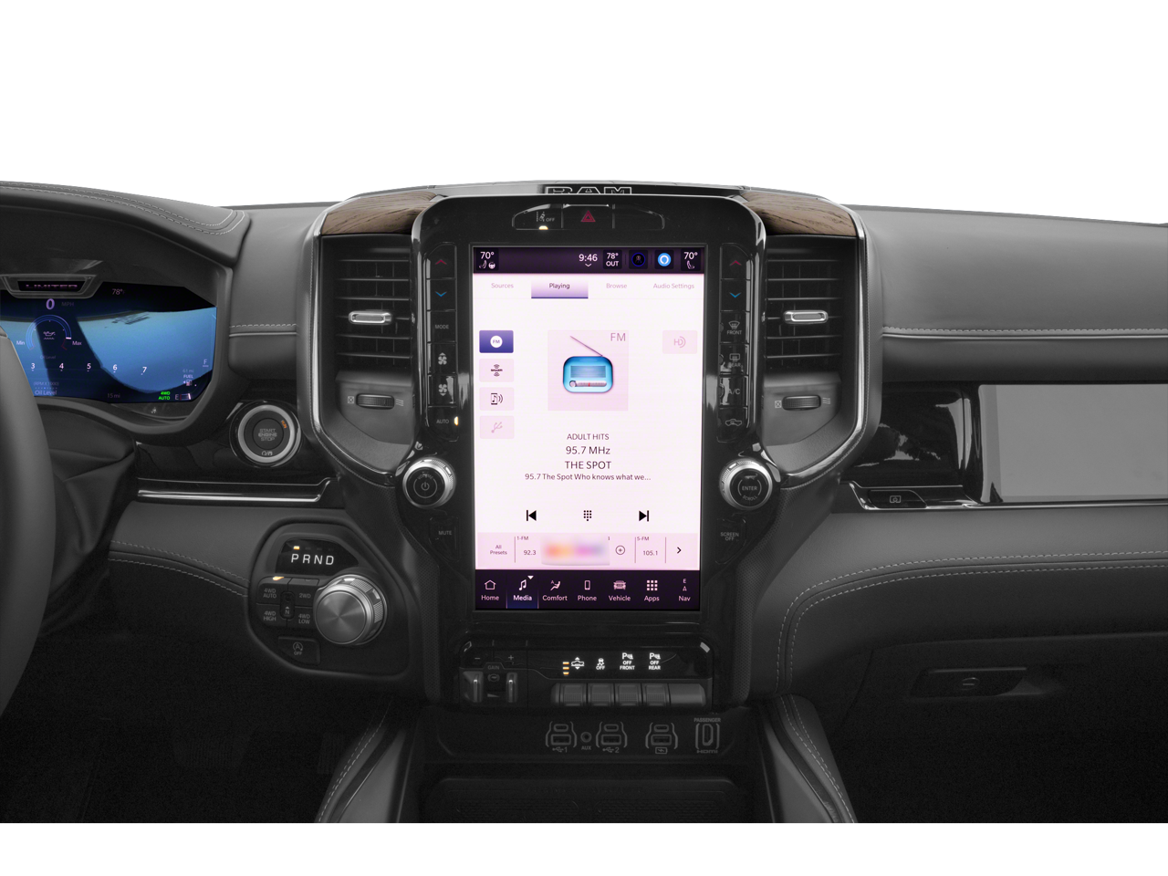 WHEELS: 22 X 9 PREMIUM PAINT/POLISHED Tires: 285/45R22XL BSW All Season, Pirelli Brand Tires, DUAL-PANE PANORAMIC SUNROOF LED Dome/Reading Lamp, Dome Dual LED Reading Lamp, MULTI-FUNCTION TAILGATE Remote Tailgate Release, RAMs Head Badge, QUICK ORDER PACKAGE 22K LONGHORN Engine: 3.0L I6 Hurricane HO Twin Turbo ESS, Transmission: 8-Speed Automatic (8HP75), Grille Surround 4 Chrome Texture 5 Chrome, Warm Chrome Key Fob, Longhorn Instrument Cluster Theme 3, Premium Door Trim Panel, Longhorn Badge, TRANSMISSION: 8-SPEED AUTOMATIC (8HP75) (STD), ENGINE: 3.0L I6 HURRICANE HO TWIN TURBO ESS (STD). Ram Longhorn with Diamond Black Crystal Pearlcoat exterior and Bison Brown interior features a Straight 6 Cylinder Engine.