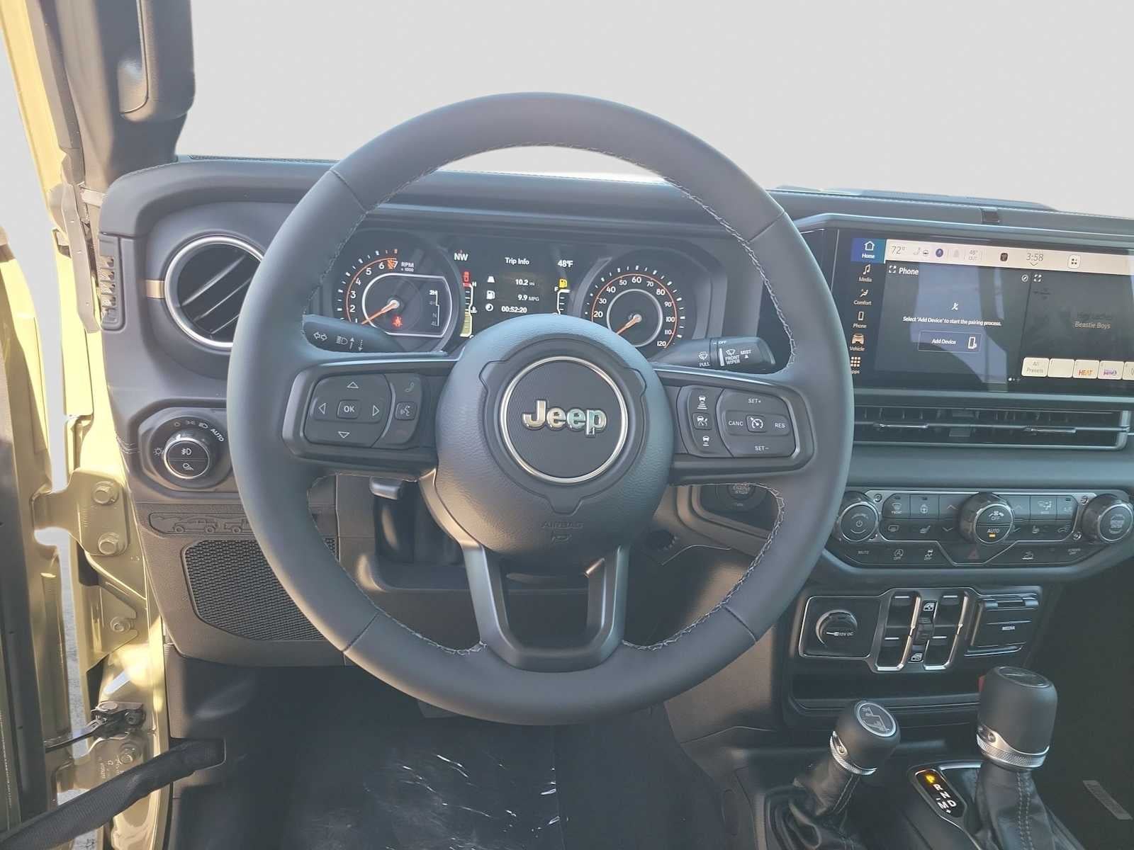 QUICK ORDER PACKAGE 24J TEXAS TRAIL 3.6L V6 24V VVT UPG I Engine w/ESS, 8-Speed Automatic 850RE Transmission, Leather Wrapped Shift Knob, Premium Door Trim Panel, Side Steps, Power 4-Way Passenger Lumbar Adjust, Power 4-Way Driver Lumbar Adjust, Body Color Fender Flares (2-Piece), Power Adjust 8-Way Front Passenger Seat, Security Alarm, Rear Armrest w/Cupholder Seat, Hard Seat Back, Advanced Brake Assist, Freedom Panel Storage Bag, Rear Window Defroster, Rear Sliding Window, Texas Trail, Automatic Headlamps, Deep Tint Sunscreen Windows, Central ADAS Decision Module (CADM), Full Speed Forward Collision Warning Plus, Power Heated Mirrors, Daytime Running Lamp System, Power Adjust 8-Way Driver Seat, Full Length Floor Console Premium Armrest, Premium Wrapped Steering Wheel, Leather Wrapped, CONVENIENCE GROUP Emergency/Assistance Call, Front Door Locks 2-Door Passive Entry, Remote Start System, Cluster 7.0 TFT Color Display, Universal Garage Door Opener, Daytime Running Lamp System, Heated Front Seats, Air Conditioning w/Auto Temp Control, Heated Steering Wheel, Corning Gorilla Glass, MOPAR SPRAY IN BEDLINER, LED HEADLAMP & FOG LAMP GROUP Daytime Running Lamps LED Accents, Front LED Fog Lamps, LED Premium Reflector Headlamps, 8-SPEED AUTOMATIC 850RE TRANSMISSION (STD), 3.6L V6 24V VVT UPG I ENGINE W/ESS (STD). Jeep Texas Trail with 41 exterior and Black interior features a V6 Cylinder Engine with 285 HP at 6400 RPM*.