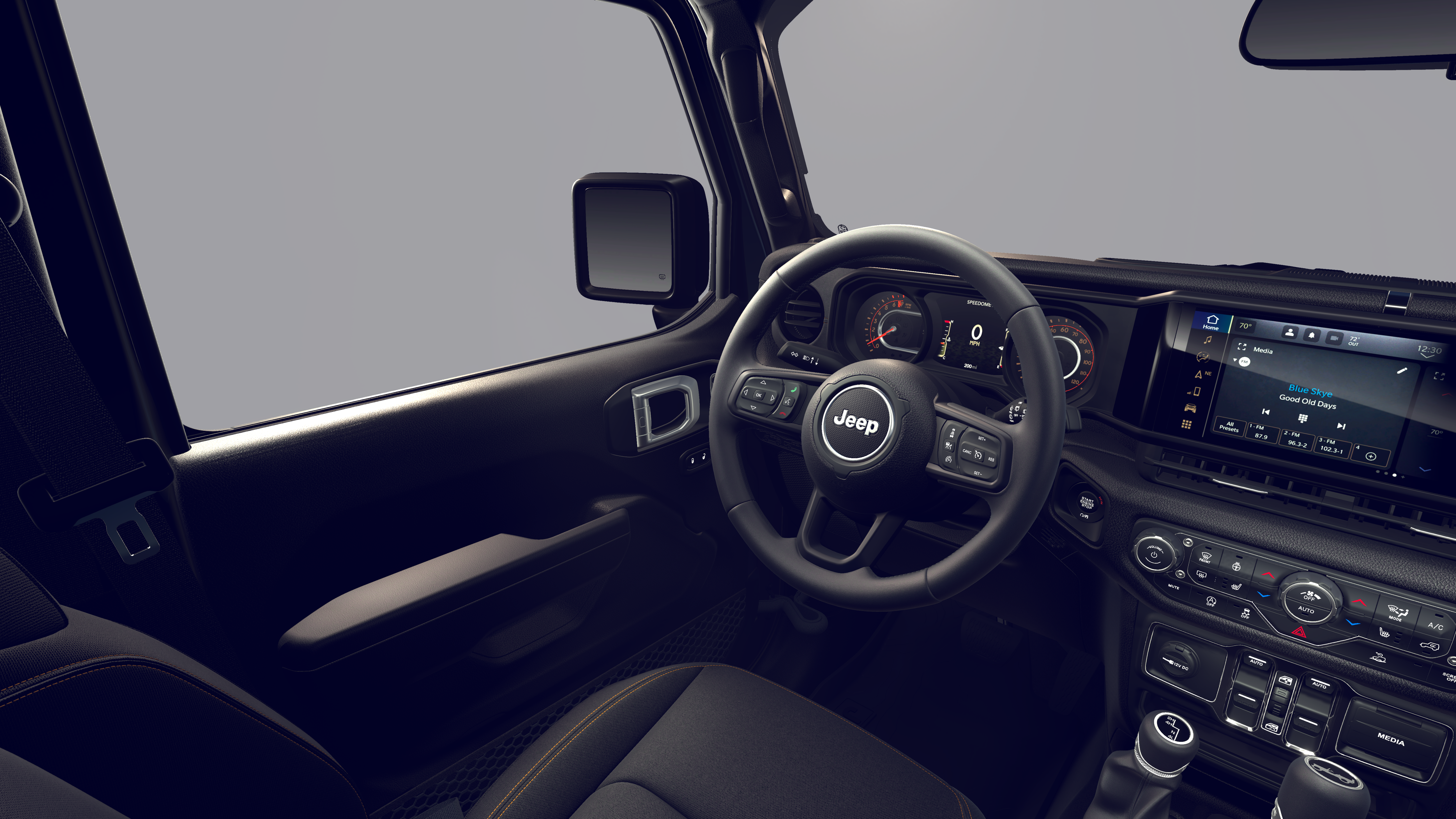 8-SPEED AUTOMATIC 850RE TRANSMISSION Adaptive Cruise Control w/Stop, Anti-Lock 4-Wheel Disc Brakes, Integrated Radar Camera Module (IRCM), Dana M200 Rear Axle, Selec-Speed Control, QUICK ORDER PACKAGE 24S SPORT S 3.6L V6 24V VVT UPG I Engine w/ESS, 8-Speed Automatic 850RE Transmission, Advanced Brake Assist, Power Heated Mirrors, Enhanced Adaptive Cruise Control, Automatic Headlamps, Corning Gorilla Glass, Premium Wrapped Steering Wheel, Security Alarm, Sun Visors w/Illuminated Vanity Mirrors, Full Speed Forward Collision Warning Plus, BLACK 3-PIECE HARD TOP Freedom Panel Storage Bag, Rear Window Defroster, Rear Window Wiper/Washer, No Soft Top, CONVENIENCE GROUP Emergency/Assistance Call, 2-Door Passive Entry, Front Door Locks, Cluster 7.0 TFT Color Display, Universal Garage Door Opener, Heated Front Seats, Air Conditioning w/Auto Temp Control, Heated Steering Wheel, Air Filtering, ALPINE PREMIUM AUDIO SYSTEM, 17 X 7.5 GRAY WHEELS (STD), LED HEADLAMP & FOG LAMP GROUP Front LED Fog Lamps, LED Premium Reflector Headlamps, 3.6L V6 24V VVT UPG I ENGINE W/ESS Engine Oil Cooler (STD). Jeep Sport S with 41 exterior and Black interior features a V6 Cylinder Engine with 285 HP at 6400 RPM*.
