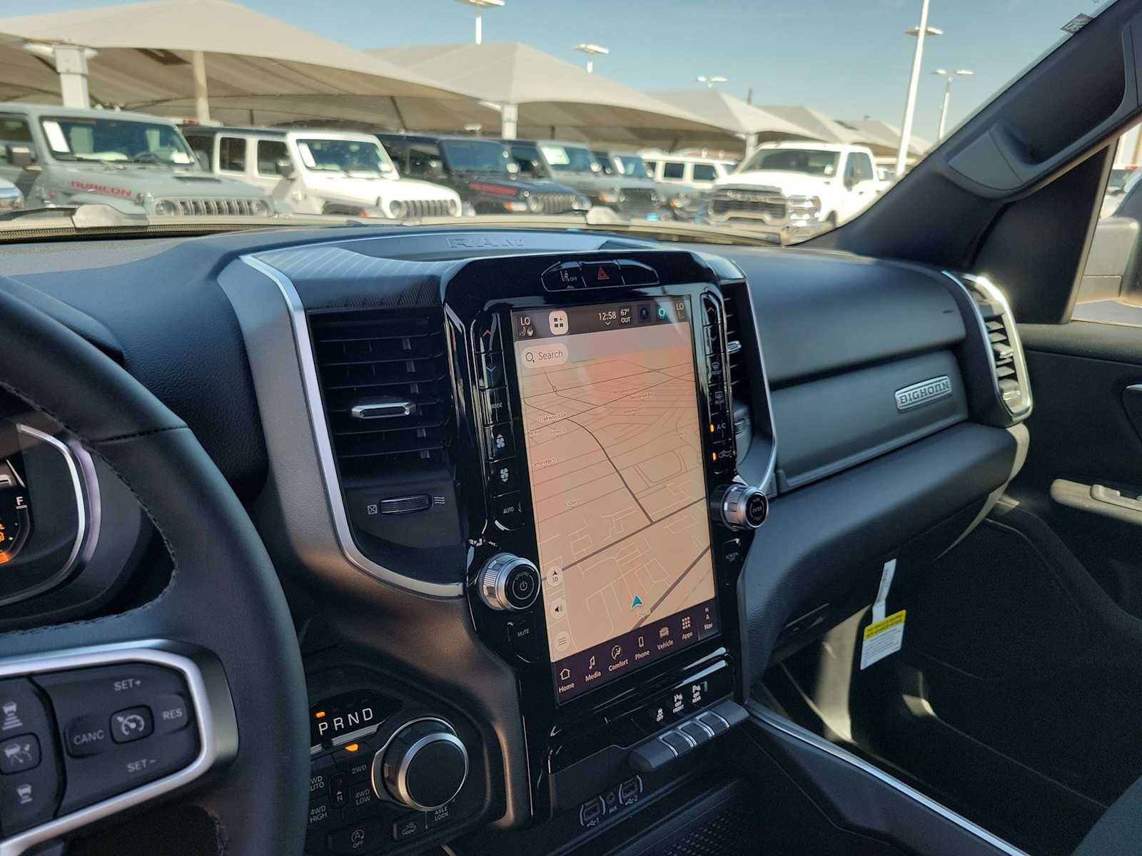 ENGINE: 5.7L V8 HEMI MDS VVT ETORQUE Active Noise Control System, Heavy Duty Engine Cooling, Passive Tuned Mass Damper, GVWR: 7,100 lbs, Dual Rear Exhaust w/Bright Tips, G/T Exhaust, 18 Aluminum Spare Wheel, BIG HORN LEVEL 2 EQUIPMENT GROUP SiriusXM Radio Service, Power Adjustable Pedals, Leather Wrapped Steering Wheel, 12 Touchscreen Display, Glove Box Lamp, Auto Power-Folding Mirrors, 115V Auxiliary Rear Power Outlet, Media Hub w/2 Charge Only USBs, Heated Front Seats, Security Alarm, Black Premium Power Mirrors, Premium Overhead Console, 9 Amplified Speakers w/Subwoofer, Disassociated Touchscreen Display, Body Color Fender Flares, Remote Tailgate Release, 115V Auxiliary Power Outlet, LED Dome Lamp w/On/Off Switch, Universal Garage Door Opener, 2nd Row In Floor Storage Bins, Sun Visors w/Illuminated Vanity Mirrors, LED Footwell Lighting, Rear Window Defroster, Rear View Auto Dim Mirror, Rear Power Sliding Window, GPS Navigation, Overhead LED Lamps, Wheels: 20 x 9 Aluminum Chrome Clad, NIGHT EDITION Tires: 275/55R20 OWL All Season, Bridgestone Brand Tires, Accent Color Premium Power Mirrors, Exterior Mirrors w/Supplemental Signals, Black Headlamp Bezels, Exterior Mirrors Courtesy Lamps, Grille Black Surround Black Mesh, Auto Power-Folding Mirrors, Wheels: 20 x 9.0 Aluminum Painted Clad, Auto Dim Exterior Driver Mirror, Black Exterior Truck Badging, Anti-Spin Differential Rear Axle, Accent Color Door Handles, Accent Color Tailgate Handle, Black Interior Accents, Dual Exhaust w/Black Tips, Body Color Front Bumper, Body Color Rear Bumper w/Step Pads, Black Tail Lamp Bezels, RAM Grille Badge - Black, Black Painted Exterior Mirrors Caps, OFF ROAD GROUP Front Extra HD Shock Absorbers, Off Road Decals, Rear Extra HD Shock Absorbers, Steering Gear Skid Plate, Tow Hooks, E-Locker Rear Axle, Transfer Case Skid Plate, Fuel Tank Skid Plate, Raised Ride Height, Selec-Speed Control, BED UTILITY GROUP MOPAR Spray In Bedliner, MOPAR 4 Adjustable Cargo Tie-Down Hooks, Pick-Up Box Lighting, Exterior 115V AC Outlet, MOPAR FRONT & REAR RUBBER FLOOR MATS, TRANSMISSION: 8-SPEED AUTOMATIC (8HP75). Ram Big Horn with Granite Crystal Metallic Clearcoat exterior and Black interior features a 8 Cylinder Engine with 395 HP at 5600 RPM*.