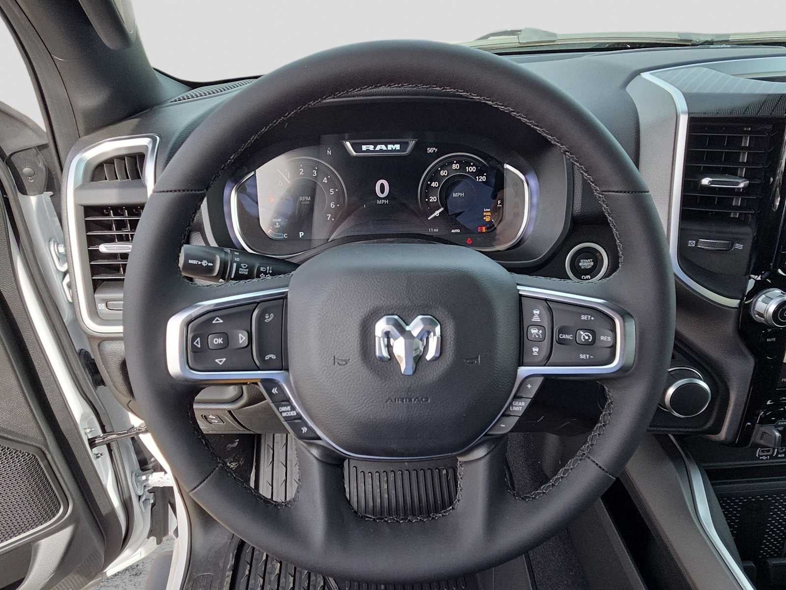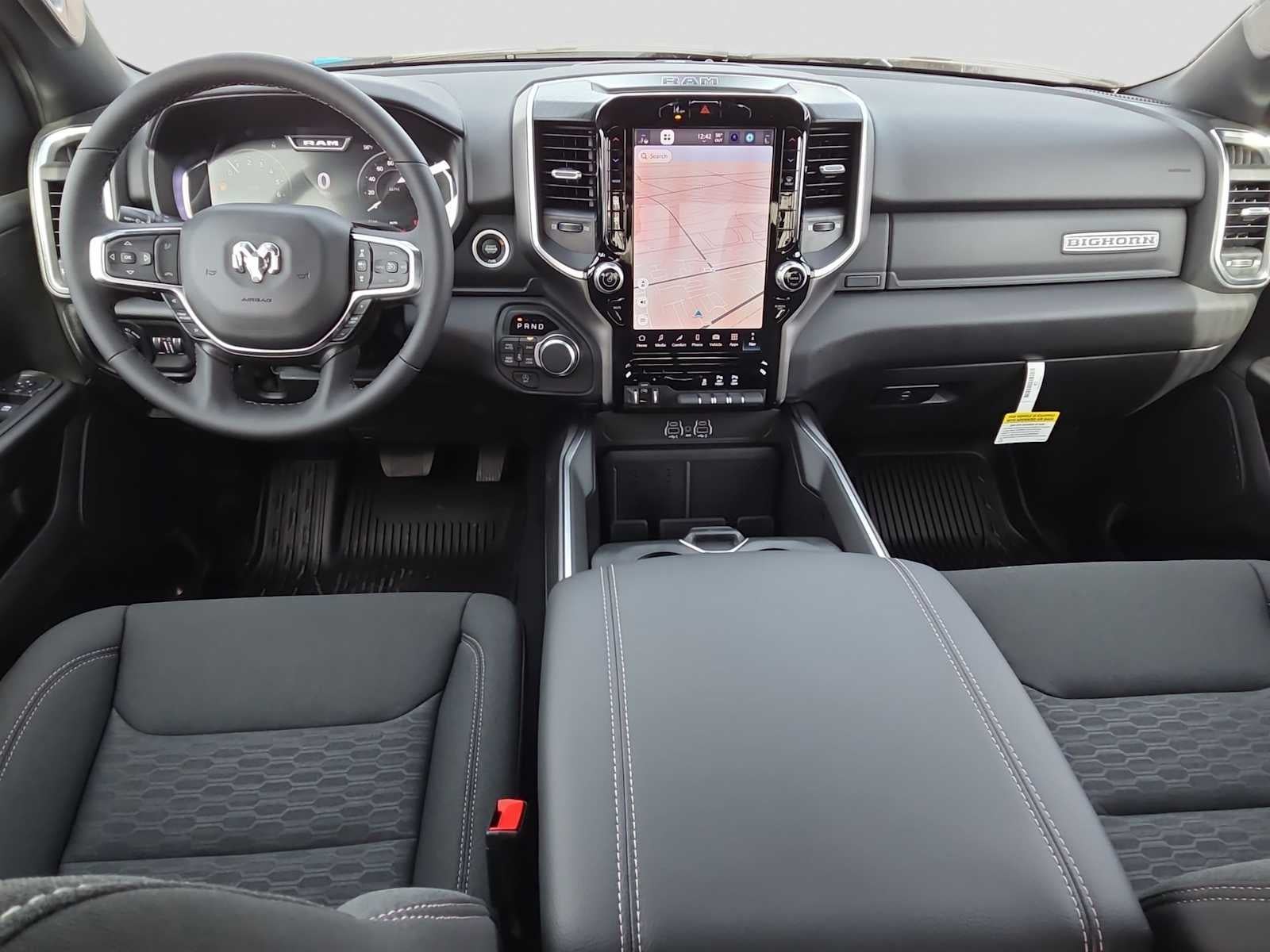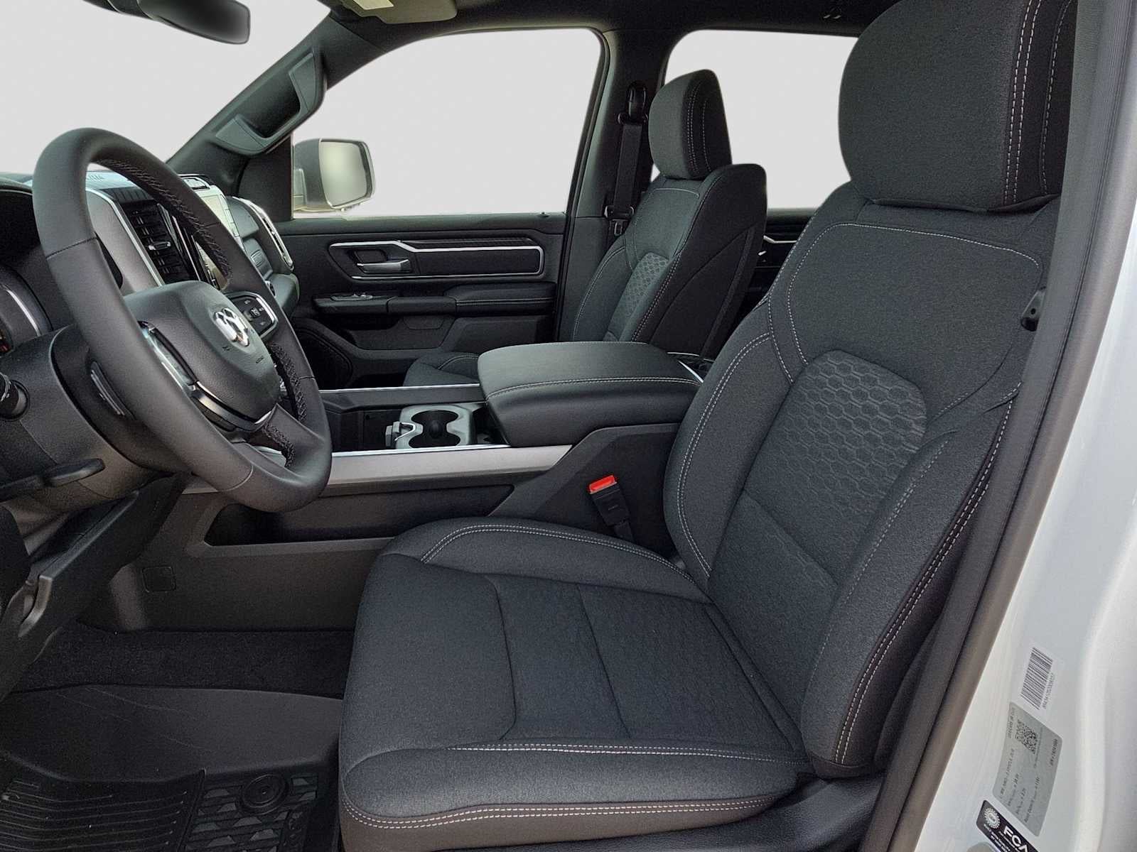 ENGINE: 5.7L V8 HEMI MDS VVT ETORQUE Active Noise Control System, Heavy Duty Engine Cooling, Passive Tuned Mass Damper, GVWR: 7,100 lbs, Dual Rear Exhaust w/Bright Tips, G/T Exhaust, 18 Aluminum Spare Wheel, BIG HORN LEVEL 2 EQUIPMENT GROUP SiriusXM Radio Service, Power Adjustable Pedals, Leather Wrapped Steering Wheel, 12 Touchscreen Display, Glove Box Lamp, Auto Power-Folding Mirrors, 115V Auxiliary Rear Power Outlet, Media Hub w/2 Charge Only USBs, Heated Front Seats, Security Alarm, Black Premium Power Mirrors, Premium Overhead Console, 9 Amplified Speakers w/Subwoofer, Disassociated Touchscreen Display, Body Color Fender Flares, Remote Tailgate Release, 115V Auxiliary Power Outlet, LED Dome Lamp w/On/Off Switch, Universal Garage Door Opener, 2nd Row In Floor Storage Bins, Sun Visors w/Illuminated Vanity Mirrors, LED Footwell Lighting, Rear Window Defroster, Rear View Auto Dim Mirror, Rear Power Sliding Window, GPS Navigation, Overhead LED Lamps, Wheels: 20 x 9 Aluminum Chrome Clad, NIGHT EDITION Tires: 275/55R20 OWL All Season, Bridgestone Brand Tires, Accent Color Premium Power Mirrors, Exterior Mirrors w/Supplemental Signals, Black Headlamp Bezels, Exterior Mirrors Courtesy Lamps, Grille Black Surround Black Mesh, Auto Power-Folding Mirrors, Wheels: 20 x 9.0 Aluminum Painted Clad, Auto Dim Exterior Driver Mirror, Black Exterior Truck Badging, Anti-Spin Differential Rear Axle, Accent Color Door Handles, Accent Color Tailgate Handle, Black Interior Accents, Dual Exhaust w/Black Tips, Body Color Front Bumper, Body Color Rear Bumper w/Step Pads, Black Tail Lamp Bezels, RAM Grille Badge - Black, Black Painted Exterior Mirrors Caps, MOPAR FRONT & REAR RUBBER FLOOR MATS, TRANSMISSION: 8-SPEED AUTOMATIC (8HP75). Ram Big Horn with Bright White Clearcoat exterior and Black interior features a 8 Cylinder Engine with 395 HP at 5600 RPM*.