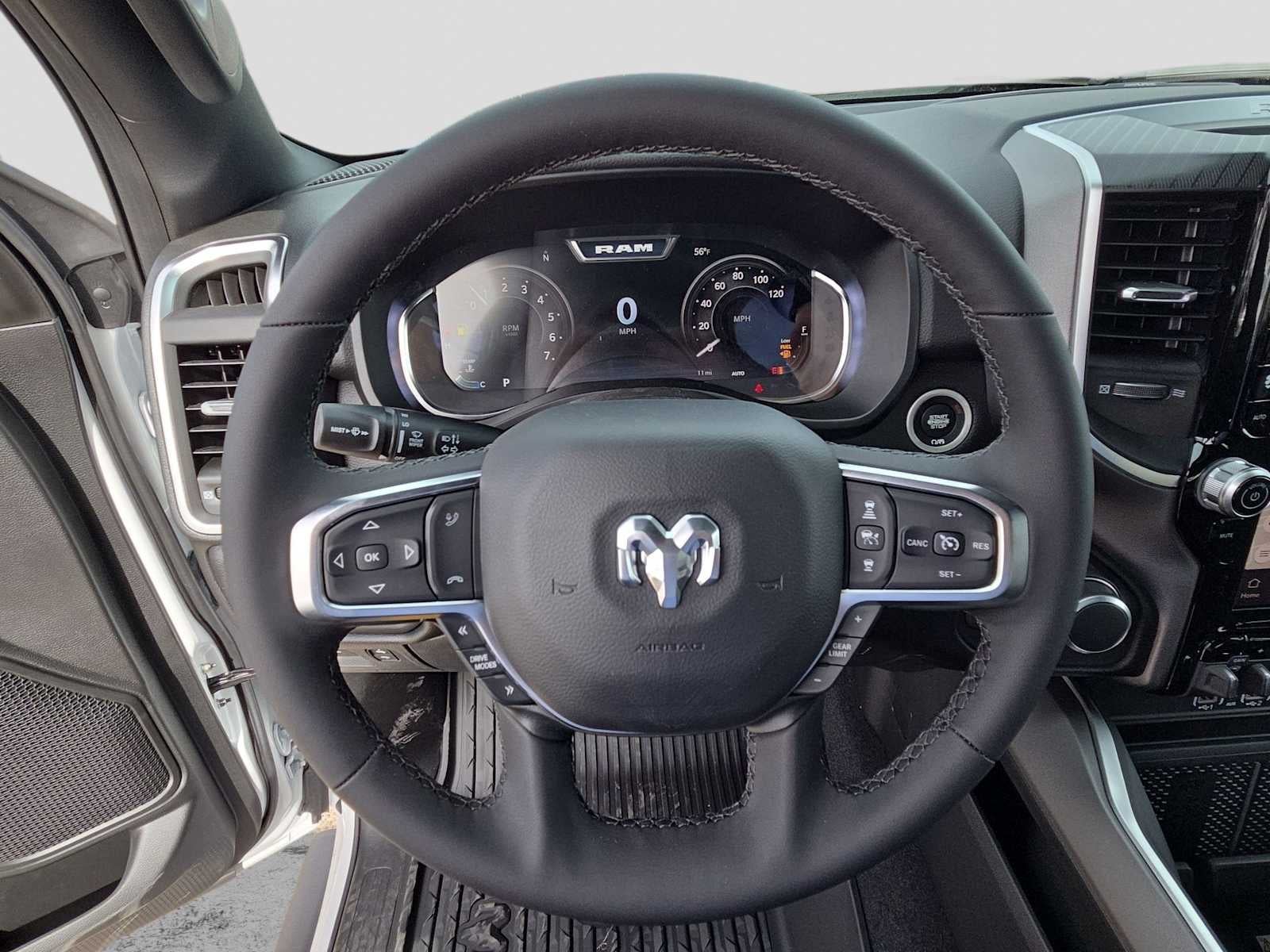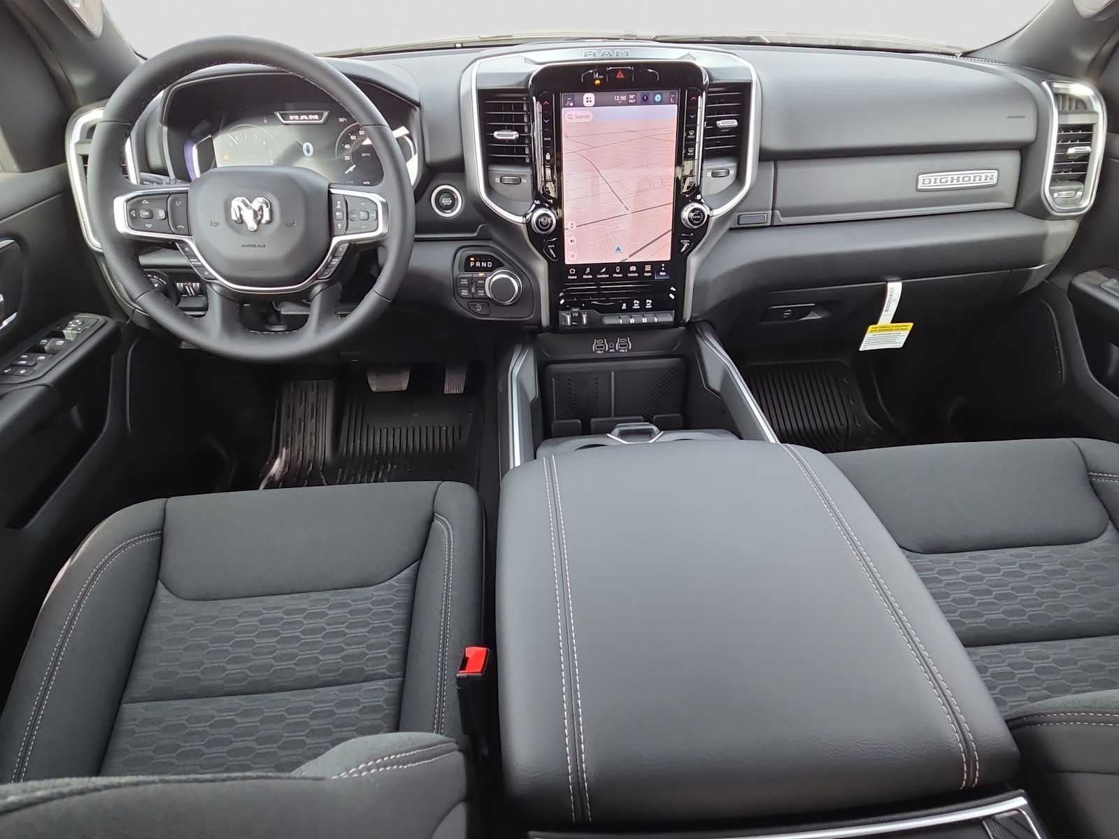 ENGINE: 5.7L V8 HEMI MDS VVT ETORQUE Active Noise Control System, Heavy Duty Engine Cooling, Passive Tuned Mass Damper, GVWR: 7,100 lbs, Dual Rear Exhaust w/Bright Tips, G/T Exhaust, 18 Aluminum Spare Wheel, BIG HORN LEVEL 2 EQUIPMENT GROUP SiriusXM Radio Service, Power Adjustable Pedals, Leather Wrapped Steering Wheel, 12 Touchscreen Display, Glove Box Lamp, Auto Power-Folding Mirrors, 115V Auxiliary Rear Power Outlet, Media Hub w/2 Charge Only USBs, Heated Front Seats, Security Alarm, Black Premium Power Mirrors, Premium Overhead Console, 9 Amplified Speakers w/Subwoofer, Disassociated Touchscreen Display, Body Color Fender Flares, Remote Tailgate Release, 115V Auxiliary Power Outlet, LED Dome Lamp w/On/Off Switch, Universal Garage Door Opener, 2nd Row In Floor Storage Bins, Sun Visors w/Illuminated Vanity Mirrors, LED Footwell Lighting, Rear Window Defroster, Rear View Auto Dim Mirror, Rear Power Sliding Window, GPS Navigation, Overhead LED Lamps, Wheels: 20 x 9 Aluminum Chrome Clad, NIGHT EDITION Tires: 275/55R20 OWL All Season, Bridgestone Brand Tires, Accent Color Premium Power Mirrors, Exterior Mirrors w/Supplemental Signals, Black Headlamp Bezels, Exterior Mirrors Courtesy Lamps, Grille Black Surround Black Mesh, Auto Power-Folding Mirrors, Wheels: 20 x 9.0 Aluminum Painted Clad, Auto Dim Exterior Driver Mirror, Black Exterior Truck Badging, Anti-Spin Differential Rear Axle, Accent Color Door Handles, Accent Color Tailgate Handle, Black Interior Accents, Dual Exhaust w/Black Tips, Body Color Front Bumper, Body Color Rear Bumper w/Step Pads, Black Tail Lamp Bezels, RAM Grille Badge - Black, Black Painted Exterior Mirrors Caps, MOPAR FRONT & REAR RUBBER FLOOR MATS, TRANSMISSION: 8-SPEED AUTOMATIC (8HP75). Ram Big Horn with Bright White Clearcoat exterior and Black interior features a 8 Cylinder Engine with 395 HP at 5600 RPM*.