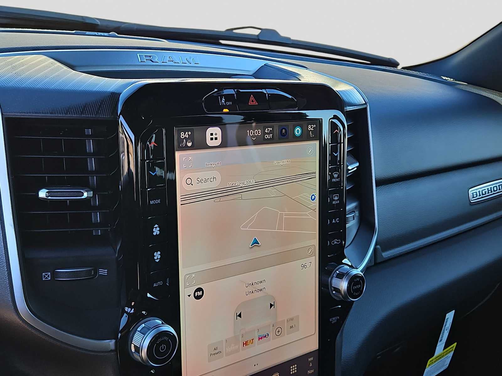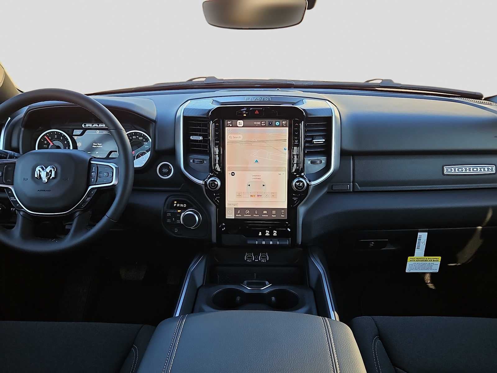 ENGINE: 5.7L V8 HEMI MDS VVT ETORQUE Active Noise Control System, Heavy Duty Engine Cooling, Passive Tuned Mass Damper, GVWR: 7,100 lbs, Dual Rear Exhaust w/Bright Tips, G/T Exhaust, 18 Aluminum Spare Wheel, BIG HORN LEVEL 2 EQUIPMENT GROUP SiriusXM Radio Service, Power Adjustable Pedals, Leather Wrapped Steering Wheel, 12 Touchscreen Display, Glove Box Lamp, Auto Power-Folding Mirrors, 115V Auxiliary Rear Power Outlet, Media Hub w/2 Charge Only USBs, Heated Front Seats, Security Alarm, Black Premium Power Mirrors, Premium Overhead Console, 9 Amplified Speakers w/Subwoofer, Disassociated Touchscreen Display, Body Color Fender Flares, Remote Tailgate Release, 115V Auxiliary Power Outlet, LED Dome Lamp w/On/Off Switch, Universal Garage Door Opener, 2nd Row In Floor Storage Bins, Sun Visors w/Illuminated Vanity Mirrors, LED Footwell Lighting, Rear Window Defroster, Rear View Auto Dim Mirror, Rear Power Sliding Window, GPS Navigation, Overhead LED Lamps, Wheels: 20 x 9 Aluminum Chrome Clad, NIGHT EDITION Tires: 275/55R20 OWL All Season, Bridgestone Brand Tires, Accent Color Premium Power Mirrors, Exterior Mirrors w/Supplemental Signals, Black Headlamp Bezels, Exterior Mirrors Courtesy Lamps, Grille Black Surround Black Mesh, Auto Power-Folding Mirrors, Wheels: 20 x 9.0 Aluminum Painted Clad, Auto Dim Exterior Driver Mirror, Black Exterior Truck Badging, Anti-Spin Differential Rear Axle, Accent Color Door Handles, Accent Color Tailgate Handle, Black Interior Accents, Dual Exhaust w/Black Tips, Body Color Front Bumper, Body Color Rear Bumper w/Step Pads, Black Tail Lamp Bezels, RAM Grille Badge - Black, Black Painted Exterior Mirrors Caps, BED UTILITY GROUP MOPAR Spray In Bedliner, MOPAR 4 Adjustable Cargo Tie-Down Hooks, Pick-Up Box Lighting, Exterior 115V AC Outlet, TRANSMISSION: 8-SPEED AUTOMATIC (8HP75). Ram Big Horn with Granite Crystal Metallic Clearcoat exterior and Black interior features a 8 Cylinder Engine with 395 HP at 5600 RPM*.