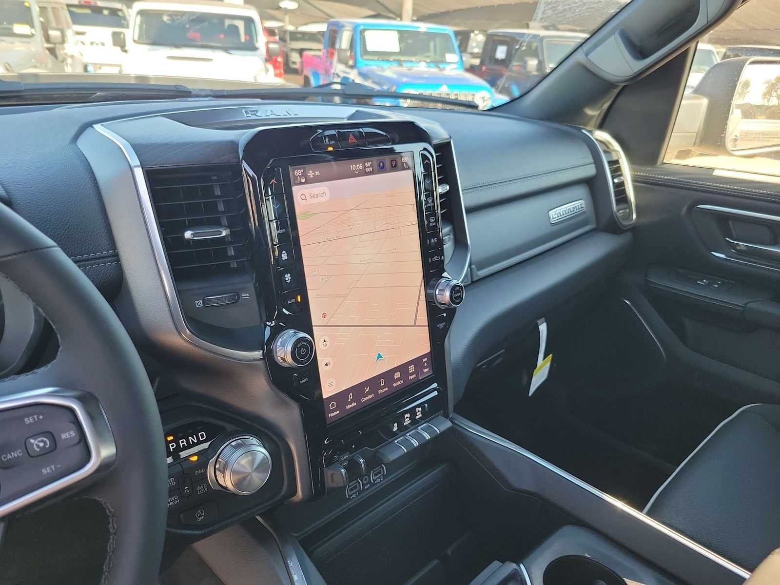 NIGHT EDITION Black Headlamp Bezels, Wheels: 22 x 9 Forged Aluminum, Tires: 285/45R22XL BSW All Season, Pirelli Brand Tires, Proximity Approach/Departure Lamps, Anti-Spin Differential Rear Axle, Accent Color Door Handles, Black Interior Accents, Body Color Front Bumper, Grille Surround 3 Black Texture 2 Black, Body Color Rear Bumper w/Step Pads, RAM Grille Badge - Black, Black Painted Exterior Mirrors Caps, Exterior Mirrors Approach Lamps, Accent Color Premium Power Mirrors, Sport Performance Hood, Black Exterior Truck Badging, Accent Color Tailgate Handle, Dual Exhaust w/Black Tips, Black Tail Lamp Bezels, MOPAR BLACK TUBULAR SIDE STEPS, MOPAR FRONT & REAR RUBBER FLOOR MATS, TRANSMISSION: 8-SPEED AUTOMATIC (8HP75) (STD), ENGINE: 3.0L I6 HURRICANE SO TWIN TURBO ESS (STD). Ram Laramie with Granite Crystal Metallic Clearcoat exterior and Black interior features a Straight 6 Cylinder Engine with 420 HP at 5200 RPM*.