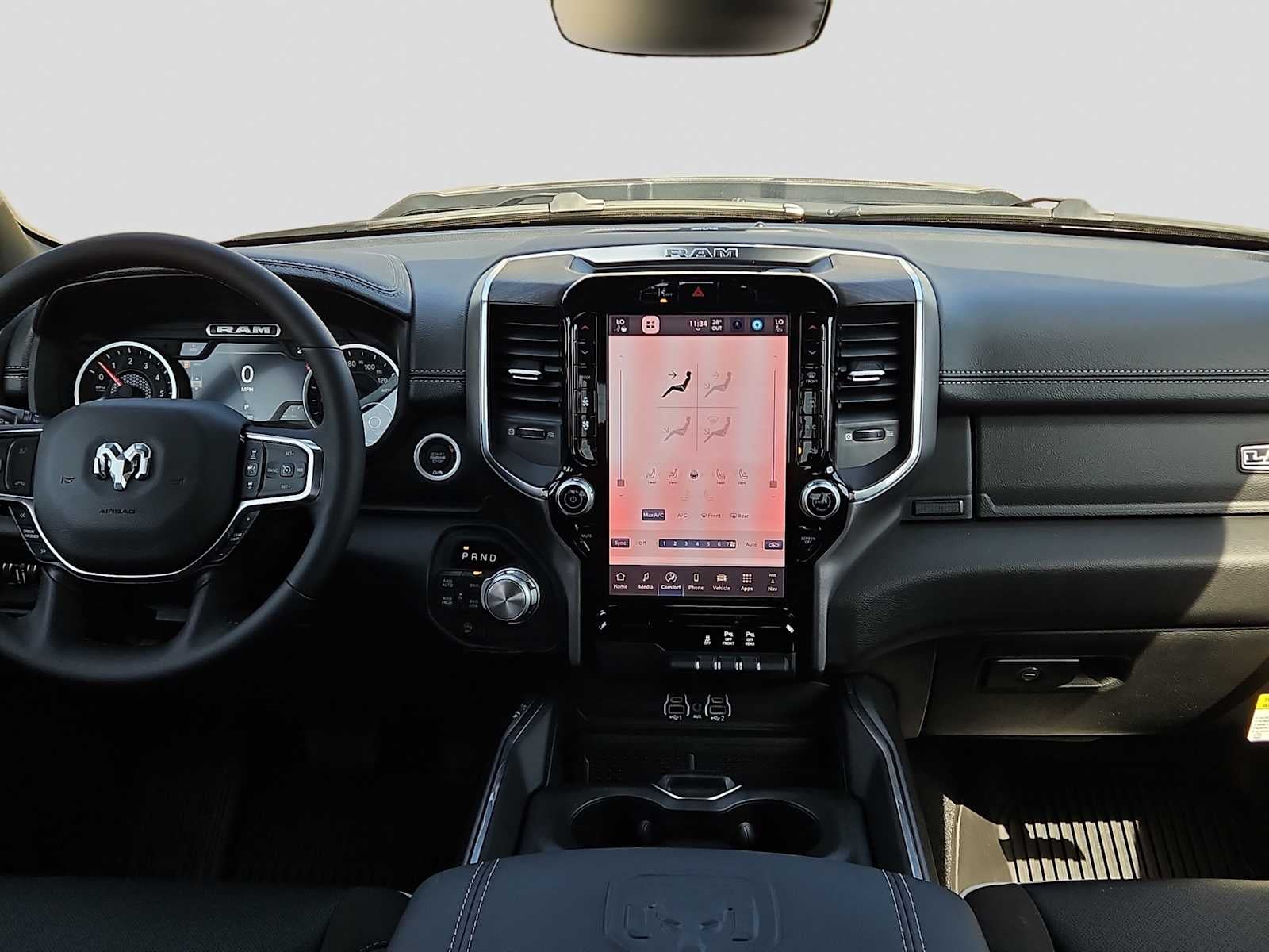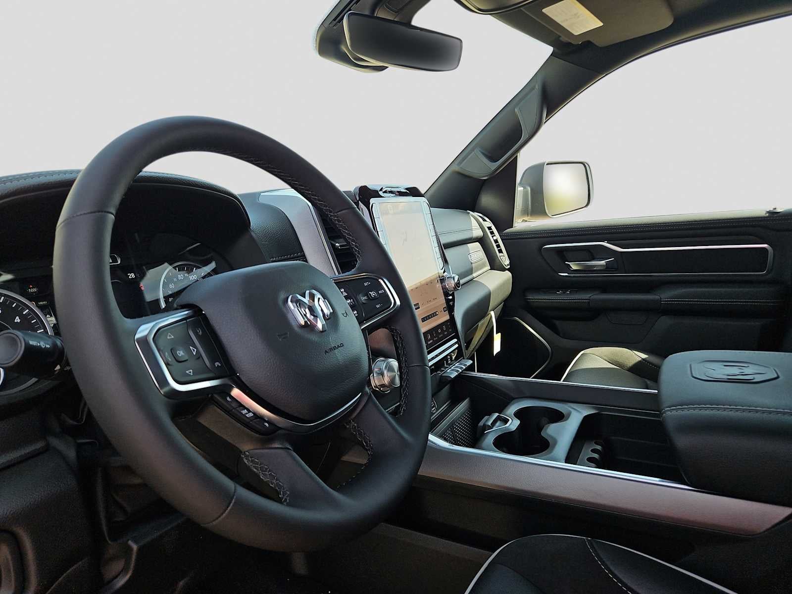 NIGHT EDITION Black Headlamp Bezels, Wheels: 22 x 9 Forged Aluminum, Tires: 285/45R22XL BSW All Season, Pirelli Brand Tires, Proximity Approach/Departure Lamps, Anti-Spin Differential Rear Axle, Accent Color Door Handles, Black Interior Accents, Body Color Front Bumper, Grille Surround 3 Black Texture 2 Black, Body Color Rear Bumper w/Step Pads, RAM Grille Badge - Black, Black Painted Exterior Mirrors Caps, Exterior Mirrors Approach Lamps, Accent Color Premium Power Mirrors, Sport Performance Hood, Black Exterior Truck Badging, Accent Color Tailgate Handle, Dual Exhaust w/Black Tips, Black Tail Lamp Bezels, ENGINE: 5.7L V8 HEMI MDS VVT ETORQUE 48V Belt Starter Generator, Heavy Duty Engine Cooling, Passive Tuned Mass Damper, Delete Alternator, Passive Cold End Exhaust, 18 Aluminum Spare Wheel, BED UTILITY GROUP MOPAR Spray In Bedliner, MOPAR 4 Adjustable Cargo Tie-Down Hooks, Exterior 115V AC Outlet, MOPAR BLACK TUBULAR SIDE STEPS, LARAMIE LEVEL 1 EQUIPMENT GROUP Remote Tailgate Release, Rain Sensitive Windshield Wipers, MOPAR FRONT & REAR RUBBER FLOOR MATS, TRANSMISSION: 8-SPEED AUTOMATIC (8HP75) (STD). Ram Laramie with Diamond Black Crystal Pearlcoat exterior and Black interior features a 8 Cylinder Engine with 395 HP at 5600 RPM*.