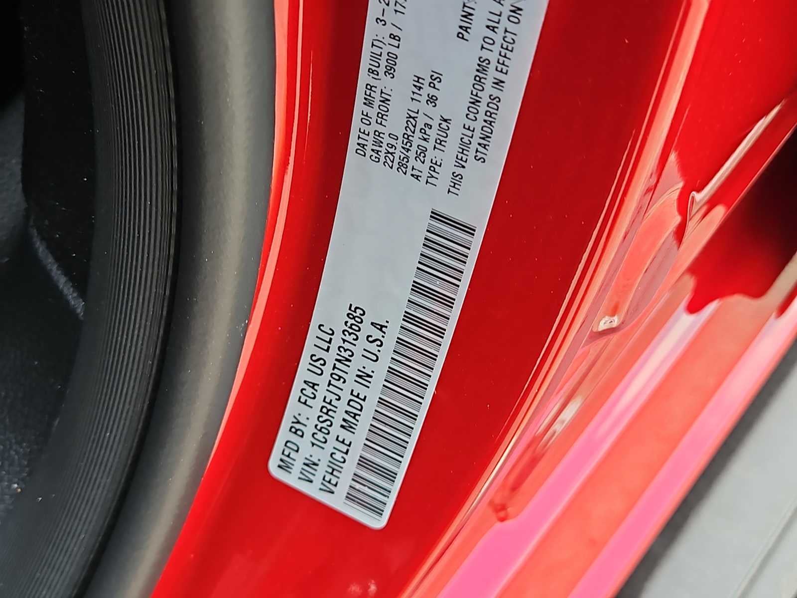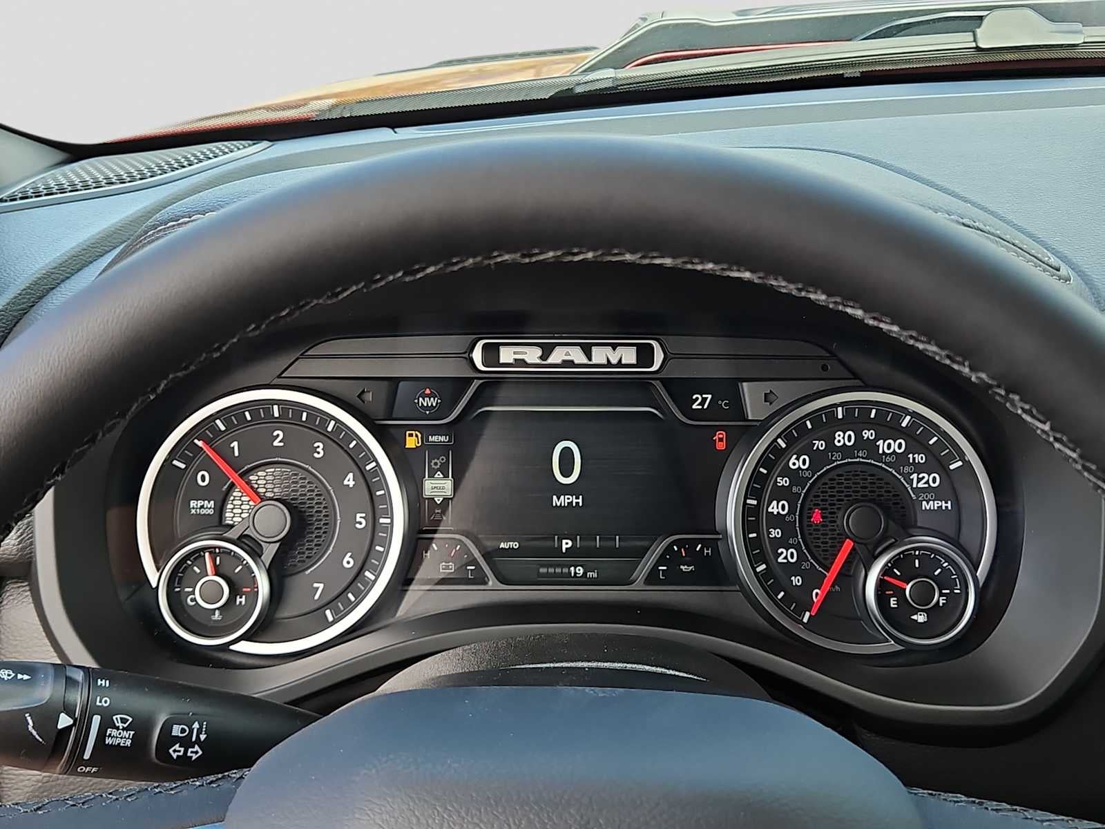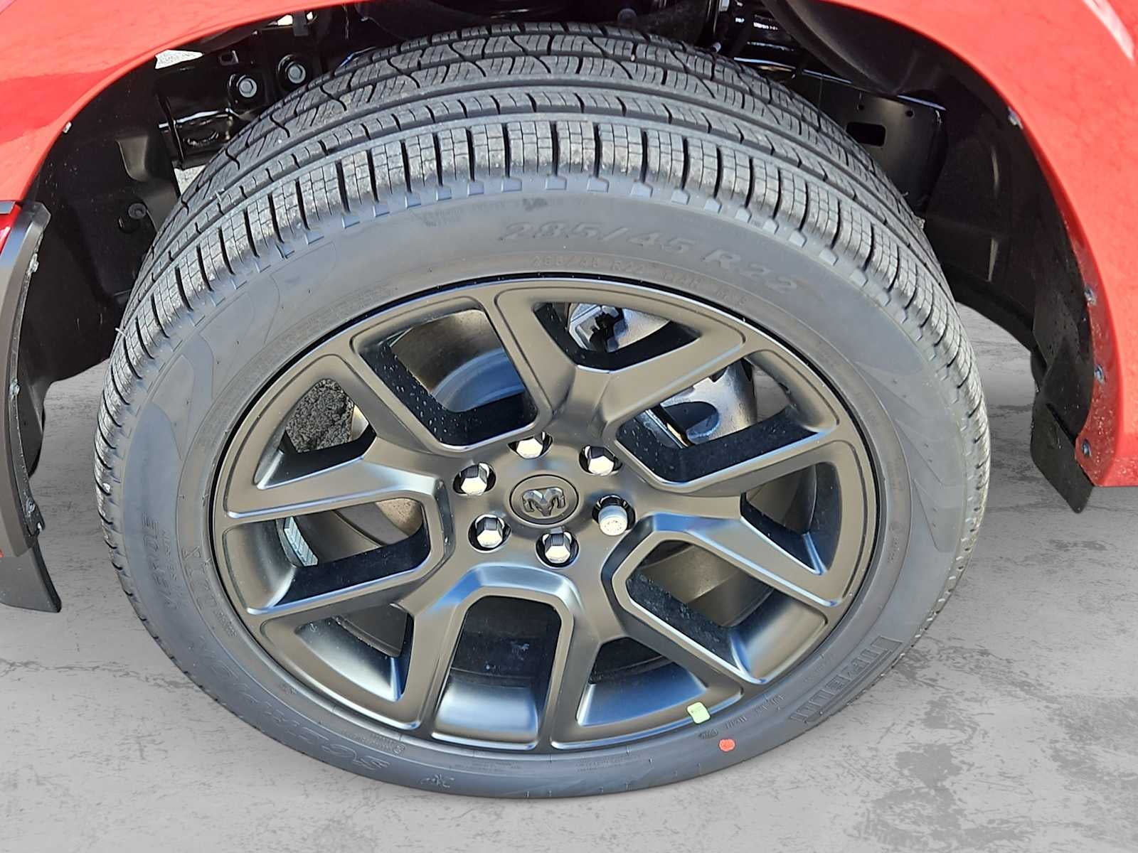 NIGHT EDITION Black Headlamp Bezels, Wheels: 22 x 9 Forged Aluminum, Tires: 285/45R22XL BSW All Season, Pirelli Brand Tires, Proximity Approach/Departure Lamps, Anti-Spin Differential Rear Axle, Accent Color Door Handles, Black Interior Accents, Body Color Front Bumper, Grille Surround 3 Black Texture 2 Black, Body Color Rear Bumper w/Step Pads, RAM Grille Badge - Black, Black Painted Exterior Mirrors Caps, Exterior Mirrors Approach Lamps, Accent Color Premium Power Mirrors, Sport Performance Hood, Black Exterior Truck Badging, Accent Color Tailgate Handle, Dual Exhaust w/Black Tips, Black Tail Lamp Bezels, ENGINE: 5.7L V8 HEMI MDS VVT ETORQUE 48V Belt Starter Generator, Heavy Duty Engine Cooling, Passive Tuned Mass Damper, Delete Alternator, Passive Cold End Exhaust, 18 Aluminum Spare Wheel, BED UTILITY GROUP MOPAR Spray In Bedliner, MOPAR 4 Adjustable Cargo Tie-Down Hooks, Exterior 115V AC Outlet, MOPAR BLACK TUBULAR SIDE STEPS, LARAMIE LEVEL 1 EQUIPMENT GROUP Remote Tailgate Release, Rain Sensitive Windshield Wipers, MOPAR FRONT & REAR RUBBER FLOOR MATS, TRANSMISSION: 8-SPEED AUTOMATIC (8HP75) (STD). Ram Laramie with Molten Red Pearlcoat exterior and Black interior features a 8 Cylinder Engine with 395 HP at 5600 RPM*.