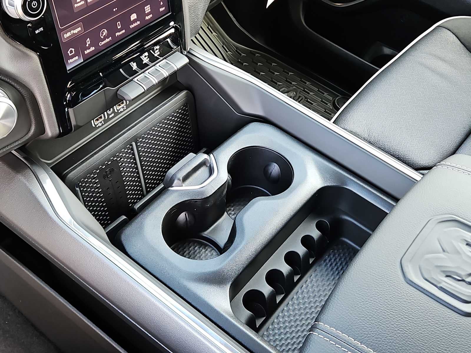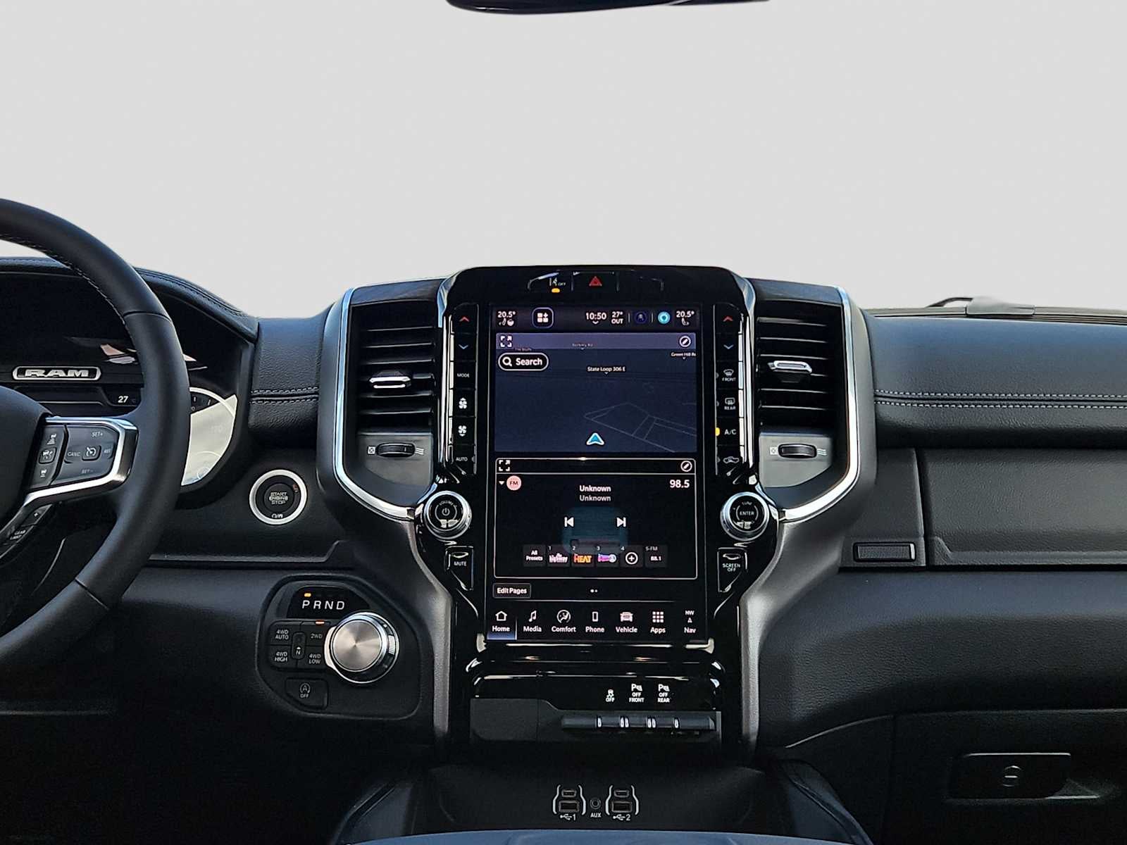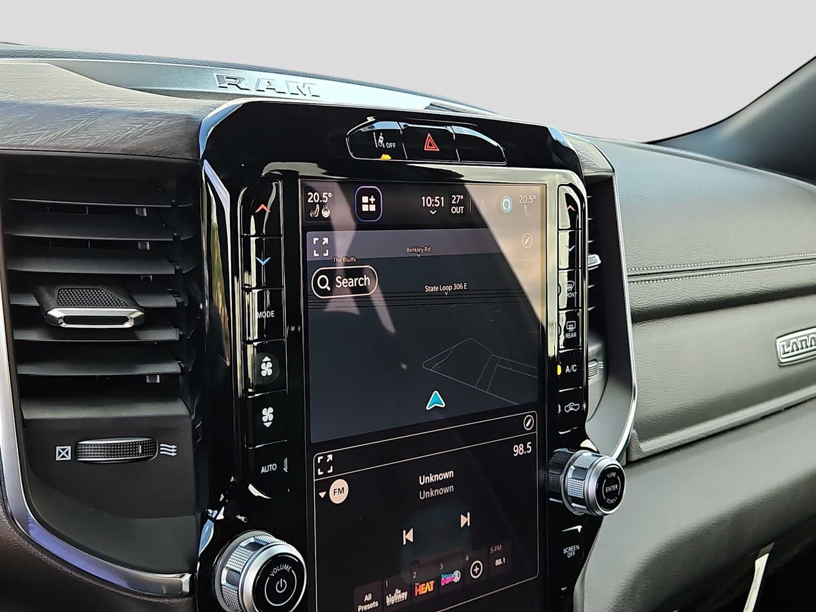 NIGHT EDITION Black Headlamp Bezels, Wheels: 22 x 9 Forged Aluminum, Tires: 285/45R22XL BSW All Season, Pirelli Brand Tires, Proximity Approach/Departure Lamps, Anti-Spin Differential Rear Axle, Accent Color Door Handles, Black Interior Accents, Body Color Front Bumper, Grille Surround 3 Black Texture 2 Black, Body Color Rear Bumper w/Step Pads, RAM Grille Badge - Black, Black Painted Exterior Mirrors Caps, Exterior Mirrors Approach Lamps, Accent Color Premium Power Mirrors, Sport Performance Hood, Black Exterior Truck Badging, Accent Color Tailgate Handle, Dual Exhaust w/Black Tips, Black Tail Lamp Bezels, ENGINE: 5.7L V8 HEMI MDS VVT ETORQUE 48V Belt Starter Generator, Heavy Duty Engine Cooling, Passive Tuned Mass Damper, Delete Alternator, Passive Cold End Exhaust, 18 Aluminum Spare Wheel, BED UTILITY GROUP MOPAR Spray In Bedliner, MOPAR 4 Adjustable Cargo Tie-Down Hooks, Exterior 115V AC Outlet, MOPAR BLACK TUBULAR SIDE STEPS, LARAMIE LEVEL 1 EQUIPMENT GROUP Remote Tailgate Release, Rain Sensitive Windshield Wipers, MOPAR FRONT & REAR RUBBER FLOOR MATS, TRANSMISSION: 8-SPEED AUTOMATIC (8HP75) (STD). Ram Laramie with Molten Red Pearlcoat exterior and Black interior features a 8 Cylinder Engine with 395 HP at 5600 RPM*.