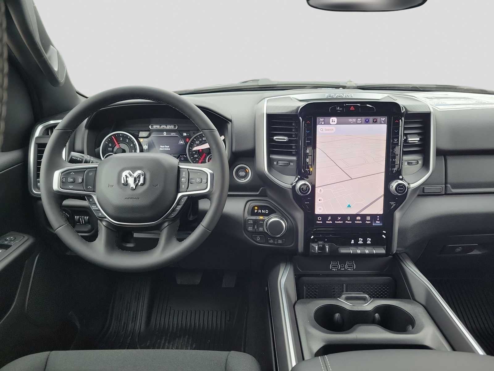 ENGINE: 5.7L V8 HEMI MDS VVT ETORQUE Active Noise Control System, Heavy Duty Engine Cooling, Passive Tuned Mass Damper, GVWR: 7,100 lbs, Dual Rear Exhaust w/Bright Tips, G/T Exhaust, 18 Aluminum Spare Wheel, BIG HORN LEVEL 2 EQUIPMENT GROUP SiriusXM Radio Service, Power Adjustable Pedals, Leather Wrapped Steering Wheel, 12 Touchscreen Display, Glove Box Lamp, Auto Power-Folding Mirrors, 115V Auxiliary Rear Power Outlet, Media Hub w/2 Charge Only USBs, Heated Front Seats, Security Alarm, Black Premium Power Mirrors, Premium Overhead Console, 9 Amplified Speakers w/Subwoofer, Disassociated Touchscreen Display, Body Color Fender Flares, Remote Tailgate Release, 115V Auxiliary Power Outlet, LED Dome Lamp w/On/Off Switch, Universal Garage Door Opener, 2nd Row In Floor Storage Bins, Sun Visors w/Illuminated Vanity Mirrors, LED Footwell Lighting, Rear Window Defroster, Rear View Auto Dim Mirror, Rear Power Sliding Window, GPS Navigation, Overhead LED Lamps, Wheels: 20 x 9 Aluminum Chrome Clad, NIGHT EDITION Tires: 275/55R20 OWL All Season, Bridgestone Brand Tires, Accent Color Premium Power Mirrors, Exterior Mirrors w/Supplemental Signals, Black Headlamp Bezels, Exterior Mirrors Courtesy Lamps, Grille Black Surround Black Mesh, Auto Power-Folding Mirrors, Wheels: 20 x 9.0 Aluminum Painted Clad, Auto Dim Exterior Driver Mirror, Black Exterior Truck Badging, Anti-Spin Differential Rear Axle, Accent Color Door Handles, Accent Color Tailgate Handle, Black Interior Accents, Dual Exhaust w/Black Tips, Body Color Front Bumper, Body Color Rear Bumper w/Step Pads, Black Tail Lamp Bezels, RAM Grille Badge - Black, Black Painted Exterior Mirrors Caps, OFF ROAD GROUP Front Extra HD Shock Absorbers, Off Road Decals, Rear Extra HD Shock Absorbers, Steering Gear Skid Plate, Tow Hooks, E-Locker Rear Axle, Transfer Case Skid Plate, Fuel Tank Skid Plate, Raised Ride Height, Selec-Speed Control, MOPAR BLACK TUBULAR SIDE STEPS, MOPAR FRONT & REAR RUBBER FLOOR MATS, TRANSMISSION: 8-SPEED AUTOMATIC (8HP75). Ram Lone Star with Diamond Black Crystal Pearlcoat exterior and Black interior features a 8 Cylinder Engine with 395 HP at 5600 RPM*.