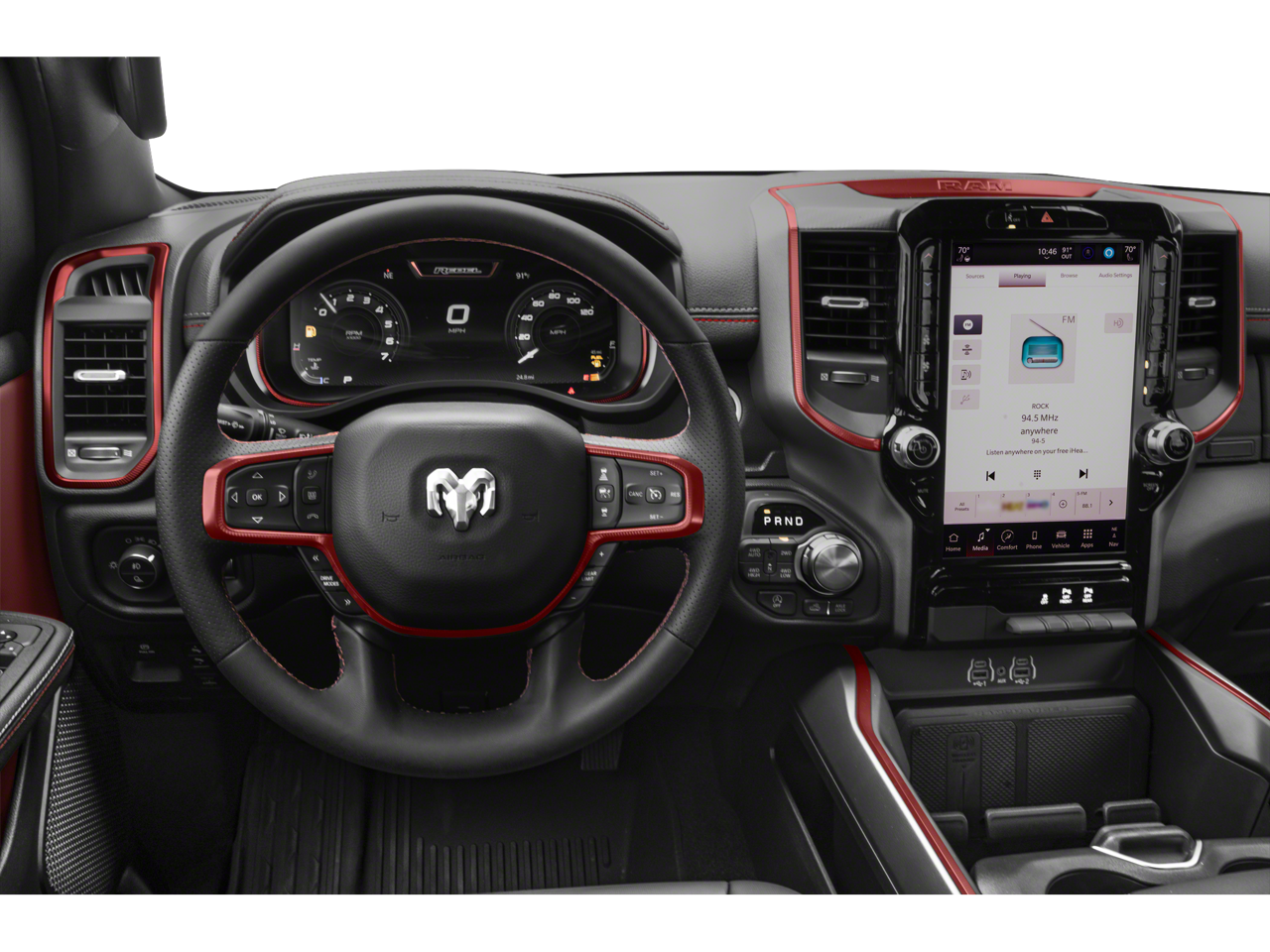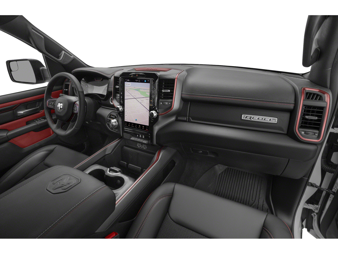 REBEL LEVEL 2 EQUIPMENT GROUP Power Adjustable Pedals w/Memory, Front Passenger Interactive Display, Power 2-Way Passenger Lumbar Adjust, Auto Power-Folding Mirrors, 115V Auxiliary Rear Power Outlet, Media Hub w/2 Charge Only USBs, Proximity Approach/Departure Lamps, Power Adjust 8-Way Front Passenger Seat, Security Alarm, Dual Wireless Charging Pad, harman/kardon® 19 Speaker Premium Sound, Rear Window Defroster, Rain Sensitive Windshield Wipers, Auto Dim Exterior Driver Mirror, Accent Color Door Handles, Heated Second Row Seats, Black Painted Exterior Mirrors Caps, Exterior Mirrors Approach Lamps, Smartphone As A Key Capable, 14.4 Touchscreen Display, Accent Color Premium Power Mirrors, Exterior Mirrors w/Supplemental Signals, Exterior Mirrors Courtesy Lamps, Radio: Uconnect 5 Nav w/14.4, BLACK, LUX LEATHER TRIMMED BUCKET SEATS Power 2-Way Passenger Lumbar Adjust, Ventilated Front Seats, Power Adjust 8-Way Front Passenger Seat, MOPAR BLACK TUBULAR SIDE STEPS, BED UTILITY GROUP MOPAR Spray In Bedliner, MOPAR 4 Adjustable Cargo Tie-Down Hooks, Exterior 115V AC Outlet, TRANSMISSION: 8-SPEED AUTOMATIC (8HP75) (STD), ENGINE: 3.0L I6 HURRICANE SO TWIN TURBO ESS (STD). Ram Rebel with Delmonico Red Pearlcoat exterior and Black interior features a Straight 6 Cylinder Engine with 420 HP at 5200 RPM*.