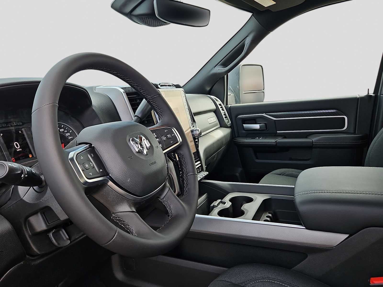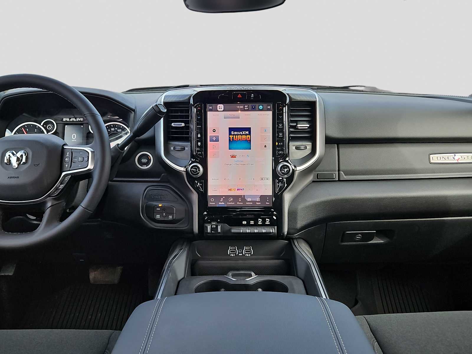 ENGINE: 6.7L I6 CUMMINS HO TURBO DIESEL Selective Catalytic Reduction (Urea), Dual 730 Amp Maintenance Free Batteries, Cummins Turbo Diesel Badge, Heavy Duty Engine Cooling, Diesel Exhaust Brake, Supplemental Heater, 3.42 Axle Ratio, Front Bumper Sight Shields, Capless Fuel Fill w/o Discriminator, GVWR: 11,040 lbs, BIG HORN LEVEL 1 PLUS EQUIPMENT GROUP Emergency Vehicle Alert System (EVAS), Lone Star IP Badge, 12 Touchscreen Display, Glove Box Lamp, Auto Power-Folding Mirrors, Footwell Courtesy Lamp, Anti-Spin Differential Rear Axle, MOPAR Deployable Bed Step, Alexa Built-In, Forward & Reverse Utility Lights, Locking Lower Glove Box, Remote Start System, 9 Alpine Speakers w/Subwoofer, Disassociated Touchscreen Display, Dual Glove Boxes, 2nd Row In Floor Storage Bins, Rear View Auto Dim Mirror, Rear Dome w/On/Off Switch Lamp, LED Bed Lighting, GPS Navigation, SiriusXM w/360L, Connected Travel & Traffic Services, Foam Bottle Insert (Door Trim Panel), Off-Road Info Pages, Trailer Tow Pages, HD Radio, Radio: Uconnect 5 Nav w/12.0 Display, Power Heated Folding Telescopic Mirrors, Steering Wheel Mounted, NIGHT EDITION Gloss Black Nostrils/Mic Black Grille, Tires: LT285/60R20E OWL On/Off Road, Black Exterior Truck Badging, Wheels: 20 x 8.0 Black Painted Aluminum, Body Color Grille-Surround, Black Interior Accents, Black Wheel Center Hub, Painted Front Bumper, Painted Rear Bumper, BLACK, PREMIUM CLOTH BUCKET SEATS Bucket Seats, Power Adjust 8-Way Driver Seat, Folding Flat Load Floor Storage, Rear 60/40 Folding Seat, Front Seat Back Map Pockets, Power 2-Way Driver Lumbar Adjust, Full Length Upgraded Floor Console, MOPAR FRONT & REAR RUBBER FLOOR MATS, TRANSMISSION: 8-SPEED TORQUEFLITE HD AUTOMATIC. Ram Lone Star with Diamond Black Crystal Pearlcoat exterior and Black interior features a Straight 6 Cylinder Engine with 430 HP at 2800 RPM*.