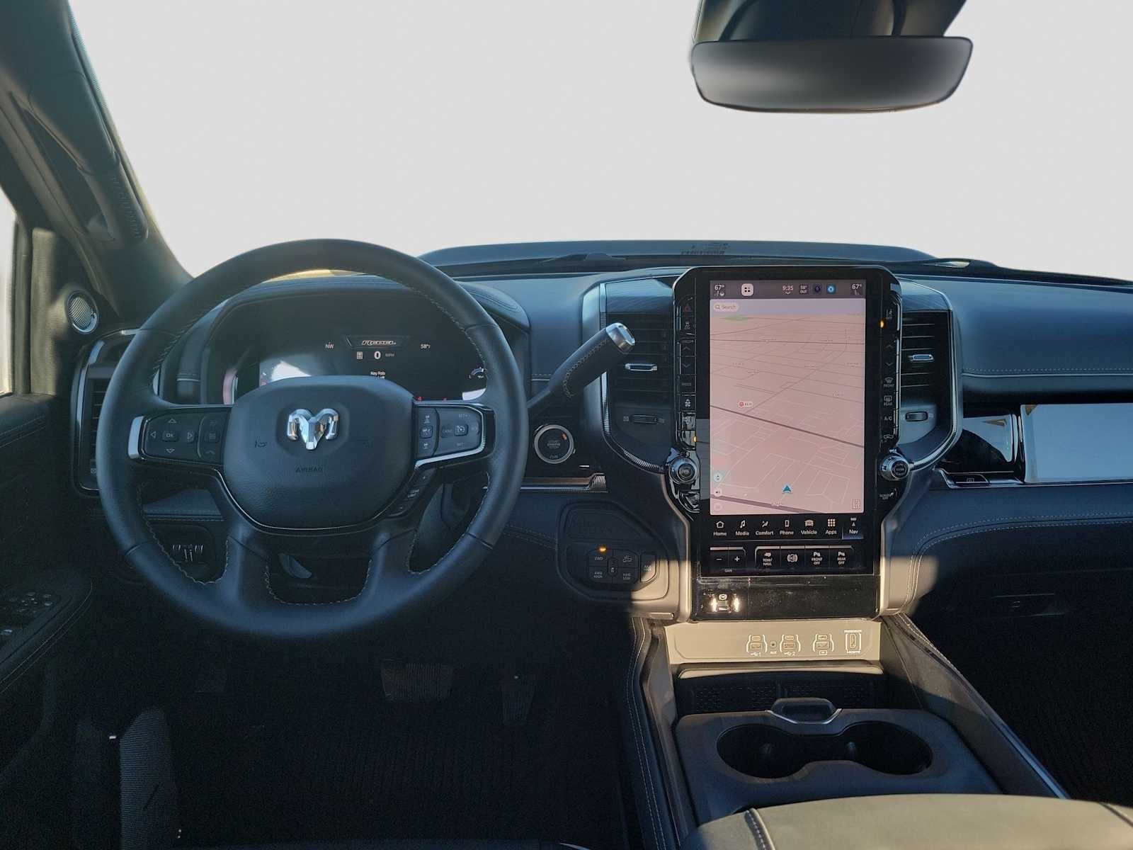 ENGINE: 6.7L I6 CUMMINS HO TURBO DIESEL Selective Catalytic Reduction (Urea), Dual 730 Amp Maintenance Free Batteries, Cummins Turbo Diesel Badge, Heavy Duty Engine Cooling, Diesel Exhaust Brake, Supplemental Heater, 3.42 Axle Ratio, Front Bumper Sight Shields, Fuel Tank Brush Guard, Capless Fuel Fill w/o Discriminator, GVWR: 11,040 lbs, REBEL LEVEL 2 EQUIPMENT GROUP Power Adjustable Pedals w/Memory, Front Passenger Interactive Display, Power Deployable Running Boards, MOPAR Deployable Bed Step, Premium Overhead Console, Leather Wrapped Shift Control, 17 Speaker harman/kardon® Premium Sound, LED Interior Lighting, LED Dome Lamp w/On/Off Switch, Universal Garage Door Opener, Sun Visors w/Illuminated Vanity Mirrors, CTR Stop Lamp w/Cargo View Camera, Rain Sensitive Windshield Wipers, LED Bed Lighting, Body Color Door Handles, Overhead LED Lamps, Auto Dim Exterior Mirror, Leather Wrapped Grab Handle, 14.4 Touchscreen Display, Power Heated Fold Telescopic Mirrors w/Memory, Sport Performance Hood, Radio: Uconnect 5 Nav w/14.4 Display, MOPAR Spray In Bedliner, Front Door Locks 2-Door Passive Entry, Auto High Beam Headlamp, SAFETY GROUP Active Lane Management System, Auto High Beam Headlamp Control, Rain Sensitive Windshield Wipers, Drowsy Driver Detection, Traffic Sign Recognition, Adaptive Steering System, TOWING TECHNOLOGY GROUP Surround View Camera System, Trailer Tire Pressure Monitoring System, Trailer Reverse Guidance, TRANSMISSION: 8-SPEED TORQUEFLITE HD AUTOMATIC. Ram Rebel with Granite Crystal Metallic Clearcoat exterior and Black interior features a Straight 6 Cylinder Engine with 430 HP at 2800 RPM*.