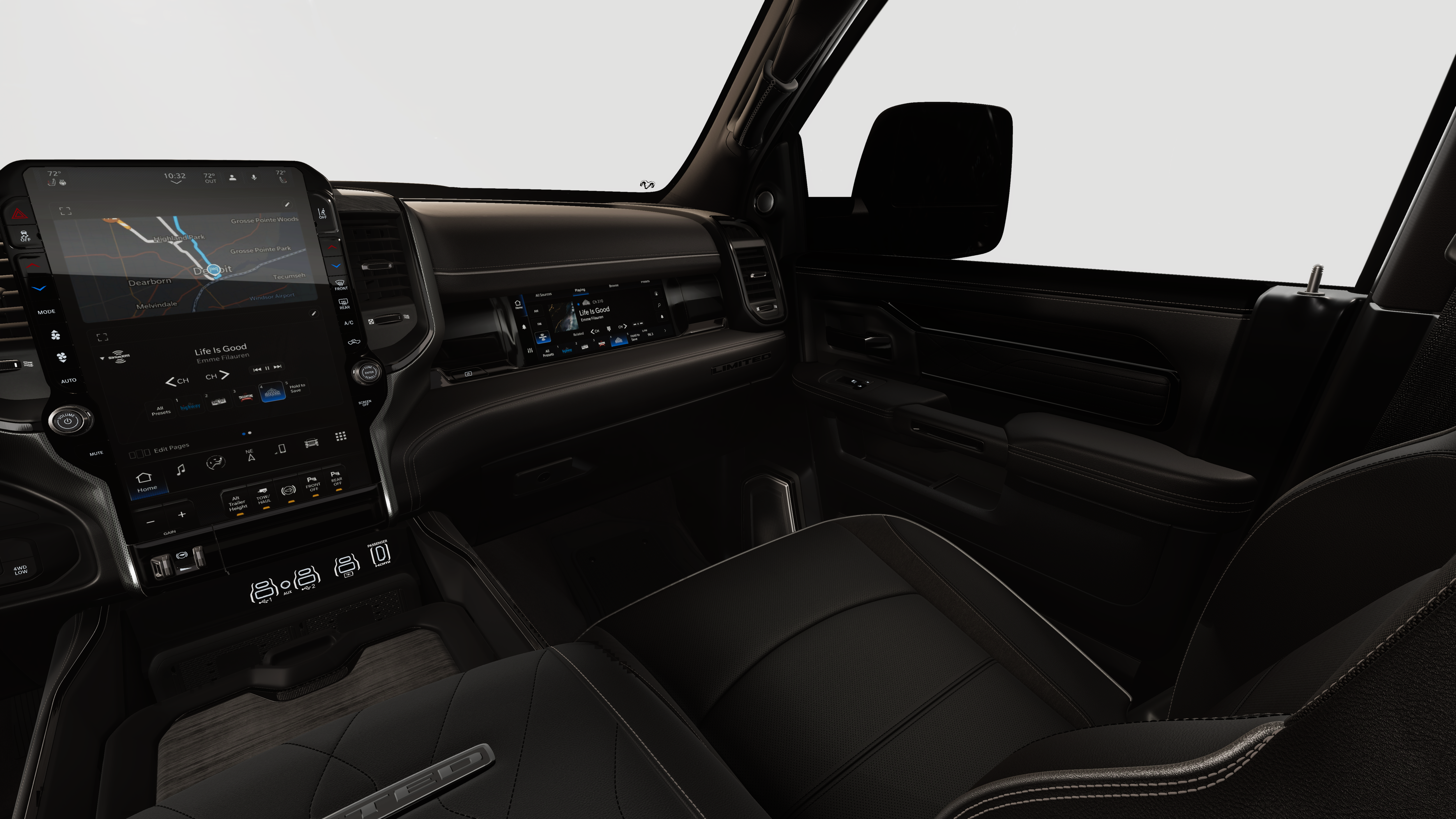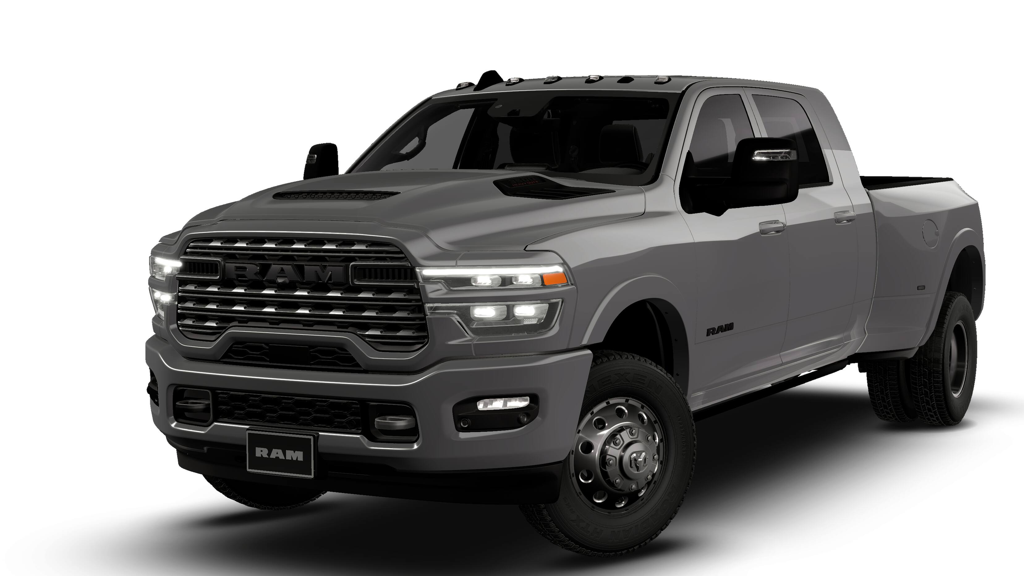 LIMITED LEVEL 1 EQUIPMENT GROUP Active Lane Management System, Center Stop Lamp w/Cargo View Camera, MOPAR Trailer Camera Wiring w/No Camera, Surround View Camera System, Power Deployable Running Boards, Traffic Sign Recognition, Trailer Tire Pressure Monitoring System, Adaptive Steering System, MOPAR Spray In Bedliner, Drowsy Driver Detection, Trailer Reverse Guidance, Digital Rearview Mirror, DUAL REAR WHEELS Clearance Lamps, 17 Steel Spare Wheel, Box & Rear Fender Clearance Lamps, 6,000 lbs Front Axle w/Hub Ext, Pickup Box, Wheels: 17 x 6.0 Polished Aluminum, Nexen Brand Tires, GVWR: 14,000 lbs, Tires: LT235/80R17E BSW All Season, Center Hub, Dual Rear Wheel Fender Flare Tracking, POWER SUNROOF, TRANSMISSION: 8-SPEED TORQUEFLITE HD AUTOMATIC (STD), ENGINE: 6.7L I6 CUMMINS HO TURBO DIESEL (STD). Ram Limited with Ceramic Gray Clearcoat exterior and Black interior features a Straight 6 Cylinder Engine with 430 HP at 2800 RPM*.