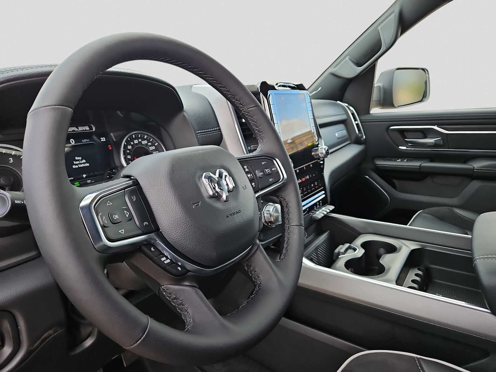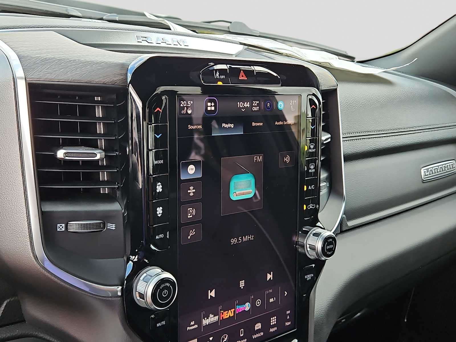 NIGHT EDITION Black Headlamp Bezels, Wheels: 22 x 9 Forged Aluminum, Tires: 285/45R22XL BSW All Season, Pirelli Brand Tires, Proximity Approach/Departure Lamps, Anti-Spin Differential Rear Axle, Accent Color Door Handles, Black Interior Accents, Body Color Front Bumper, Grille Surround 3 Black Texture 2 Black, Body Color Rear Bumper w/Step Pads, RAM Grille Badge - Black, Black Painted Exterior Mirrors Caps, Exterior Mirrors Approach Lamps, Accent Color Premium Power Mirrors, Sport Performance Hood, Black Exterior Truck Badging, Accent Color Tailgate Handle, Dual Exhaust w/Black Tips, Black Tail Lamp Bezels, ENGINE: 5.7L V8 HEMI MDS VVT ETORQUE 48V Belt Starter Generator, Heavy Duty Engine Cooling, Passive Tuned Mass Damper, Delete Alternator, Passive Cold End Exhaust, 18 Aluminum Spare Wheel, LARAMIE LEVEL 1 EQUIPMENT GROUP Remote Tailgate Release, Rain Sensitive Windshield Wipers, MOPAR FRONT & REAR RUBBER FLOOR MATS, TRANSMISSION: 8-SPEED AUTOMATIC (8HP75) (STD). Ram Laramie with Diamond Black Crystal Pearlcoat exterior and Black interior features a 8 Cylinder Engine with 395 HP at 5600 RPM*.
