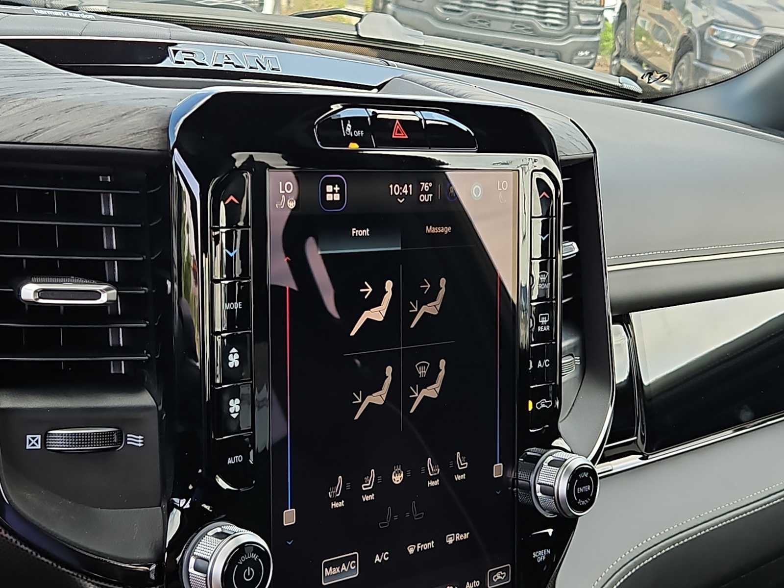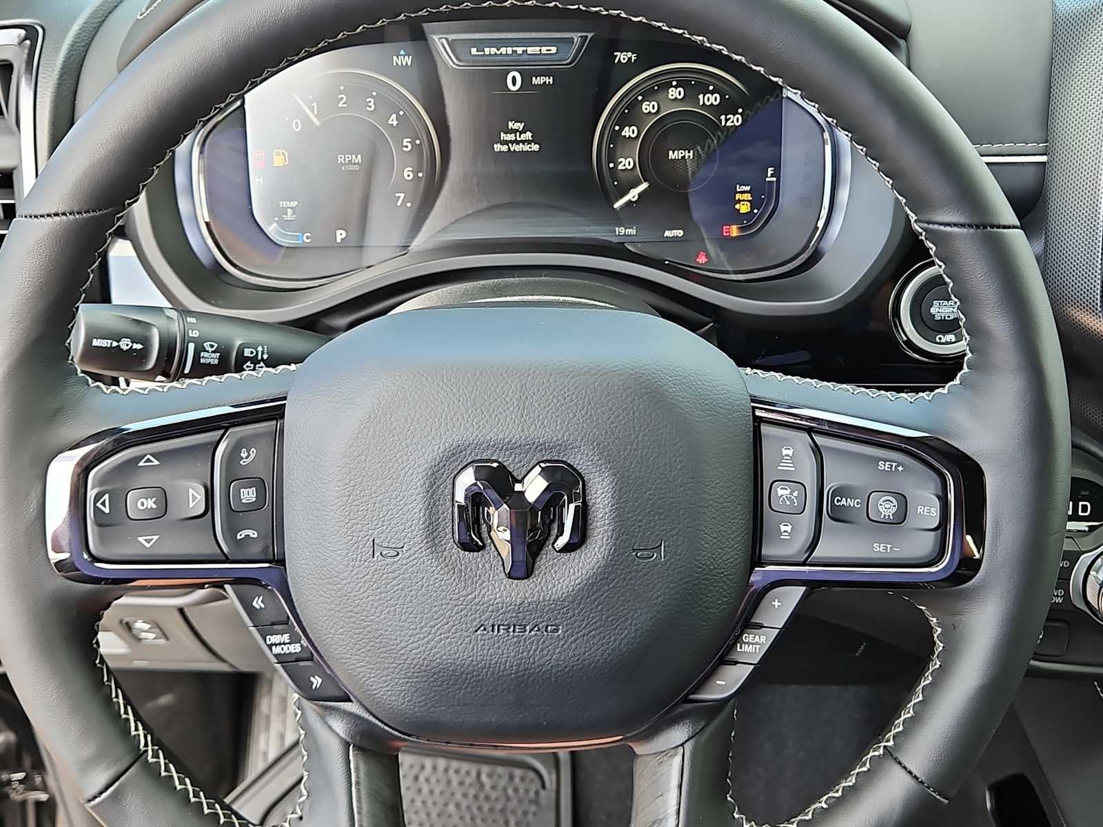 NIGHT EDITION Tires: 285/45R22XL BSW All Season, Black Headlamp Bezels, Wheels: 22 x 9 Premium Black Aluminum, Pirelli Brand Tires, Accent Color Door Handles, Body Color Front Bumper, Body Color Rear Bumper w/Step Pads, RAM Grille Badge - Black, Black Painted Exterior Mirrors Caps, Accent Color Premium Power Mirrors, Sport Performance Hood, Black Exterior Truck Badging, Black Day Light Opening Moldings, Accent Color Tailgate Handle, Dual Exhaust w/Black Tips, Black Grille Surround Texture 7 Black, Black Tail Lamp Bezels, TRANSMISSION: 8-SPEED AUTOMATIC (8HP75) (STD), ENGINE: 3.0L I6 HURRICANE HO TWIN TURBO ESS (STD). Ram Limited with Diamond Black Crystal Pearlcoat exterior and Black interior features a Straight 6 Cylinder Engine.
