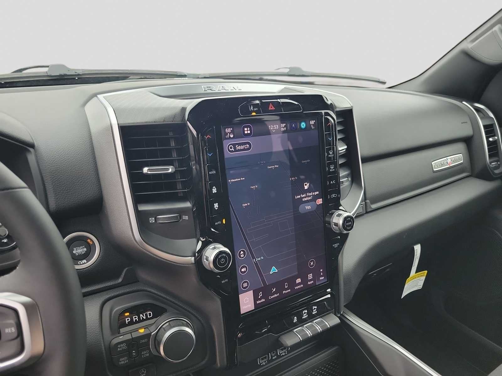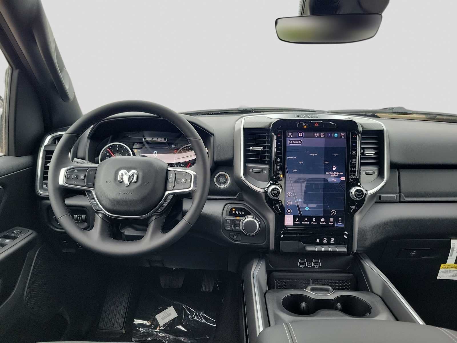 BIG HORN LEVEL 2 EQUIPMENT GROUP SiriusXM Radio Service, Power Adjustable Pedals, Leather Wrapped Steering Wheel, 12 Touchscreen Display, Glove Box Lamp, Auto Power-Folding Mirrors, 115V Auxiliary Rear Power Outlet, Media Hub w/2 Charge Only USBs, Heated Front Seats, Security Alarm, Black Premium Power Mirrors, Premium Overhead Console, 9 Amplified Speakers w/Subwoofer, Disassociated Touchscreen Display, Body Color Fender Flares, Remote Tailgate Release, 115V Auxiliary Power Outlet, LED Dome Lamp w/On/Off Switch, Universal Garage Door Opener, 2nd Row In Floor Storage Bins, Sun Visors w/Illuminated Vanity Mirrors, LED Footwell Lighting, Rear Window Defroster, Rear View Auto Dim Mirror, Rear Power Sliding Window, GPS Navigation, Overhead LED Lamps, Wheels: 20 x 9 Aluminum Chrome Clad, NIGHT EDITION Tires: 275/55R20 OWL All Season, Bridgestone Brand Tires, Accent Color Premium Power Mirrors, Exterior Mirrors w/Supplemental Signals, Black Headlamp Bezels, Exterior Mirrors Courtesy Lamps, Grille Black Surround Black Mesh, Auto Power-Folding Mirrors, Wheels: 20 x 9.0 Aluminum Painted Clad, Auto Dim Exterior Driver Mirror, Black Exterior Truck Badging, Anti-Spin Differential Rear Axle, Accent Color Door Handles, Accent Color Tailgate Handle, Black Interior Accents, Dual Exhaust w/Black Tips, Body Color Front Bumper, Body Color Rear Bumper w/Step Pads, Black Tail Lamp Bezels, RAM Grille Badge - Black, Black Painted Exterior Mirrors Caps, MOPAR FRONT & REAR RUBBER FLOOR MATS, TRANSMISSION: 8-SPEED AUTOMATIC (850RE) (STD), ENGINE: 3.6L V6 24V VVT ETORQUE UPG I (STD). Ram Lone Star with Forged Blue Metallic exterior and Black interior features a V6 Cylinder Engine with 305 HP at 6400 RPM*.