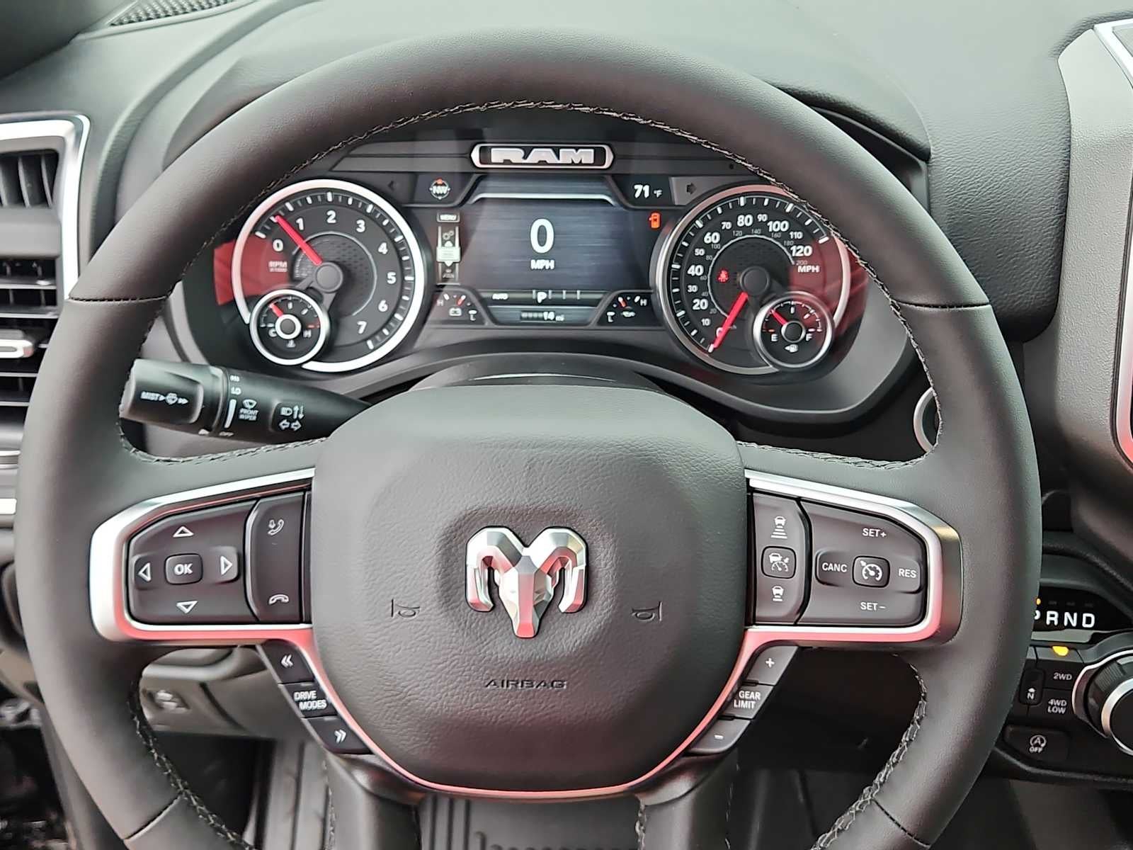 BIG HORN LEVEL 2 EQUIPMENT GROUP SiriusXM Radio Service, Power Adjustable Pedals, Leather Wrapped Steering Wheel, 12 Touchscreen Display, Glove Box Lamp, Auto Power-Folding Mirrors, 115V Auxiliary Rear Power Outlet, Media Hub w/2 Charge Only USBs, Heated Front Seats, Security Alarm, Black Premium Power Mirrors, Premium Overhead Console, 9 Amplified Speakers w/Subwoofer, Disassociated Touchscreen Display, Body Color Fender Flares, Remote Tailgate Release, 115V Auxiliary Power Outlet, LED Dome Lamp w/On/Off Switch, Universal Garage Door Opener, 2nd Row In Floor Storage Bins, Sun Visors w/Illuminated Vanity Mirrors, LED Footwell Lighting, Rear Window Defroster, Rear View Auto Dim Mirror, Rear Power Sliding Window, GPS Navigation, Overhead LED Lamps, Wheels: 20 x 9 Aluminum Chrome Clad, NIGHT EDITION Tires: 275/55R20 OWL All Season, Bridgestone Brand Tires, Accent Color Premium Power Mirrors, Exterior Mirrors w/Supplemental Signals, Black Headlamp Bezels, Exterior Mirrors Courtesy Lamps, Grille Black Surround Black Mesh, Auto Power-Folding Mirrors, Wheels: 20 x 9.0 Aluminum Painted Clad, Auto Dim Exterior Driver Mirror, Black Exterior Truck Badging, Anti-Spin Differential Rear Axle, Accent Color Door Handles, Accent Color Tailgate Handle, Black Interior Accents, Dual Exhaust w/Black Tips, Body Color Front Bumper, Body Color Rear Bumper w/Step Pads, Black Tail Lamp Bezels, RAM Grille Badge - Black, Black Painted Exterior Mirrors Caps, MOPAR FRONT & REAR RUBBER FLOOR MATS, TRANSMISSION: 8-SPEED AUTOMATIC (850RE) (STD), ENGINE: 3.6L V6 24V VVT ETORQUE UPG I (STD). Ram Lone Star with Diamond Black Crystal Pearlcoat exterior and Black interior features a V6 Cylinder Engine with 305 HP at 6400 RPM*.