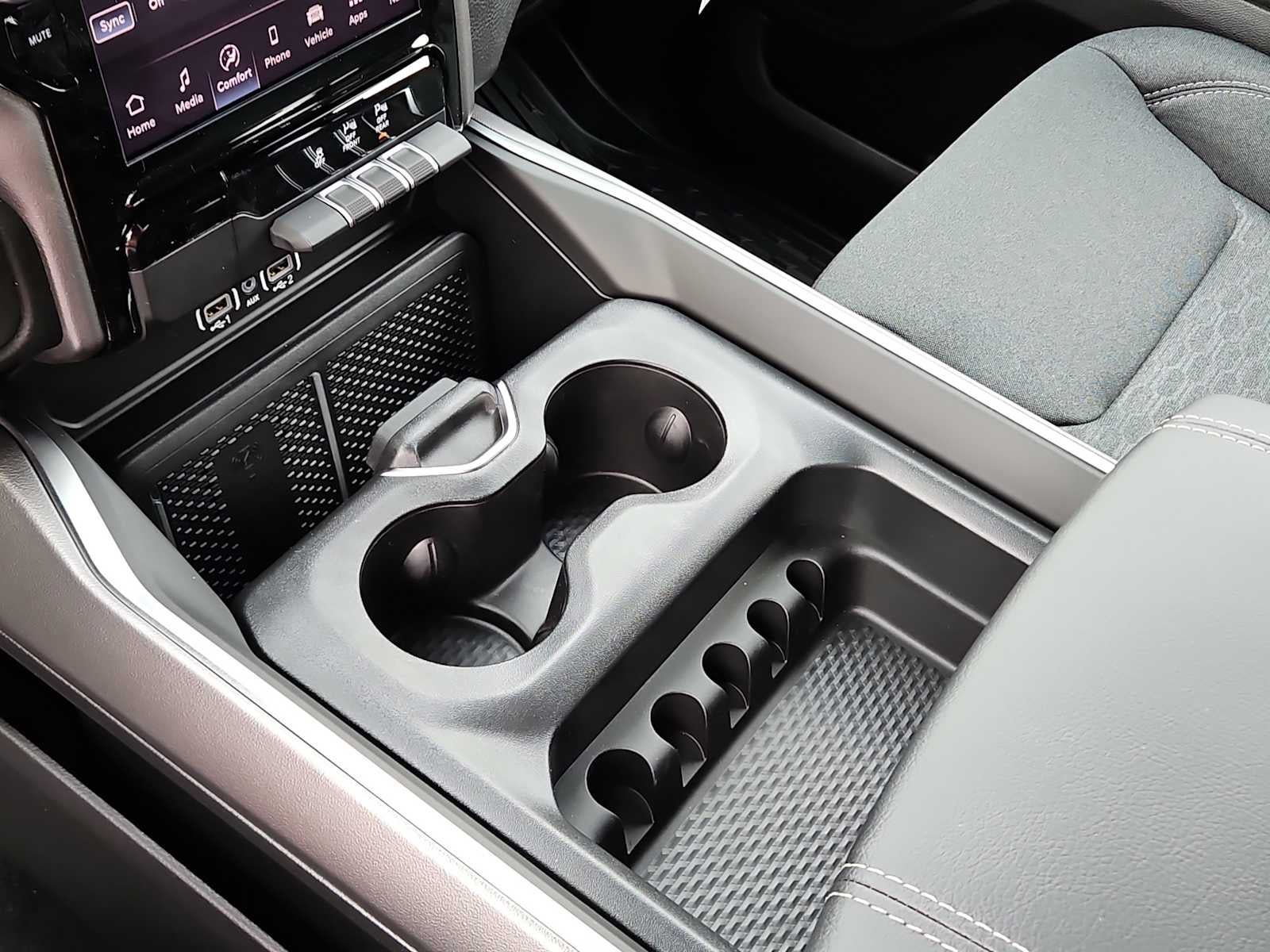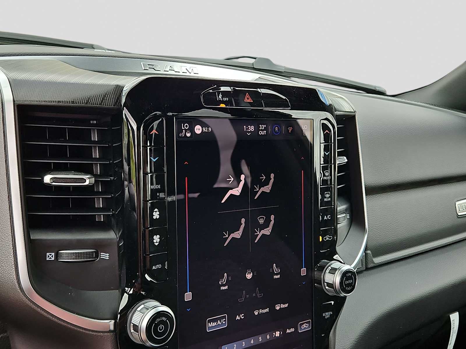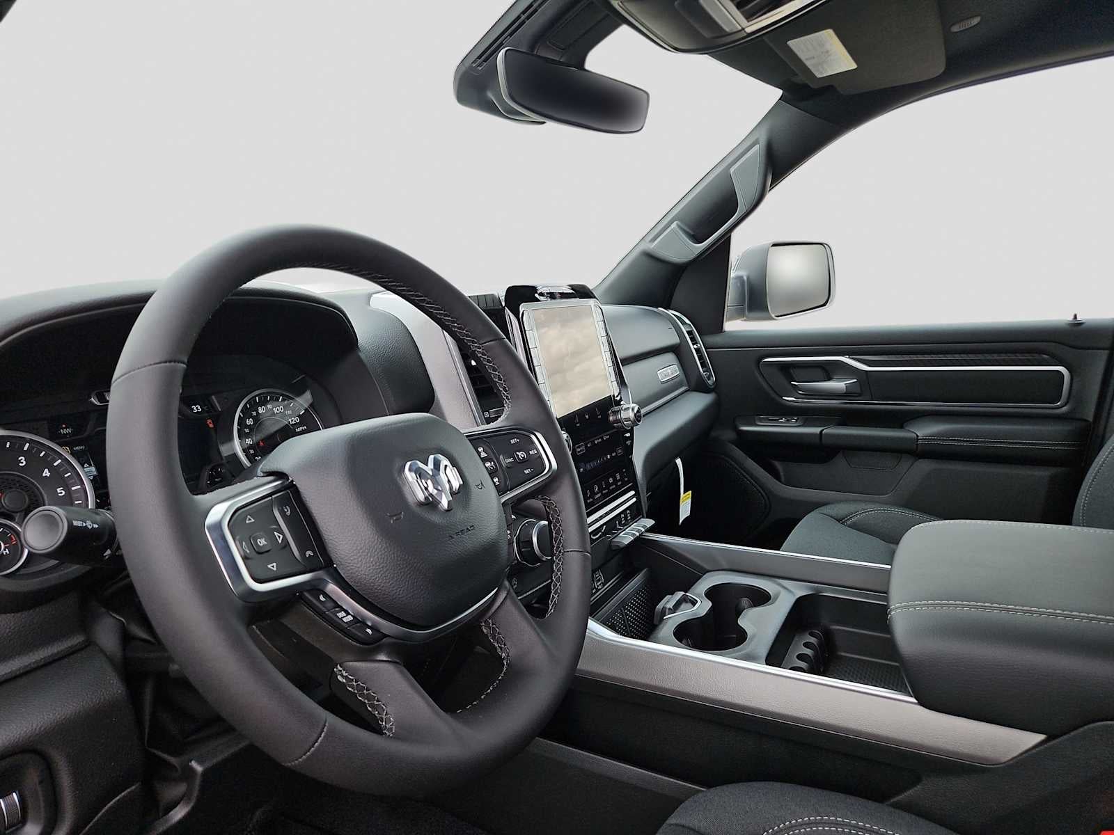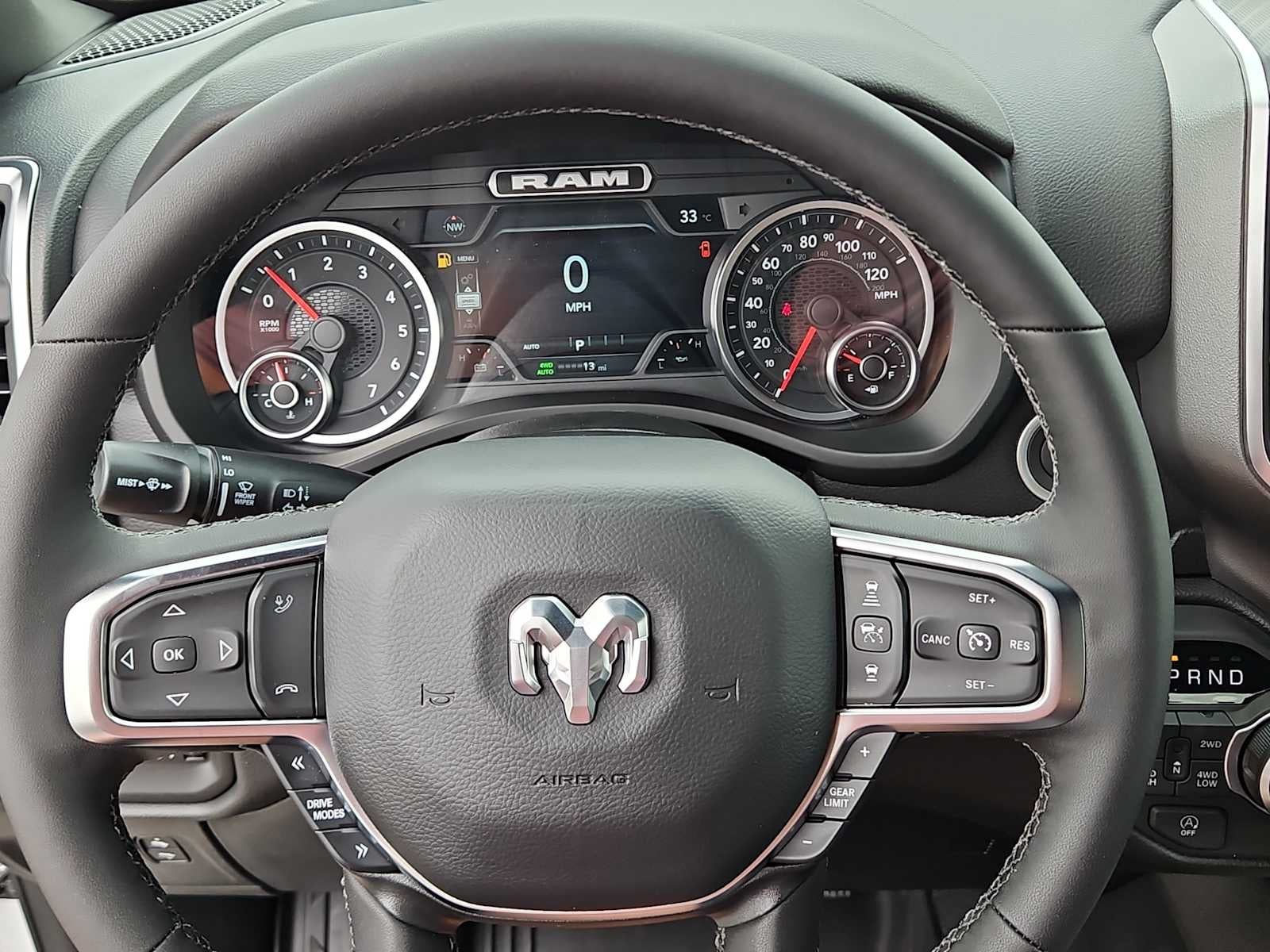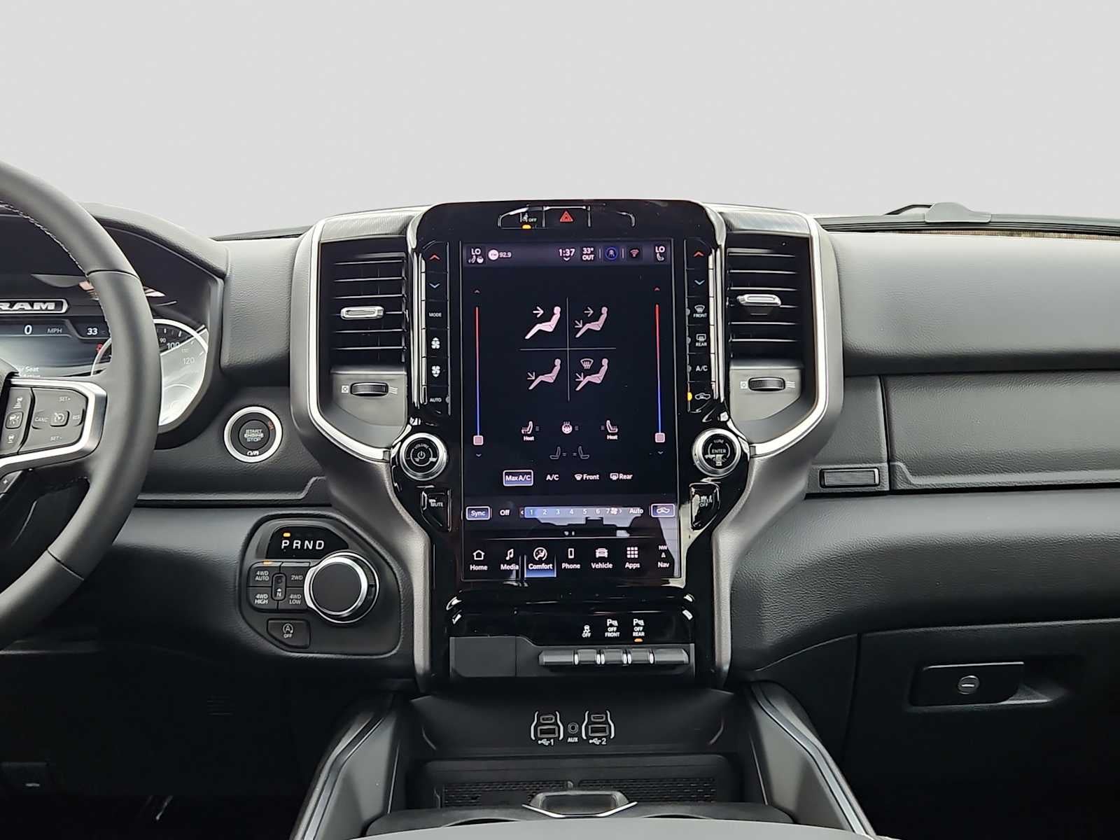 BIG HORN LEVEL 2 EQUIPMENT GROUP SiriusXM Radio Service, Power Adjustable Pedals, Leather Wrapped Steering Wheel, 12 Touchscreen Display, Glove Box Lamp, Auto Power-Folding Mirrors, 115V Auxiliary Rear Power Outlet, Media Hub w/2 Charge Only USBs, Heated Front Seats, Security Alarm, Black Premium Power Mirrors, Premium Overhead Console, 9 Amplified Speakers w/Subwoofer, Disassociated Touchscreen Display, Body Color Fender Flares, Remote Tailgate Release, 115V Auxiliary Power Outlet, LED Dome Lamp w/On/Off Switch, Universal Garage Door Opener, 2nd Row In Floor Storage Bins, Sun Visors w/Illuminated Vanity Mirrors, LED Footwell Lighting, Rear Window Defroster, Rear View Auto Dim Mirror, Rear Power Sliding Window, GPS Navigation, Overhead LED Lamps, Wheels: 20 x 9 Aluminum Chrome Clad, ENGINE: 5.7L V8 HEMI MDS VVT ETORQUE Active Noise Control System, Heavy Duty Engine Cooling, Passive Tuned Mass Damper, GVWR: 7,100 lbs, Dual Rear Exhaust w/Bright Tips, G/T Exhaust, 18 Aluminum Spare Wheel, NIGHT EDITION Tires: 275/55R20 OWL All Season, Bridgestone Brand Tires, Accent Color Premium Power Mirrors, Exterior Mirrors w/Supplemental Signals, Black Headlamp Bezels, Exterior Mirrors Courtesy Lamps, Grille Black Surround Black Mesh, Auto Power-Folding Mirrors, Wheels: 20 x 9.0 Aluminum Painted Clad, Auto Dim Exterior Driver Mirror, Black Exterior Truck Badging, Anti-Spin Differential Rear Axle, Accent Color Door Handles, Accent Color Tailgate Handle, Black Interior Accents, Dual Exhaust w/Black Tips, Body Color Front Bumper, Body Color Rear Bumper w/Step Pads, Black Tail Lamp Bezels, RAM Grille Badge - Black, Black Painted Exterior Mirrors Caps, MOPAR FRONT & REAR RUBBER FLOOR MATS, TRANSMISSION: 8-SPEED AUTOMATIC (8HP75). Ram Lone Star with Bright White Clearcoat exterior and Black interior features a 8 Cylinder Engine with 395 HP at 5600 RPM*.