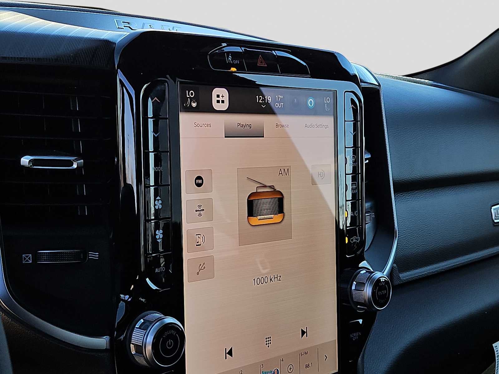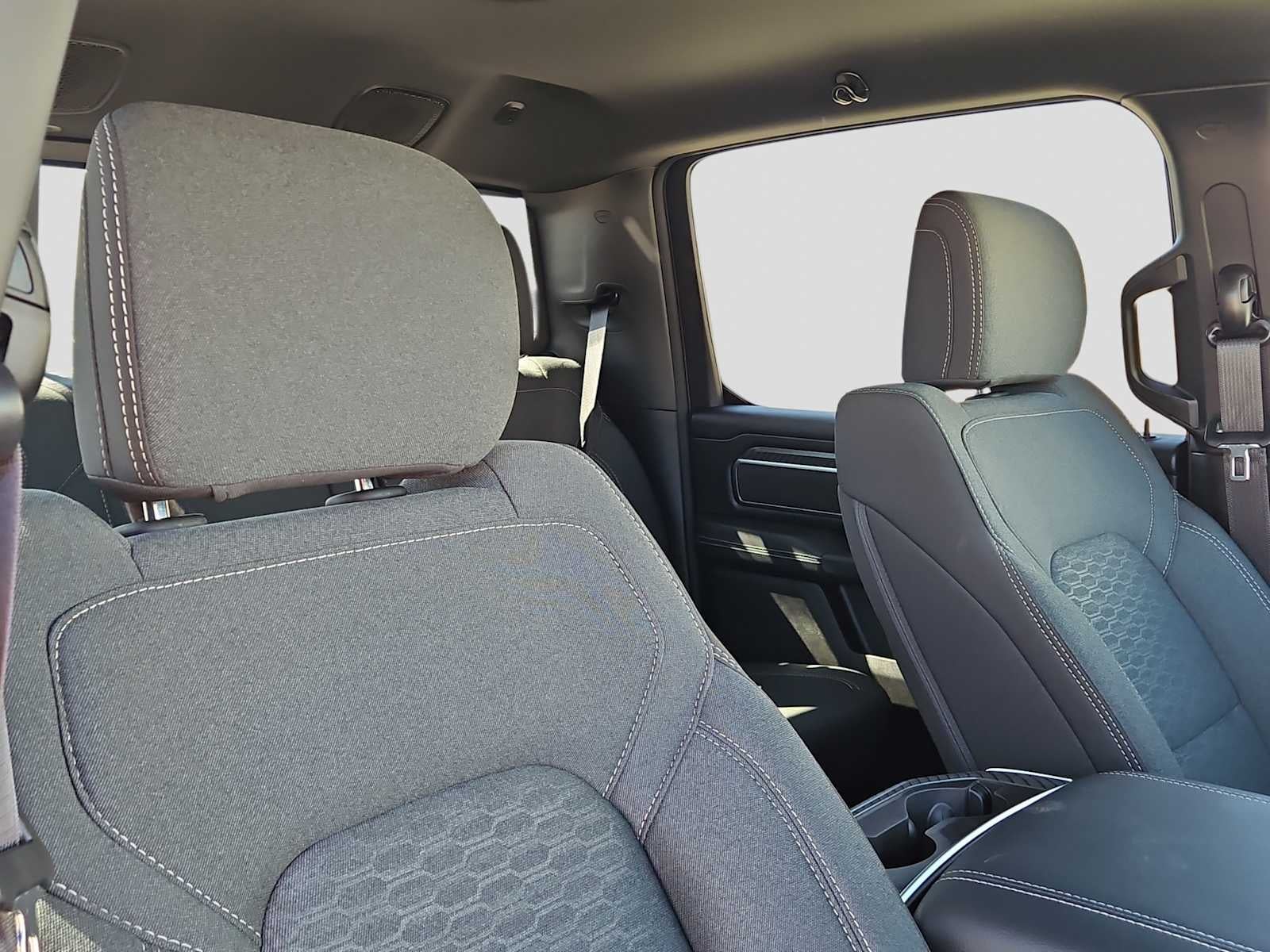 BIG HORN LEVEL 2 EQUIPMENT GROUP SiriusXM Radio Service, Power Adjustable Pedals, Leather Wrapped Steering Wheel, 12 Touchscreen Display, Glove Box Lamp, Auto Power-Folding Mirrors, 115V Auxiliary Rear Power Outlet, Media Hub w/2 Charge Only USBs, Heated Front Seats, Security Alarm, Black Premium Power Mirrors, Premium Overhead Console, 9 Amplified Speakers w/Subwoofer, Disassociated Touchscreen Display, Body Color Fender Flares, Remote Tailgate Release, 115V Auxiliary Power Outlet, LED Dome Lamp w/On/Off Switch, Universal Garage Door Opener, 2nd Row In Floor Storage Bins, Sun Visors w/Illuminated Vanity Mirrors, LED Footwell Lighting, Rear Window Defroster, Rear View Auto Dim Mirror, Rear Power Sliding Window, GPS Navigation, Overhead LED Lamps, Wheels: 20 x 9 Aluminum Chrome Clad, ENGINE: 5.7L V8 HEMI MDS VVT ETORQUE Active Noise Control System, Heavy Duty Engine Cooling, Passive Tuned Mass Damper, GVWR: 7,100 lbs, Dual Rear Exhaust w/Bright Tips, G/T Exhaust, 18 Aluminum Spare Wheel, NIGHT EDITION Tires: 275/55R20 OWL All Season, Bridgestone Brand Tires, Accent Color Premium Power Mirrors, Exterior Mirrors w/Supplemental Signals, Black Headlamp Bezels, Exterior Mirrors Courtesy Lamps, Grille Black Surround Black Mesh, Auto Power-Folding Mirrors, Wheels: 20 x 9.0 Aluminum Painted Clad, Auto Dim Exterior Driver Mirror, Black Exterior Truck Badging, Anti-Spin Differential Rear Axle, Accent Color Door Handles, Accent Color Tailgate Handle, Black Interior Accents, Dual Exhaust w/Black Tips, Body Color Front Bumper, Body Color Rear Bumper w/Step Pads, Black Tail Lamp Bezels, RAM Grille Badge - Black, Black Painted Exterior Mirrors Caps, MOPAR FRONT & REAR RUBBER FLOOR MATS, TRANSMISSION: 8-SPEED AUTOMATIC (8HP75). Ram Lone Star with Silver Zynith exterior and Black interior features a 8 Cylinder Engine with 395 HP at 5600 RPM*.