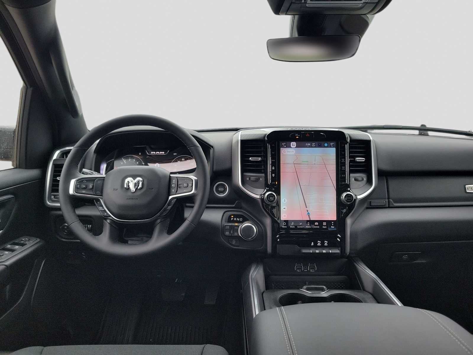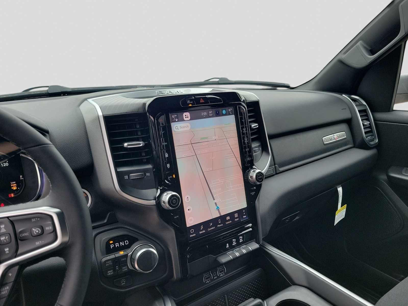 BIG HORN LEVEL 2 EQUIPMENT GROUP SiriusXM Radio Service, Power Adjustable Pedals, Leather Wrapped Steering Wheel, 12 Touchscreen Display, Glove Box Lamp, Auto Power-Folding Mirrors, 115V Auxiliary Rear Power Outlet, Media Hub w/2 Charge Only USBs, Heated Front Seats, Security Alarm, Black Premium Power Mirrors, Premium Overhead Console, 9 Amplified Speakers w/Subwoofer, Disassociated Touchscreen Display, Body Color Fender Flares, Remote Tailgate Release, 115V Auxiliary Power Outlet, LED Dome Lamp w/On/Off Switch, Universal Garage Door Opener, 2nd Row In Floor Storage Bins, Sun Visors w/Illuminated Vanity Mirrors, LED Footwell Lighting, Rear Window Defroster, Rear View Auto Dim Mirror, Rear Power Sliding Window, GPS Navigation, Overhead LED Lamps, Wheels: 20 x 9 Aluminum Chrome Clad, ENGINE: 5.7L V8 HEMI MDS VVT ETORQUE Active Noise Control System, Heavy Duty Engine Cooling, Passive Tuned Mass Damper, GVWR: 7,100 lbs, Dual Rear Exhaust w/Bright Tips, G/T Exhaust, 18 Aluminum Spare Wheel, NIGHT EDITION Tires: 275/55R20 OWL All Season, Bridgestone Brand Tires, Accent Color Premium Power Mirrors, Exterior Mirrors w/Supplemental Signals, Black Headlamp Bezels, Exterior Mirrors Courtesy Lamps, Grille Black Surround Black Mesh, Auto Power-Folding Mirrors, Wheels: 20 x 9.0 Aluminum Painted Clad, Auto Dim Exterior Driver Mirror, Black Exterior Truck Badging, Anti-Spin Differential Rear Axle, Accent Color Door Handles, Accent Color Tailgate Handle, Black Interior Accents, Dual Exhaust w/Black Tips, Body Color Front Bumper, Body Color Rear Bumper w/Step Pads, Black Tail Lamp Bezels, RAM Grille Badge - Black, Black Painted Exterior Mirrors Caps, PROTECTION GROUP Transfer Case Skid Plate, Steering Gear Skid Plate, Fuel Tank Skid Plate, Tow Hooks, MOPAR FRONT & REAR RUBBER FLOOR MATS, TRANSMISSION: 8-SPEED AUTOMATIC (8HP75). Ram Lone Star with Granite Crystal Metallic Clearcoat exterior and Black interior features a 8 Cylinder Engine with 395 HP at 5600 RPM*.