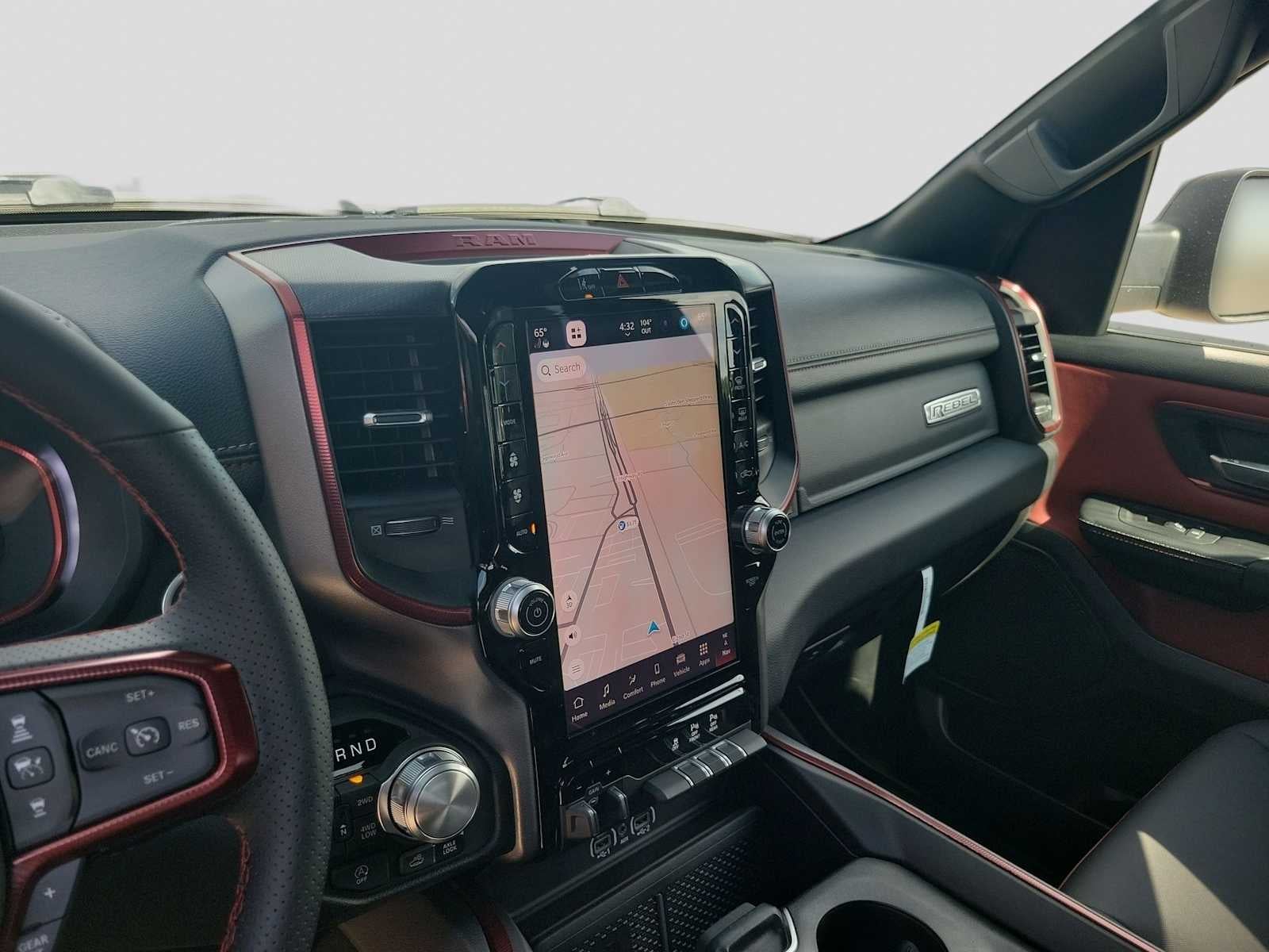 BED UTILITY GROUP MOPAR Spray In Bedliner, MOPAR 4 Adjustable Cargo Tie-Down Hooks, Exterior 115V AC Outlet, REBEL LEVEL 1 EQUIPMENT GROUP Rear Window Defroster, Wireless Charging Pad, Power Adjustable Pedals, Exterior Mirrors w/Supplemental Signals, Exterior Mirrors Courtesy Lamps, Auto Power-Folding Mirrors, Remote Tailgate Release, Auto Dim Exterior Driver Mirror, Black Premium Power Mirrors, TRANSMISSION: 8-SPEED AUTOMATIC (8HP75) (STD), ENGINE: 3.0L I6 HURRICANE SO TWIN TURBO ESS (STD). Ram Rebel with Granite Crystal Metallic Clearcoat exterior and Red/Black interior features a Straight 6 Cylinder Engine with 420 HP at 5200 RPM*.