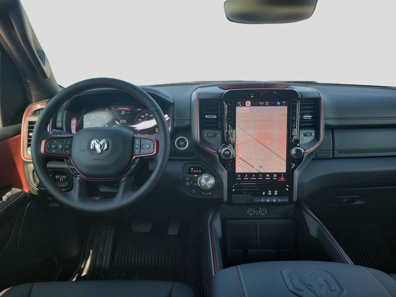 BED UTILITY GROUP MOPAR Spray In Bedliner, MOPAR 4 Adjustable Cargo Tie-Down Hooks, Exterior 115V AC Outlet, REBEL LEVEL 1 EQUIPMENT GROUP Rear Window Defroster, Wireless Charging Pad, Power Adjustable Pedals, Exterior Mirrors w/Supplemental Signals, Exterior Mirrors Courtesy Lamps, Auto Power-Folding Mirrors, Remote Tailgate Release, Auto Dim Exterior Driver Mirror, Black Premium Power Mirrors, TRANSMISSION: 8-SPEED AUTOMATIC (8HP75) (STD), ENGINE: 3.0L I6 HURRICANE SO TWIN TURBO ESS (STD). Ram Rebel with Bright White Clearcoat exterior and Red/Black interior features a Straight 6 Cylinder Engine with 420 HP at 5200 RPM*.