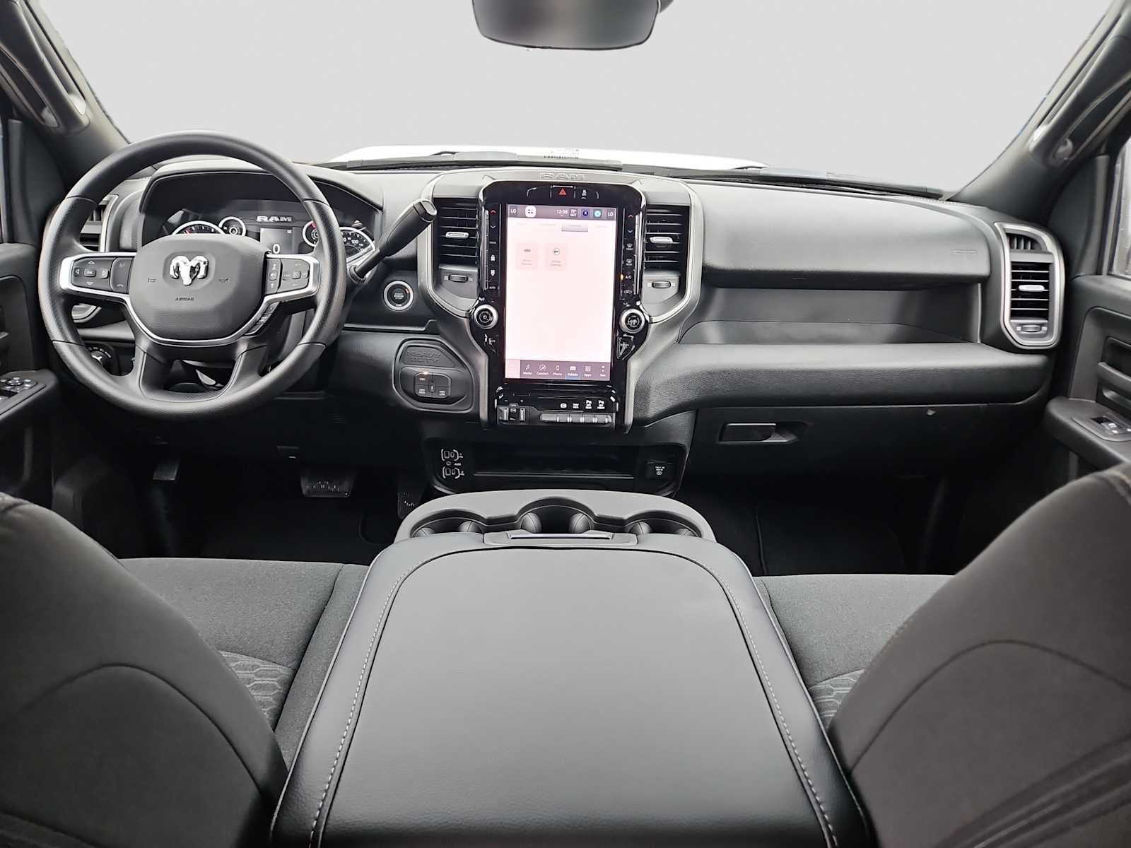 ENGINE: 6.7L I6 CUMMINS HO TURBO DIESEL Selective Catalytic Reduction (Urea), Dual 730 Amp Maintenance Free Batteries, Cummins Turbo Diesel Badge, Heavy Duty Engine Cooling, Diesel Exhaust Brake, Supplemental Heater, 3.42 Axle Ratio, Front Bumper Sight Shields, Capless Fuel Fill w/o Discriminator, GVWR: 11,040 lbs, TRADESMAN LEVEL 1 EQUIPMENT GROUP Convenience Group, Emergency Vehicle Alert System (EVAS), 12 Touchscreen Display, Exterior 115V AC Outlet, Alexa Built-In, Disassociated Touchscreen Display, 115V Auxiliary Front Power Outlet, Rear View Auto Dim Mirror, Rear Power Sliding Window, Tinted Acoustic Windshield Glass, GPS Navigation, SiriusXM w/360L, Connected Travel & Traffic Services, Off-Road Info Pages, Trailer Tow Pages, 400W Inverter, HD Radio, Radio: Uconnect 5 Nav w/12.0 Display, Air Conditioning ATC w/Dual Zone Control, BED UTILITY GROUP MOPAR Spray In Bedliner, LED Bed Lighting, MOPAR Deployable Bed Step, ANTI-SPIN DIFFERENTIAL REAR AXLE, TRANSMISSION: 8-SPEED TORQUEFLITE HD AUTOMATIC, BLACK, CLOTH 40/20/40 BENCH SEAT, QUICK ORDER PACKAGE 24C BLACK EXPRESS Engine: 6.7L I6 Cummins HO Turbo Diesel, Transmission: 8-Speed TorqueFlite HD Automatic, Wheels: 20 x 8.0 Black Painted Aluminum, Auto Power-Folding Mirrors, Painted Front Bumper, Painted Rear Bumper, Exterior Mirrors w/Heating Element, MOPAR Black Tubular Side Steps, Mirror Running Lights, Body Color Grille-Surround, Carpet Floor Covering, Power-Adjustable Convex Aux Mirrors, Forward & Reverse Utility Lights, Power Heated Folding Telescopic Mirrors, Exterior Mirrors w/Supplemental Signals, Sport Performance Hood, Exterior Mirrors Courtesy Lamps, Tires: LT285/60R20E OWL On/Off Road, Power Adjust Mirrors, Power Telescoping Mirrors, Front & Rear Floor Mats, ParkSense Front/Rear Park Assist System. Ram Tradesman with Silver Zynith exterior and Black interior features a Straight 6 Cylinder Engine with 430 HP at 2800 RPM*.