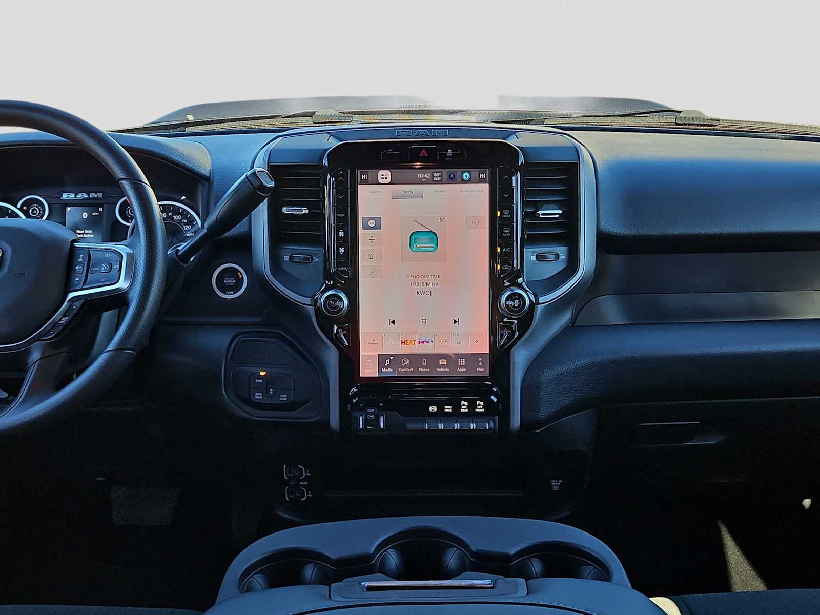 ENGINE: 6.7L I6 CUMMINS HO TURBO DIESEL Selective Catalytic Reduction (Urea), Dual 730 Amp Maintenance Free Batteries, Cummins Turbo Diesel Badge, Heavy Duty Engine Cooling, Diesel Exhaust Brake, Supplemental Heater, 3.42 Axle Ratio, Front Bumper Sight Shields, Capless Fuel Fill w/o Discriminator, GVWR: 11,040 lbs, QUICK ORDER PACKAGE 24C BLACK EXPRESS Engine: 6.7L I6 Cummins HO Turbo Diesel, Transmission: 8-Speed TorqueFlite HD Automatic, Auto Power-Folding Mirrors, Painted Front Bumper, Painted Rear Bumper, Exterior Mirrors w/Heating Element, Mirror Running Lights, Body Color Grille-Surround, Carpet Floor Covering, Power-Adjustable Convex Aux Mirrors, Forward & Reverse Utility Lights, Power Heated Folding Telescopic Mirrors, Exterior Mirrors w/Supplemental Signals, Sport Performance Hood, Exterior Mirrors Courtesy Lamps, Power Adjust Mirrors, 18 Steel Spare Wheel, Power Telescoping Mirrors, Front & Rear Floor Mats, ParkSense Front/Rear Park Assist System, TRADESMAN LEVEL 1 EQUIPMENT GROUP Convenience Group, Rear View Auto Dim Mirror, Rear Power Sliding Window, Emergency Vehicle Alert System (EVAS), 12 Touchscreen Display, Tinted Acoustic Windshield Glass, GPS Navigation, SiriusXM w/360L, Anti-Spin Differential Rear Axle, Connected Travel & Traffic Services, Exterior 115V AC Outlet, Alexa Built-In, Off-Road Info Pages, Trailer Tow Pages, 400W Inverter, Disassociated Touchscreen Display, HD Radio, Radio: Uconnect 5 Nav w/12.0 Display, Air Conditioning ATC w/Dual Zone Control, 115V Auxiliary Front Power Outlet, BED CONVENIENCE GROUP MOPAR Spray In Bedliner, LED Bed Lighting, TRANSMISSION: 8-SPEED TORQUEFLITE HD AUTOMATIC. Ram Black Express with Granite Crystal Metallic Clearcoat exterior and Black interior features a Straight 6 Cylinder Engine with 430 HP at 2800 RPM*.