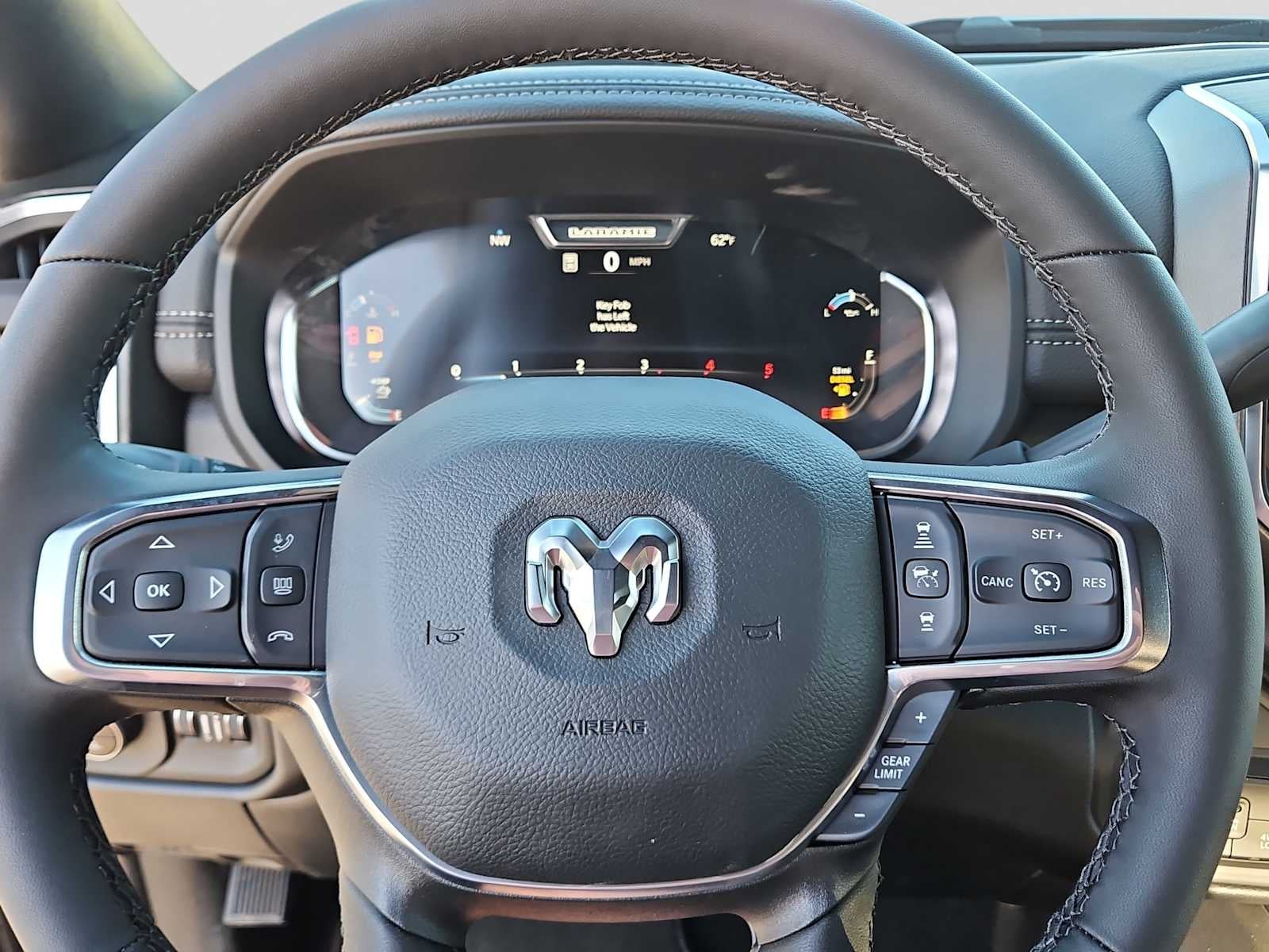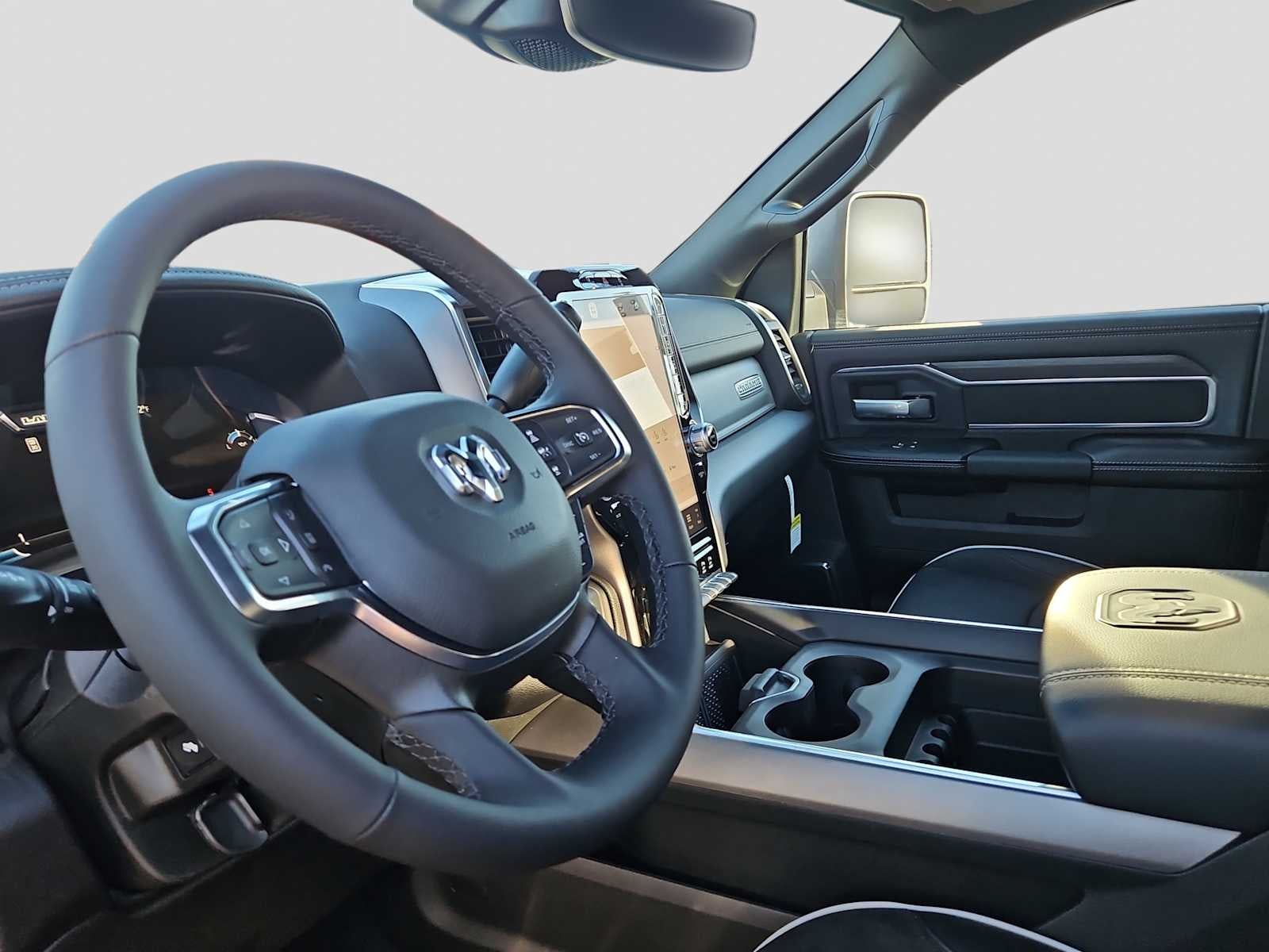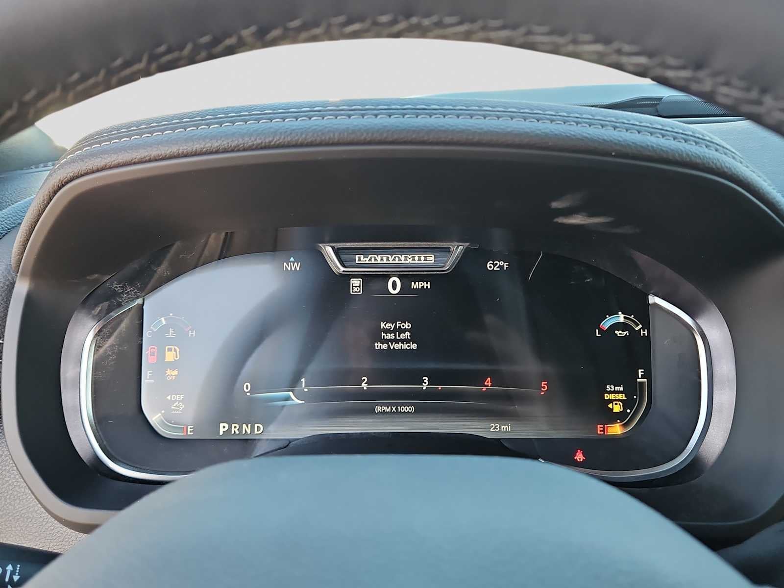 ENGINE: 6.7L I6 CUMMINS HO TURBO DIESEL Selective Catalytic Reduction (Urea), Dual 730 Amp Maintenance Free Batteries, Cummins Turbo Diesel Badge, Heavy Duty Engine Cooling, Diesel Exhaust Brake, Supplemental Heater, 3.42 Axle Ratio, Front Bumper Sight Shields, Capless Fuel Fill w/o Discriminator, GVWR: 11,040 lbs, NIGHT EDITION Tires: LT285/60R20E OWL On/Off Road, Black Exterior Truck Badging, Wheels: 20 x 8.0 Black Painted Aluminum, Gloss Black Grille Billets/Accents, Body Color Grille-Surround, Sport Performance Hood, Black Exterior Mirrors, LARAMIE LEVEL 1 PLUS EQUIPMENT GROUP CTR Stop Lamp w/Cargo View Camera, Rain Sensitive Windshield Wipers, Power Adjustable Pedals w/Memory, LED Bed Lighting, Traffic Sign Recognition, Adaptive Steering System, Auto Dim Exterior Mirror, Anti-Spin Differential Rear Axle, Drowsy Driver Detection, MOPAR Deployable Bed Step, Foam Bottle Insert (Door Trim Panel), Active Lane Management System, Power Heated Fold Telescopic Mirrors w/Memory, MOPAR Spray In Bedliner, Remote Tailgate Release, Auto High Beam Headlamp Control, Exterior Mirrors w/Memory, 2nd Row In Floor Storage Bins, Auto Dim Exterior Passenger Mirror, Auto Adjust In Reverse Exterior Mirrors, TRANSMISSION: 8-SPEED TORQUEFLITE HD AUTOMATIC, BLACK, LEATHER TRIMMED BUCKET SEATS Bucket Seats, Dual Wireless Charging Pad, Ventilated Front Seats, Radio/Driver Seat/Mirrors/Pedals Memory, Full Length Upgraded Floor Console. Ram Laramie with Ceramic Gray Clearcoat exterior and Black interior features a Straight 6 Cylinder Engine with 430 HP at 2800 RPM*.