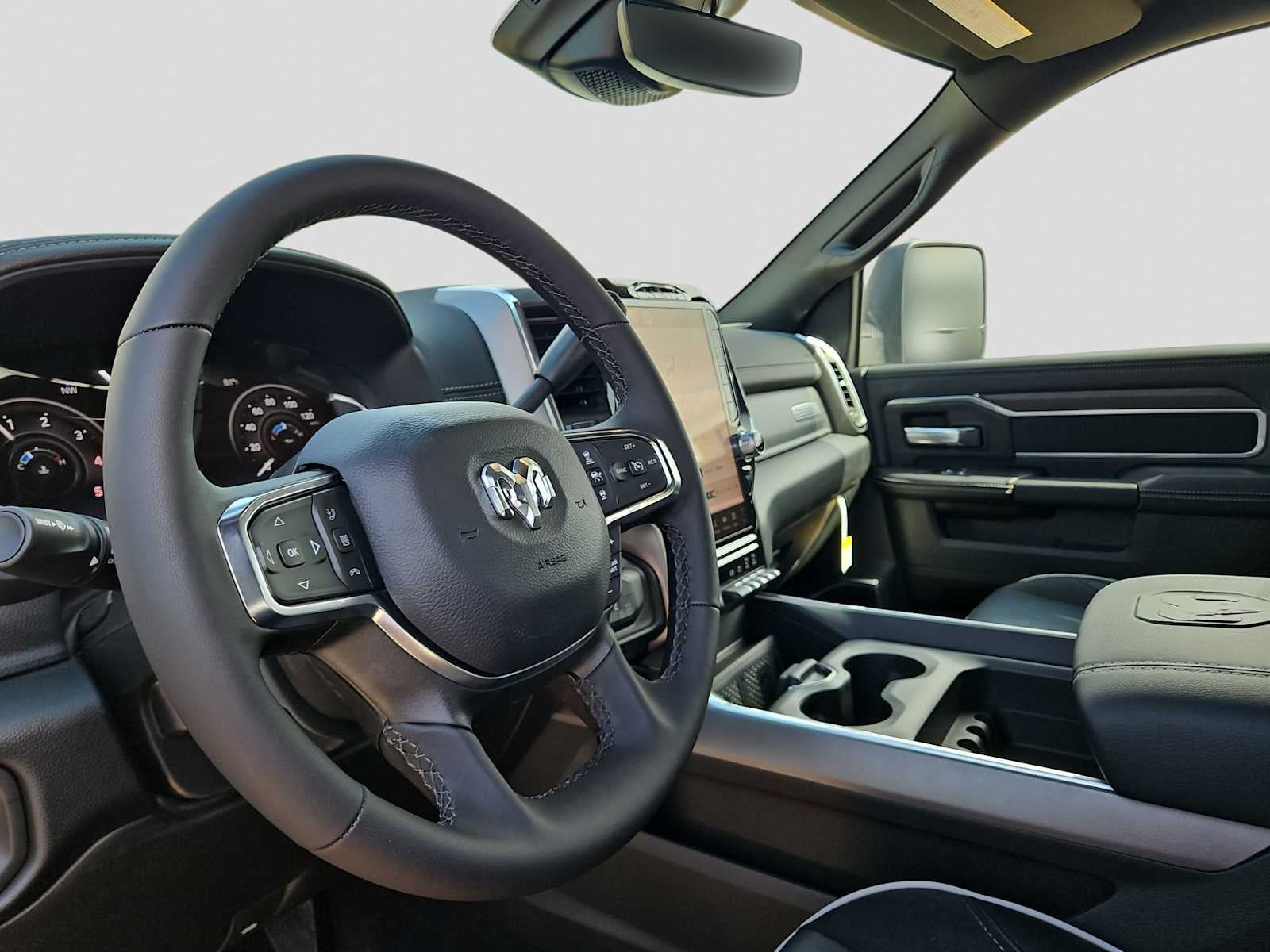 ENGINE: 6.7L I6 CUMMINS HO TURBO DIESEL Selective Catalytic Reduction (Urea), Dual 730 Amp Maintenance Free Batteries, Cummins Turbo Diesel Badge, Heavy Duty Engine Cooling, Diesel Exhaust Brake, Supplemental Heater, 3.42 Axle Ratio, Front Bumper Sight Shields, Capless Fuel Fill w/o Discriminator, GVWR: 11,040 lbs, NIGHT EDITION Tires: LT285/60R20E OWL On/Off Road, Black Exterior Truck Badging, Wheels: 20 x 8.0 Black Painted Aluminum, Gloss Black Grille Billets/Accents, Body Color Grille-Surround, Sport Performance Hood, Black Exterior Mirrors, LARAMIE LEVEL 1 PLUS EQUIPMENT GROUP CTR Stop Lamp w/Cargo View Camera, Rain Sensitive Windshield Wipers, Power Adjustable Pedals w/Memory, LED Bed Lighting, Traffic Sign Recognition, Adaptive Steering System, Auto Dim Exterior Mirror, Anti-Spin Differential Rear Axle, Drowsy Driver Detection, MOPAR Deployable Bed Step, Foam Bottle Insert (Door Trim Panel), Active Lane Management System, Power Heated Fold Telescopic Mirrors w/Memory, MOPAR Spray In Bedliner, Remote Tailgate Release, Auto High Beam Headlamp Control, Exterior Mirrors w/Memory, 2nd Row In Floor Storage Bins, Auto Dim Exterior Passenger Mirror, Auto Adjust In Reverse Exterior Mirrors, TRANSMISSION: 8-SPEED TORQUEFLITE HD AUTOMATIC, BLACK, LEATHER TRIMMED BUCKET SEATS Bucket Seats, Dual Wireless Charging Pad, Ventilated Front Seats, Radio/Driver Seat/Mirrors/Pedals Memory, Full Length Upgraded Floor Console. Ram Laramie with Ceramic Gray Clearcoat exterior and Black interior features a Straight 6 Cylinder Engine with 430 HP at 2800 RPM*.