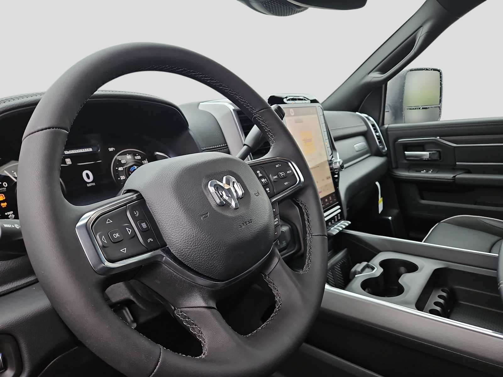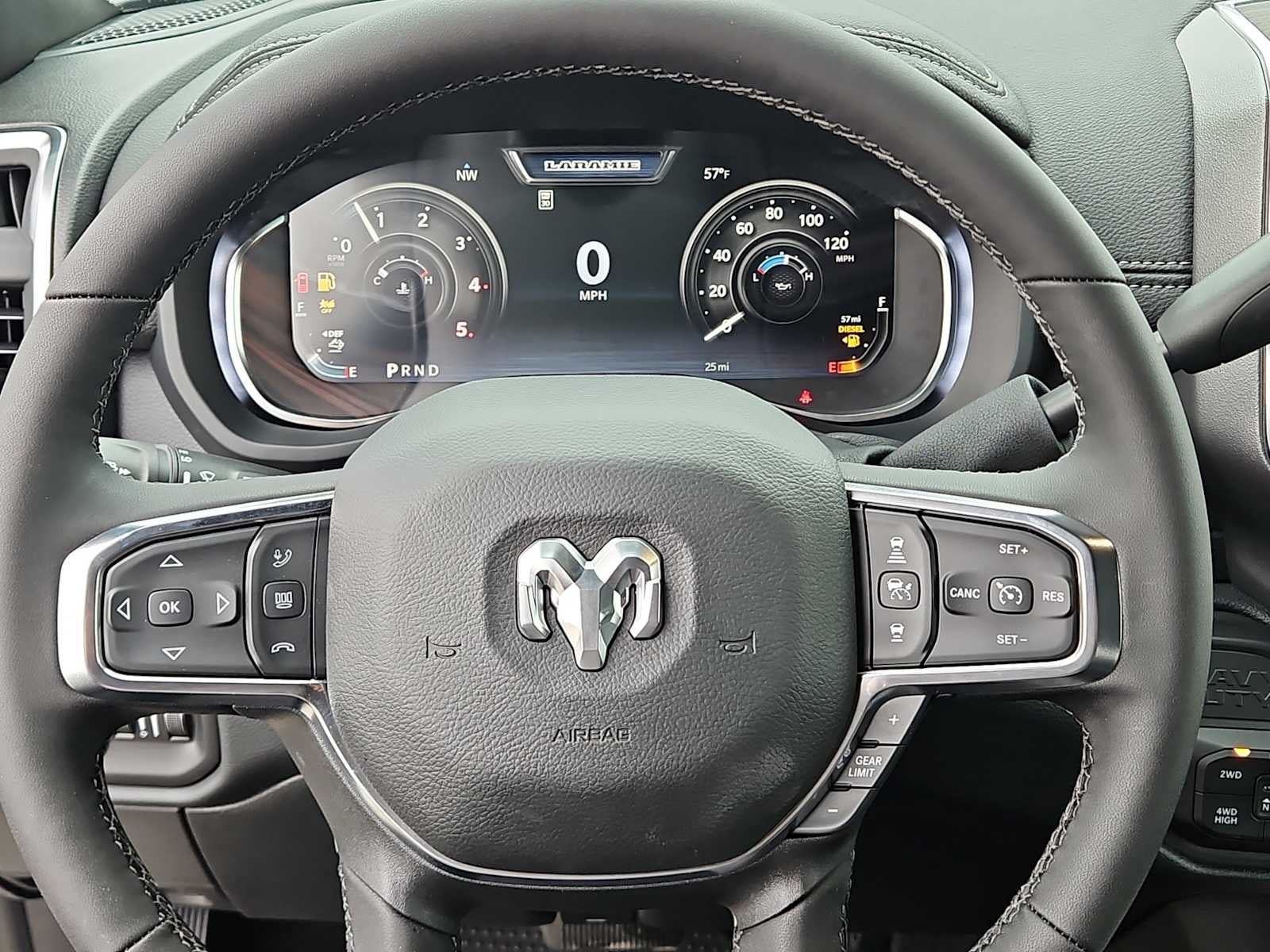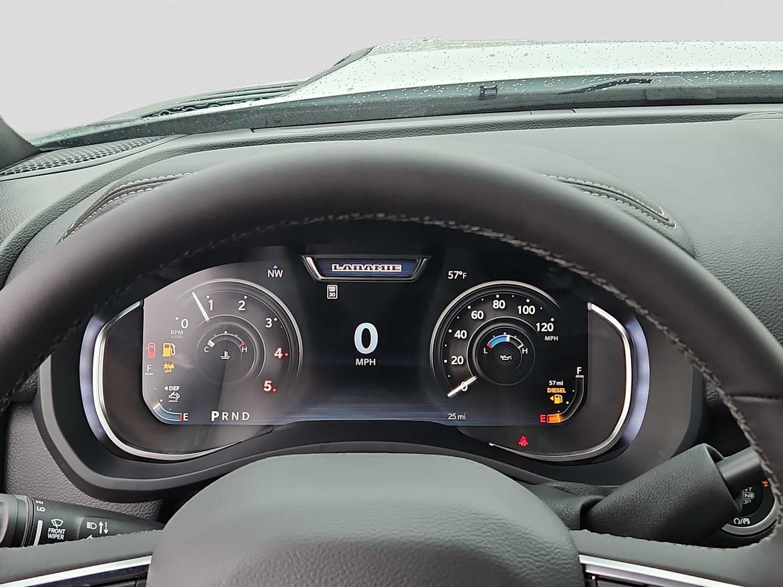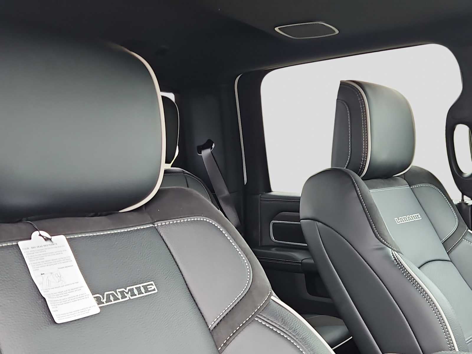 ENGINE: 6.7L I6 CUMMINS HO TURBO DIESEL Selective Catalytic Reduction (Urea), Dual 730 Amp Maintenance Free Batteries, Cummins Turbo Diesel Badge, Heavy Duty Engine Cooling, Diesel Exhaust Brake, Supplemental Heater, 3.42 Axle Ratio, Front Bumper Sight Shields, Capless Fuel Fill w/o Discriminator, GVWR: 11,040 lbs, NIGHT EDITION Tires: LT285/60R20E OWL On/Off Road, Black Exterior Truck Badging, Wheels: 20 x 8.0 Black Painted Aluminum, Gloss Black Grille Billets/Accents, Body Color Grille-Surround, Sport Performance Hood, Black Exterior Mirrors, LARAMIE LEVEL 1 PLUS EQUIPMENT GROUP CTR Stop Lamp w/Cargo View Camera, Rain Sensitive Windshield Wipers, Power Adjustable Pedals w/Memory, LED Bed Lighting, Traffic Sign Recognition, Adaptive Steering System, Auto Dim Exterior Mirror, Anti-Spin Differential Rear Axle, Drowsy Driver Detection, MOPAR Deployable Bed Step, Foam Bottle Insert (Door Trim Panel), Active Lane Management System, Power Heated Fold Telescopic Mirrors w/Memory, MOPAR Spray In Bedliner, Remote Tailgate Release, Auto High Beam Headlamp Control, Exterior Mirrors w/Memory, 2nd Row In Floor Storage Bins, Auto Dim Exterior Passenger Mirror, Auto Adjust In Reverse Exterior Mirrors, PAINTED FLAT WHEEL-TO-WHEEL SIDE STEPS, TRANSMISSION: 8-SPEED TORQUEFLITE HD AUTOMATIC, BLACK, LEATHER TRIMMED BUCKET SEATS Bucket Seats, Dual Wireless Charging Pad, Ventilated Front Seats, Radio/Driver Seat/Mirrors/Pedals Memory, Full Length Upgraded Floor Console. Ram Laramie with Bright White Clearcoat exterior and Black interior features a Straight 6 Cylinder Engine with 430 HP at 2800 RPM*.