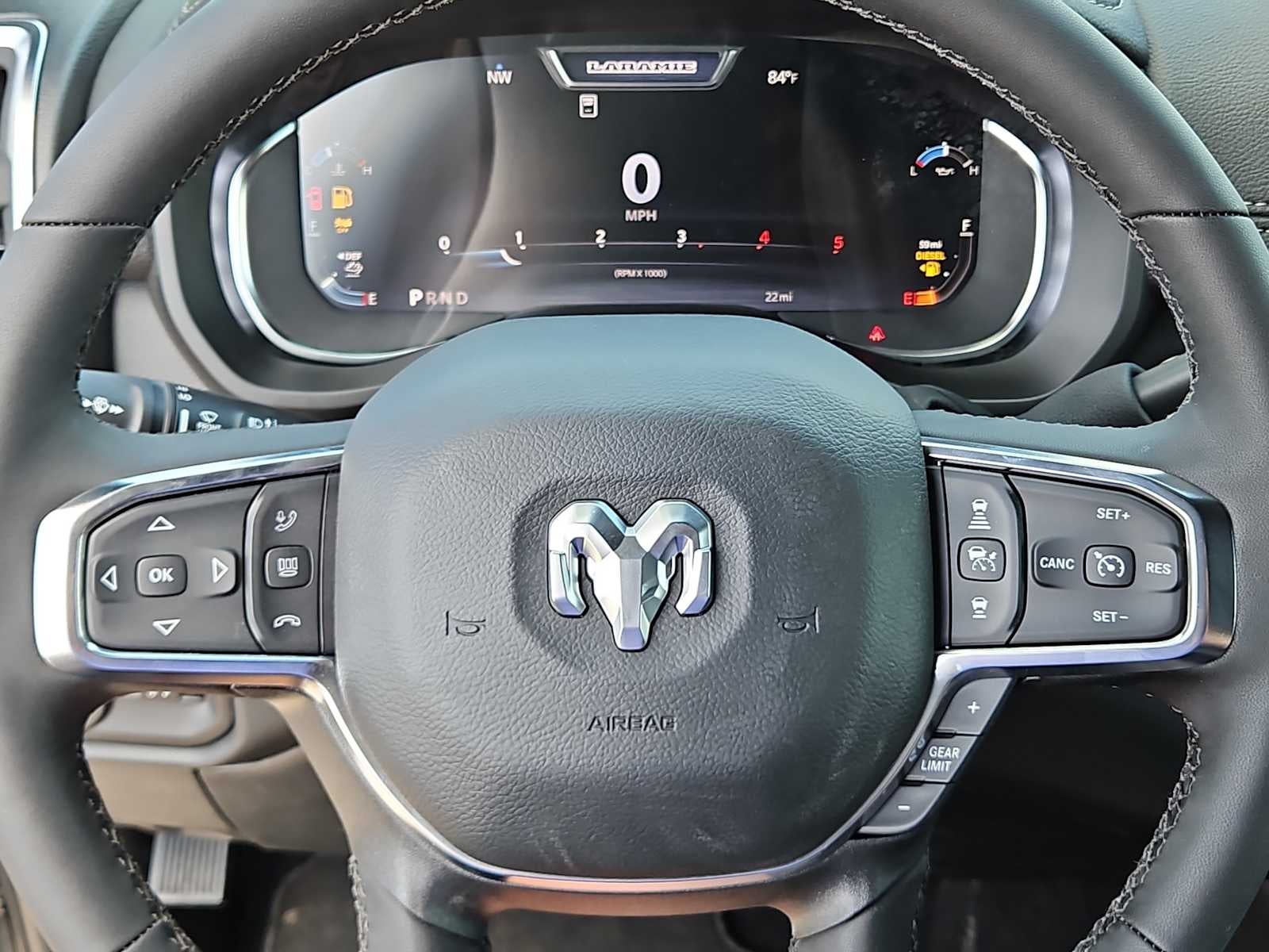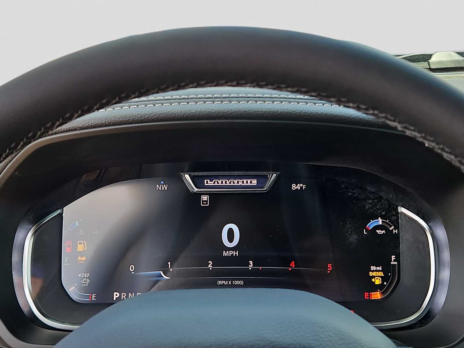 ENGINE: 6.7L I6 CUMMINS HO TURBO DIESEL Selective Catalytic Reduction (Urea), Dual 730 Amp Maintenance Free Batteries, Cummins Turbo Diesel Badge, Heavy Duty Engine Cooling, Diesel Exhaust Brake, Supplemental Heater, 3.42 Axle Ratio, Front Bumper Sight Shields, Capless Fuel Fill w/o Discriminator, GVWR: 11,040 lbs, NIGHT EDITION Tires: LT285/60R20E OWL On/Off Road, Black Exterior Truck Badging, Wheels: 20 x 8.0 Black Painted Aluminum, Gloss Black Grille Billets/Accents, Body Color Grille-Surround, Sport Performance Hood, Black Exterior Mirrors, LARAMIE LEVEL 1 PLUS EQUIPMENT GROUP CTR Stop Lamp w/Cargo View Camera, Rain Sensitive Windshield Wipers, Power Adjustable Pedals w/Memory, LED Bed Lighting, Traffic Sign Recognition, Adaptive Steering System, Auto Dim Exterior Mirror, Anti-Spin Differential Rear Axle, Drowsy Driver Detection, MOPAR Deployable Bed Step, Foam Bottle Insert (Door Trim Panel), Active Lane Management System, Power Heated Fold Telescopic Mirrors w/Memory, MOPAR Spray In Bedliner, Remote Tailgate Release, Auto High Beam Headlamp Control, Exterior Mirrors w/Memory, 2nd Row In Floor Storage Bins, Auto Dim Exterior Passenger Mirror, Auto Adjust In Reverse Exterior Mirrors, PAINTED FLAT WHEEL-TO-WHEEL SIDE STEPS, TRANSMISSION: 8-SPEED TORQUEFLITE HD AUTOMATIC, BLACK, LEATHER TRIMMED BUCKET SEATS Bucket Seats, Dual Wireless Charging Pad, Ventilated Front Seats, Radio/Driver Seat/Mirrors/Pedals Memory, Full Length Upgraded Floor Console. Ram Laramie with Diamond Black Crystal Pearlcoat exterior and Black interior features a Straight 6 Cylinder Engine with 430 HP at 2800 RPM*.