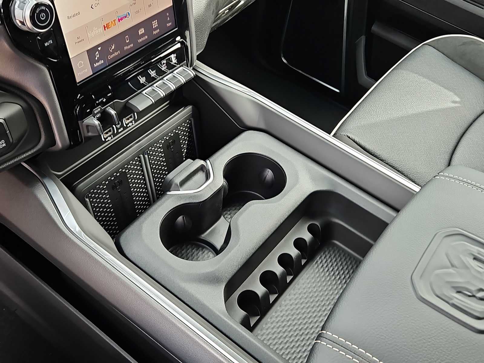 ENGINE: 6.7L I6 CUMMINS HO TURBO DIESEL Selective Catalytic Reduction (Urea), Dual 730 Amp Maintenance Free Batteries, Cummins Turbo Diesel Badge, Heavy Duty Engine Cooling, Diesel Exhaust Brake, Supplemental Heater, 3.42 Axle Ratio, Front Bumper Sight Shields, Capless Fuel Fill w/o Discriminator, GVWR: 11,040 lbs, NIGHT EDITION Tires: LT285/60R20E OWL On/Off Road, Black Exterior Truck Badging, Wheels: 20 x 8.0 Black Painted Aluminum, Gloss Black Grille Billets/Accents, Body Color Grille-Surround, Sport Performance Hood, Black Exterior Mirrors, LARAMIE LEVEL 1 PLUS EQUIPMENT GROUP CTR Stop Lamp w/Cargo View Camera, Rain Sensitive Windshield Wipers, Power Adjustable Pedals w/Memory, LED Bed Lighting, Traffic Sign Recognition, Adaptive Steering System, Auto Dim Exterior Mirror, Anti-Spin Differential Rear Axle, Drowsy Driver Detection, MOPAR Deployable Bed Step, Foam Bottle Insert (Door Trim Panel), Active Lane Management System, Power Heated Fold Telescopic Mirrors w/Memory, MOPAR Spray In Bedliner, Remote Tailgate Release, Auto High Beam Headlamp Control, Exterior Mirrors w/Memory, 2nd Row In Floor Storage Bins, Auto Dim Exterior Passenger Mirror, Auto Adjust In Reverse Exterior Mirrors, PAINTED FLAT WHEEL-TO-WHEEL SIDE STEPS, TRANSMISSION: 8-SPEED TORQUEFLITE HD AUTOMATIC, BLACK, LEATHER TRIMMED BUCKET SEATS Bucket Seats, Dual Wireless Charging Pad, Ventilated Front Seats, Radio/Driver Seat/Mirrors/Pedals Memory, Full Length Upgraded Floor Console. Ram Laramie with Ceramic Gray Clearcoat exterior and Black interior features a Straight 6 Cylinder Engine with 430 HP at 2800 RPM*.