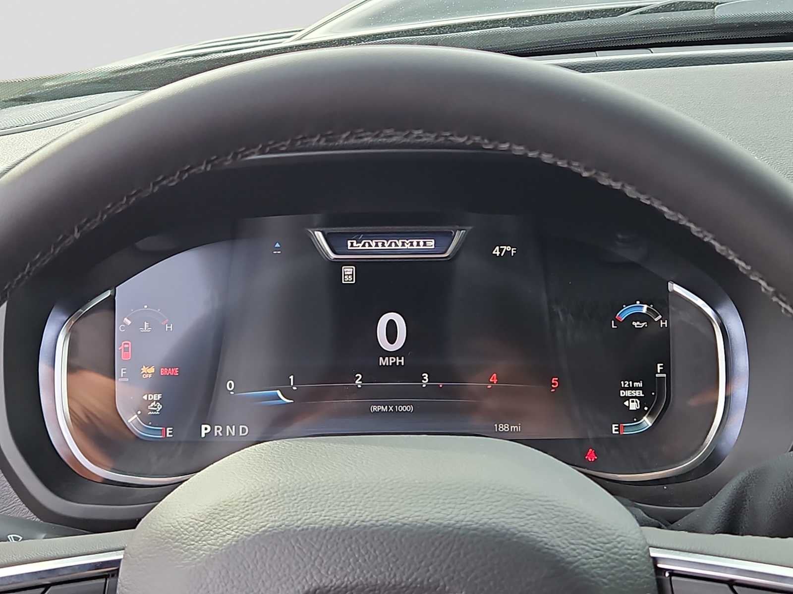 LARAMIE LEVEL 2 PLUS EQUIPMENT GROUP Power Adjustable Pedals w/Memory, Power Deployable Running Boards, Anti-Spin Differential Rear Axle, Drowsy Driver Detection, MOPAR Deployable Bed Step, Active Lane Management System, Remote Tailgate Release, 17 Speaker harman/kardon® Premium Sound, Center Stop Lamp w/Cargo View Camera, Rain Sensitive Windshield Wipers, LED Bed Lighting, Traffic Sign Recognition, Adaptive Steering System, Auto Dim Exterior Mirror, Foam Bottle Insert (Door Trim Panel), 14.4 Touchscreen Display, Power Heated Fold Telescope Mirrors w/Memory, Radio: Uconnect 5 Nav w/14.4 Display, MOPAR Spray In Bedliner, Auto High Beam Headlamp Control, Exterior Mirrors w/Memory, Auto Dim Exterior Passenger Mirror, Auto Adjust In Reverse Exterior Mirrors, NIGHT EDITION Tires: LT285/60R20E OWL On/Off Road, Black Exterior Truck Badging, Wheels: 20 x 8 Black Painted Aluminum, Gloss Black Grille Billets/Accents, Body Color Grille Surround, Sport Performance Hood, AUTO LEVEL REAR AIR SUSPENSION, TRANSMISSION: 8-SPEED TORQUEFLITE HD AUTOMATIC (STD), ENGINE: 6.7L I6 CUMMINS HO TURBO DIESEL (STD), BLACK, LEATHER TRIMMED BUCKET SEATS Bucket Seats, Dual Wireless Charging Pad, Full Length Upgraded Floor Console. Ram Laramie with Diamond Black Crystal Pearlcoat exterior and Black interior features a Straight 6 Cylinder Engine with 430 HP at 2800 RPM*.
