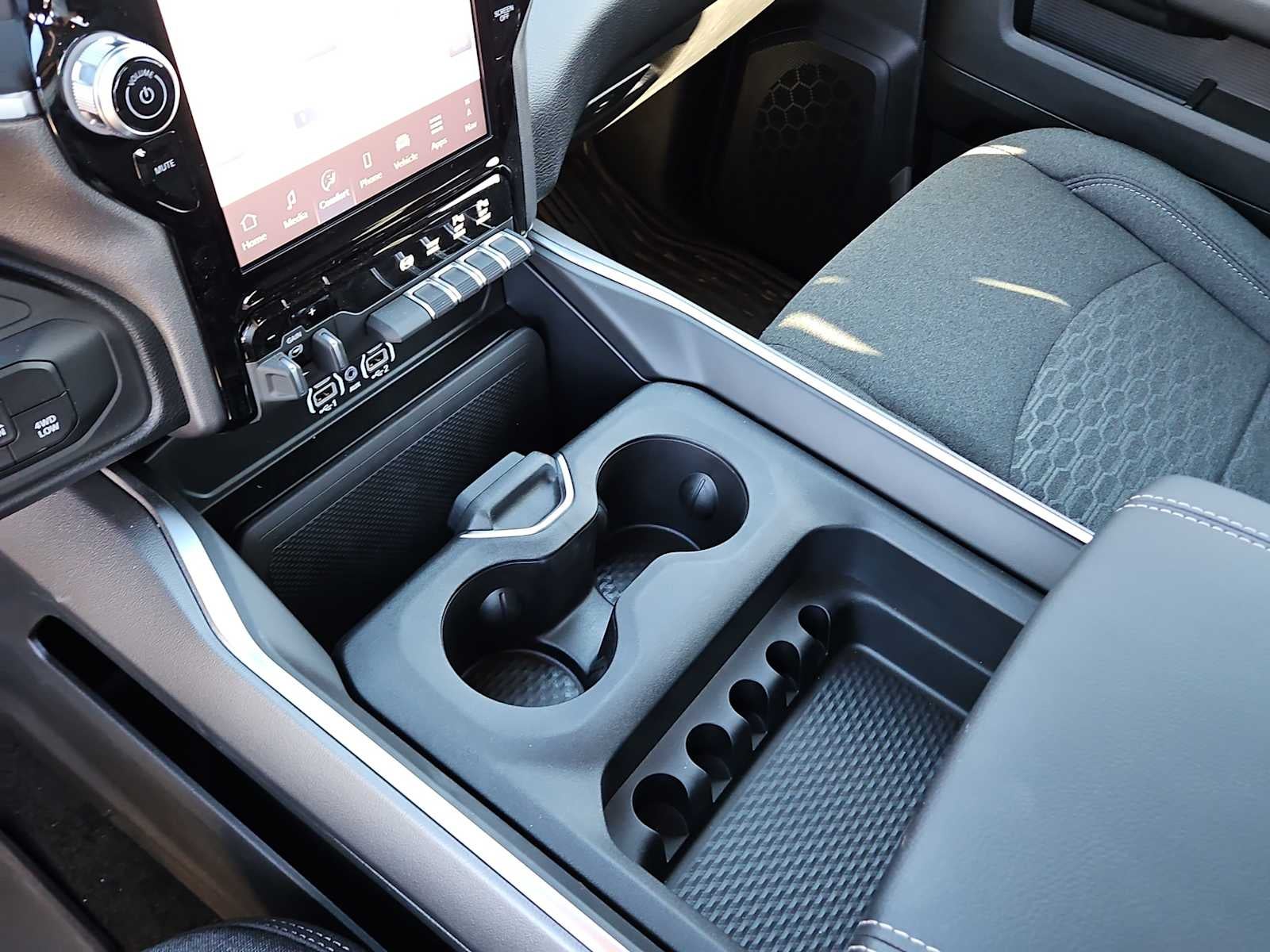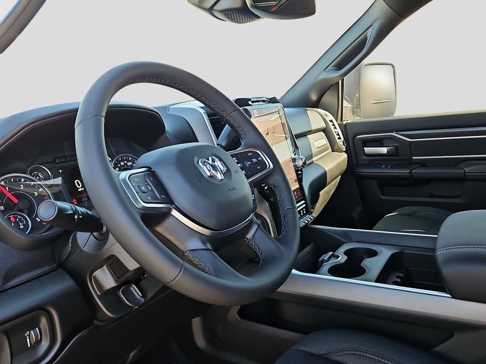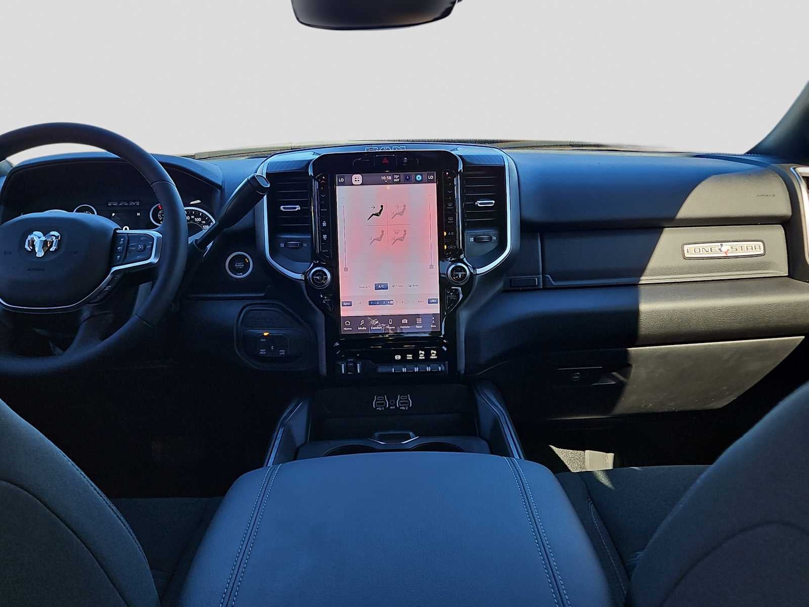 ENGINE: 6.7L I6 CUMMINS HO TURBO DIESEL Selective Catalytic Reduction (Urea), Dual 730 Amp Maintenance Free Batteries, Cummins Turbo Diesel Badge, Heavy Duty Engine Cooling, Diesel Exhaust Brake, Supplemental Heater, 3.42 Axle Ratio, Front Bumper Sight Shields, Capless Fuel Fill w/o Discriminator, GVWR: 11,040 lbs, BIG HORN LEVEL 1 PLUS EQUIPMENT GROUP Emergency Vehicle Alert System (EVAS), Lone Star IP Badge, 12 Touchscreen Display, Glove Box Lamp, Auto Power-Folding Mirrors, Footwell Courtesy Lamp, Anti-Spin Differential Rear Axle, MOPAR Deployable Bed Step, Alexa Built-In, Forward & Reverse Utility Lights, Locking Lower Glove Box, Remote Start System, 9 Alpine Speakers w/Subwoofer, Disassociated Touchscreen Display, Dual Glove Boxes, 2nd Row In Floor Storage Bins, Rear View Auto Dim Mirror, Rear Dome w/On/Off Switch Lamp, LED Bed Lighting, GPS Navigation, SiriusXM w/360L, Connected Travel & Traffic Services, Foam Bottle Insert (Door Trim Panel), Off-Road Info Pages, Trailer Tow Pages, HD Radio, Radio: Uconnect 5 Nav w/12.0 Display, Power Heated Folding Telescopic Mirrors, Steering Wheel Mounted, TOWING TECHNOLOGY GROUP CTR Stop Lamp w/Cargo View Camera, Surround View Camera System, Trailer Tire Pressure Monitoring System, Blind Spot & Cross Path Detection, LED Tail Lamps, Red Tail Lamp Bezels, Trailer Reverse Guidance, NIGHT EDITION Gloss Black Nostrils/Mic Black Grille, Tires: LT285/60R20E OWL On/Off Road, Black Exterior Truck Badging, Wheels: 20 x 8.0 Black Painted Aluminum, Body Color Grille-Surround, Black Interior Accents, Black Wheel Center Hub, Painted Front Bumper, Painted Rear Bumper, PAINTED FLAT WHEEL-TO-WHEEL SIDE STEPS, BLACK, PREMIUM CLOTH BUCKET SEATS Bucket Seats, Power Adjust 8-Way Driver Seat, Folding Flat Load Floor Storage, Rear 60/40 Folding Seat, Front Seat Back Map Pockets, Power 2-Way Driver Lumbar Adjust, Full Length Upgraded Floor Console, MOPAR FRONT & REAR RUBBER FLOOR MATS, TRANSMISSION: 8-SPEED TORQUEFLITE HD AUTOMATIC. Ram Lone Star with Diamond Black Crystal Pearlcoat exterior and Black interior features a Straight 6 Cylinder Engine with 430 HP at 2800 RPM*.