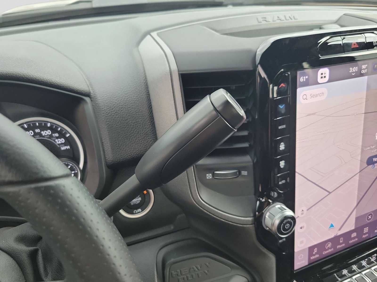 ENGINE: 6.7L I6 CUMMINS HO TURBO DIESEL Selective Catalytic Reduction (Urea), Dual 730 Amp Maintenance Free Batteries, Cummins Turbo Diesel Badge, Heavy Duty Engine Cooling, Diesel Exhaust Brake, Supplemental Heater, 3.42 Axle Ratio, Front Bumper Sight Shields, Capless Fuel Fill w/o Discriminator, GVWR: 11,040 lbs, TRADESMAN LEVEL 2 EQUIPMENT GROUP Convenience Group, Emergency Vehicle Alert System (EVAS), 12 Touchscreen Display, Anti-Spin Differential Rear Axle, Mirror Running Lights, Exterior 115V AC Outlet, Alexa Built-In, Power-Adjustable Convex Aux Mirrors, Disassociated Touchscreen Display, Matte Black Mesh Grille w/Chrome, 115V Auxiliary Front Power Outlet, Center Hub, Rear View Auto Dim Mirror, Rear Power Sliding Window, Tinted Acoustic Windshield Glass, GPS Navigation, Bright Rear Bumper, Exterior Mirrors w/Heating Element, Chrome Grille Surround, MOPAR Black Tubular Side Steps, SiriusXM w/360L, Connected Travel & Traffic Services, Carpet Floor Covering, Off-Road Info Pages, Trailer Tow Pages, 400W Inverter, HD Radio, Power Heated Folding Telescope Mirrors, Radio: Uconnect 5 Nav w/12.0, TRANSMISSION: 8-SPEED TORQUEFLITE HD AUTOMATIC, BLACK, CLOTH 40/20/40 BENCH SEAT. Ram Tradesman with Granite Crystal Metallic Clearcoat exterior and Black interior features a Straight 6 Cylinder Engine with 430 HP at 2800 RPM*.