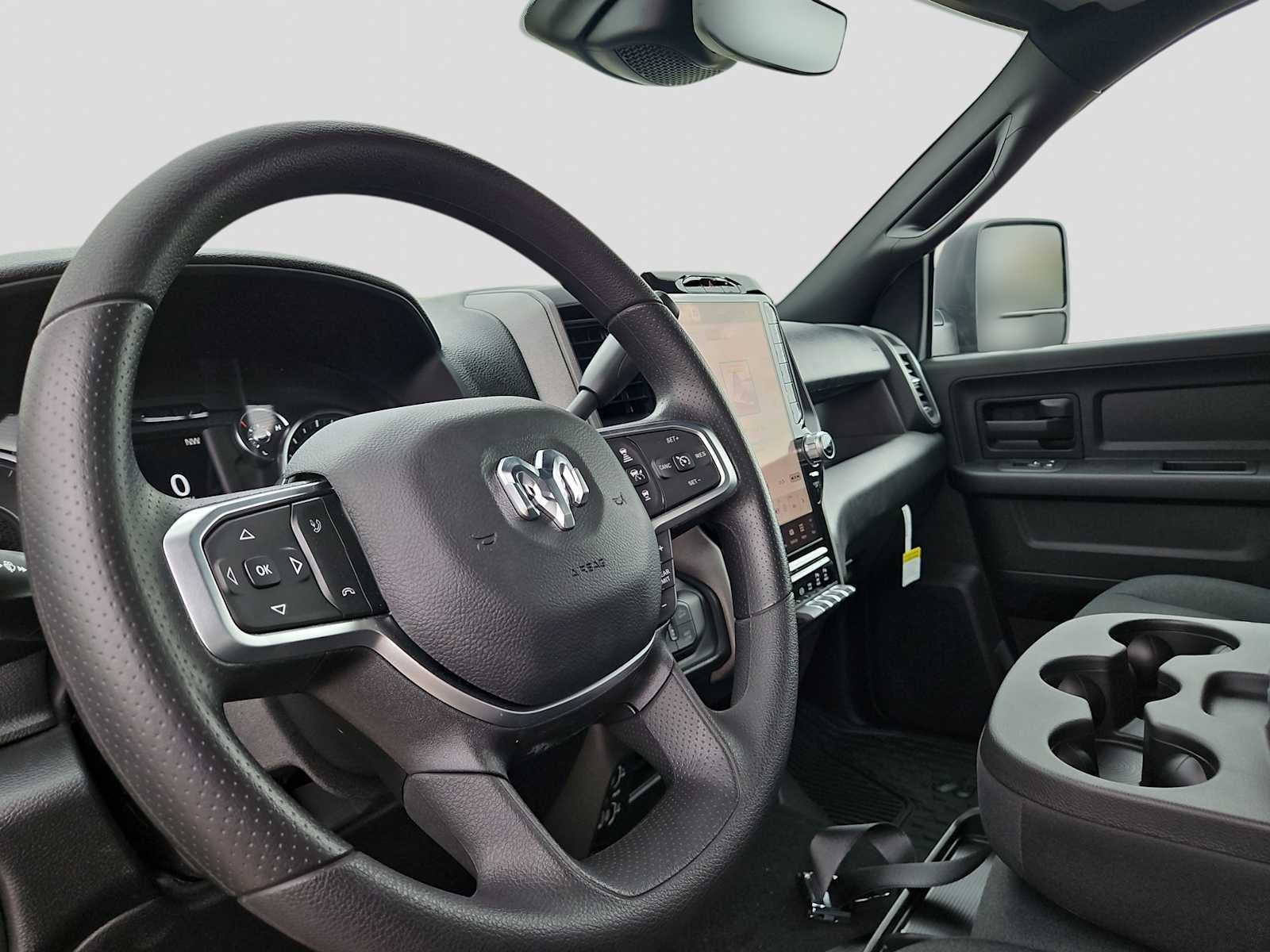 ENGINE: 6.7L I6 CUMMINS HO TURBO DIESEL Selective Catalytic Reduction (Urea), Dual 730 Amp Maintenance Free Batteries, Cummins Turbo Diesel Badge, Heavy Duty Engine Cooling, Diesel Exhaust Brake, Supplemental Heater, 3.42 Axle Ratio, Front Bumper Sight Shields, Capless Fuel Fill w/o Discriminator, GVWR: 11,040 lbs, QUICK ORDER PACKAGE 24B WARLOCK Engine: 6.7L I6 Cummins HO Turbo Diesel, Transmission: 8-Speed TorqueFlite HD Automatic, Auto Power-Folding Mirrors, Exterior Mirrors w/Heating Element, Front Performance Tuned Shock Absorbers, Anti-Spin Differential Rear Axle, Mirror Running Lights, Warlock Decal, Carpet Floor Covering, Power-Adjustable Convex Aux Mirrors, Forward & Reverse Utility Lights, Power Heated Folding Telescopic Mirrors, Exterior Mirrors w/Supplemental Signals, Exterior Mirrors Courtesy Lamps, Rear Performance Tuned Shock Absorbers, Power Adjust Mirrors, Goodyear Brand Tires, 18 Steel Spare Wheel, Black Wheel Flares, Power Telescoping Mirrors, Hill Descent Control, TRADESMAN LEVEL 1 EQUIPMENT GROUP Convenience Group, Rear View Auto Dim Mirror, Rear Power Sliding Window, Emergency Vehicle Alert System (EVAS), 12 Touchscreen Display, Tinted Acoustic Windshield Glass, GPS Navigation, MOPAR Black Tubular Side Steps, SiriusXM w/360L, Connected Travel & Traffic Services, Exterior 115V AC Outlet, Alexa Built-In, Off-Road Info Pages, Trailer Tow Pages, 400W Inverter, Disassociated Touchscreen Display, HD Radio, Radio: Uconnect 5 Nav w/12.0 Display, Air Conditioning ATC w/Dual Zone Control, 115V Auxiliary Front Power Outlet, Front & Rear Floor Mats, ParkSense Front/Rear Park Assist System, BED CONVENIENCE GROUP MOPAR Spray In Bedliner, LED Bed Lighting, TRANSMISSION: 8-SPEED TORQUEFLITE HD AUTOMATIC. Ram Warlock with Granite Crystal Metallic Clearcoat exterior and Black interior features a Straight 6 Cylinder Engine with 430 HP at 2800 RPM*.