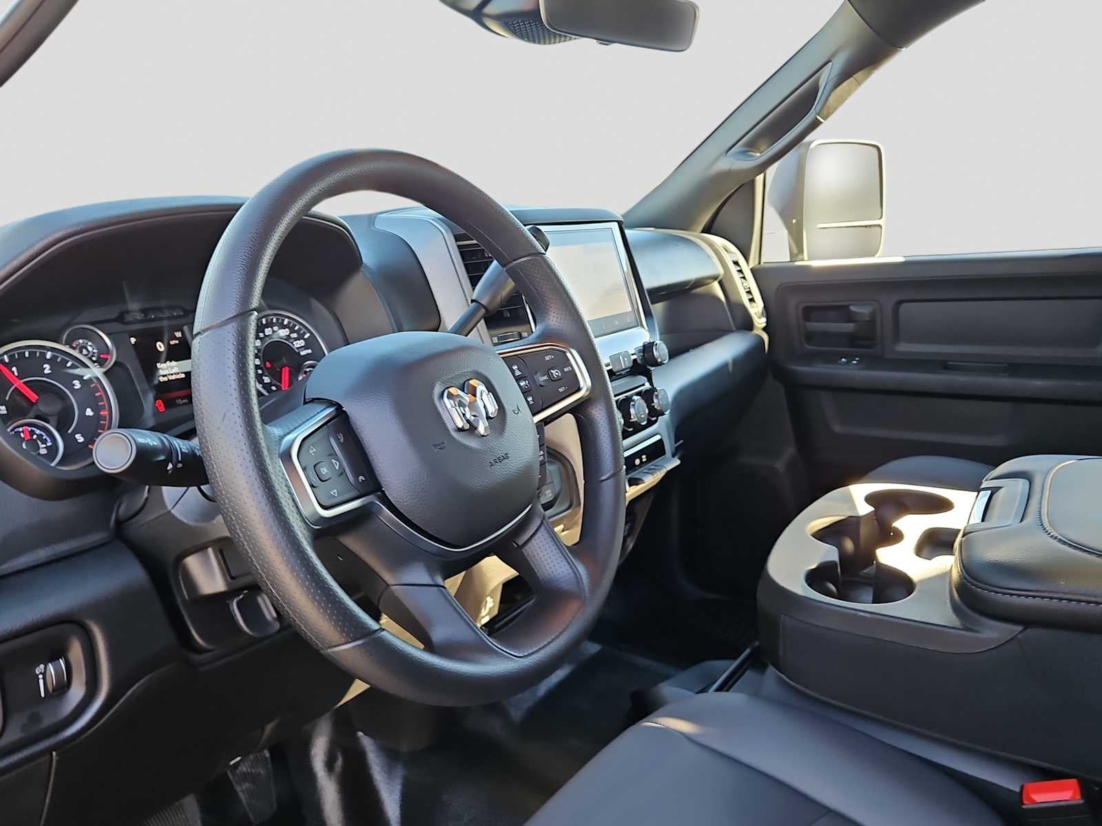 ENGINE: 6.7L I6 CUMMINS HO TURBO DIESEL Selective Catalytic Reduction (Urea), Dual 730 Amp Maintenance Free Batteries, Cummins Turbo Diesel Badge, Heavy Duty Engine Cooling, Current Generation Engine Controller, Diesel Exhaust Brake, Supplemental Heater, 3.42 Axle Ratio, Front Bumper Sight Shields, Capless Fuel Fill w/o Discriminator, DUAL REAR WHEELS Clearance Lamps, Tires: LT235/80R17E BSW All Season, 17 Steel Spare Wheel, Box & Rear Fender Clearance Lamps, 6000# Front Axle w/Hub Ext, Nexen Brand Tires, GVWR: 14,000 lb, Rear Wheelhouse Liners, MOPAR BLACK TUBULAR SIDE STEPS, BED CONVENIENCE GROUP MOPAR Spray In Bedliner, LED Bed Lighting, TRANSMISSION: 8-SPEED TORQUEFLITE HD AUTOMATIC. Ram Tradesman with Diamond Black Crystal Pearlcoat exterior and Diesel Gray/Black interior features a Straight 6 Cylinder Engine with 430 HP at 2800 RPM*.