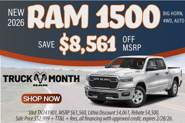 Ex. Stk# TN241901, MSRP $61,560, Lithia Discount $4,061, Rebate $4,500, Sale Price $52,999 + TT&L + fees, all financing with approved credit, expires 2/28/26.