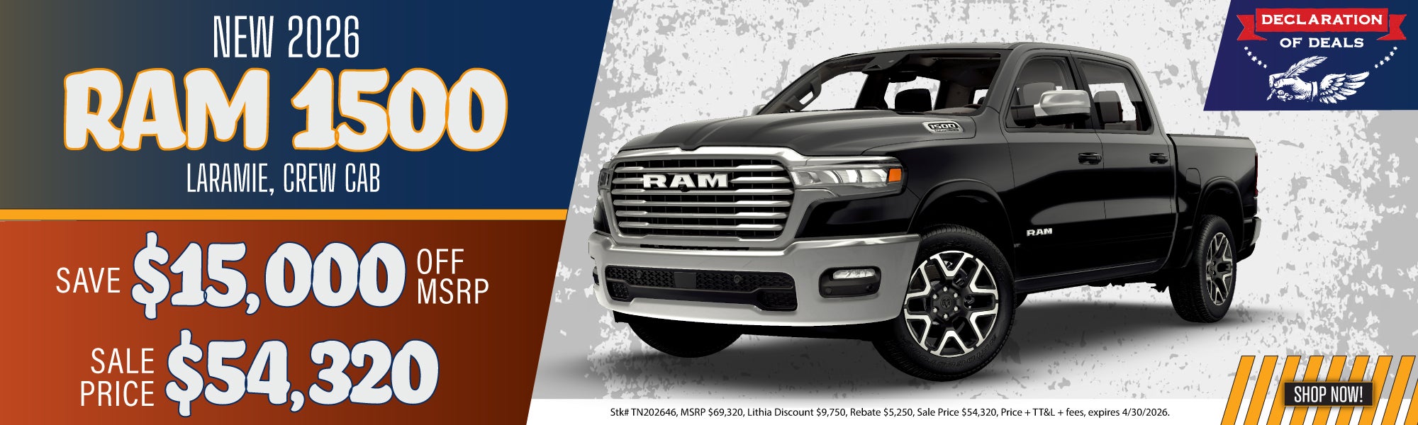 Stk# TN202646, MSRP $69,320, Lithia Discount $9,750, Rebate $5,250, Sale Price $54,320, Price + TT&L + fees, ends 4/30/26.