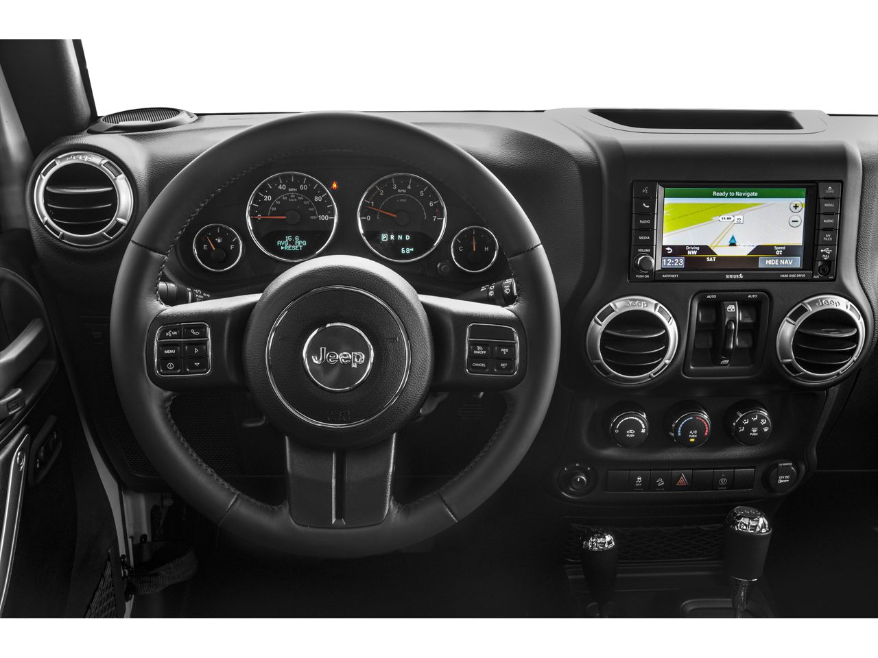 RADIO: UCONNECT 730N CD/DVD/MP3/HDD/NAV SIRIUSXM Traffic, Remote USB Port, Integrated Voice Command w/Bluetooth®, 40GB Hard Drive w/20GB Available, SiriusXM Travel Link, Uconnect Voice Command w/Bluetooth®, TRANSMISSION: 5-SPEED AUTOMATIC (W5A580) Tip Start, 3.73 Rear Axle Ratio, Hill Descent Control, DARK SADDLE/BLACK, LEATHER TRIMMED BUCKET SEATS Front Seat Back Map Pockets, Driver Height Adjuster Seat, Heated Front Seats, BLACK 3-PIECE HARD TOP If ordering without AEM (Dual Top Group), the black soft top will not be included, Freedom Panel Storage Bag, Rear Window Defroster, Rear Window Wiper/Washer, Delete Sunrider Soft Top, ALPINE 9-SPEAKER W/ALL WEATHER SUBWOOFER Amplified 552W 9 speaker, including subwoofer, MAX TOW PACKAGE Class II Receiver Hitch, Trailer Tow w/4-Pin Connector Wiring, SUPPLEMENTAL FRONT SEAT SIDE AIR BAGS, REMOTE START SYSTEM, AIR CONDITIONING W/AUTO TEMP CONTROL Humidity Sensor, Air Filtering, CONNECTIVITY GROUP Vehicle Information Center, Tire Pressure Monitoring Display, ENGINE: 3.6L V6 24V VVT (STD). Jeep Rubicon with Bright White Clearcoat exterior and Dark Saddle/Black interior features a V6 Cylinder Engine with 285 HP at 6400 RPM*.