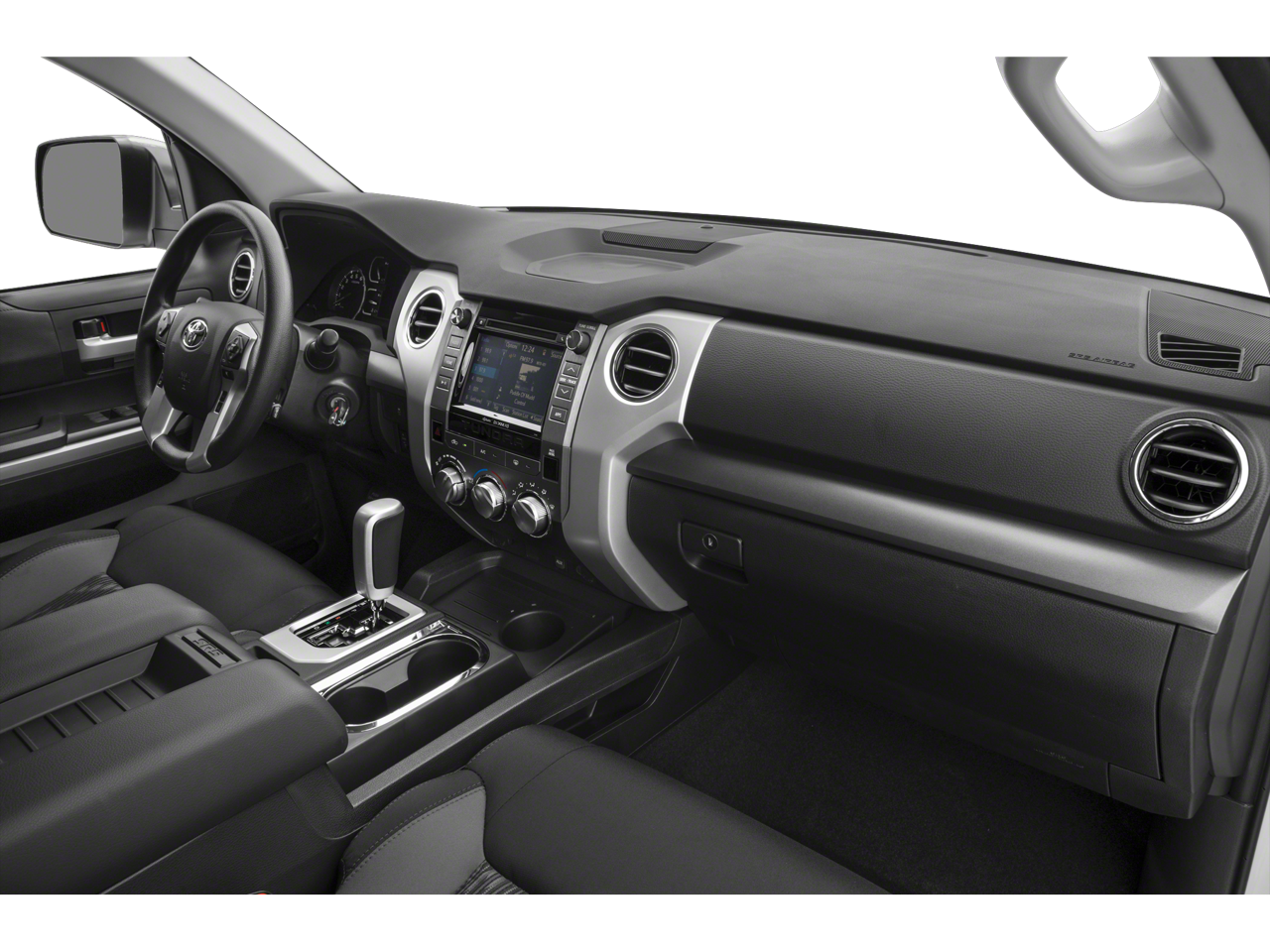 SR5 UPGRADE PACKAGE front center console w/3 cupholders and replaces standard equipment column shifter w/floor mounted urethane shift lever and knob, Urethane Tilt/Telescopic Steering Wheel, Anti-Theft Immobilizer w/Alarm, 38 Gallon Fuel Tank Capacity, Front Bucket Seats, 8-way power-adjustable drivers seat w/power lumbar support and 4-way manual adjustable front passenger seat, RADIO: ENTUNE PREMIUM AUDIO AM/FM W/HD RADIO & CD integrated navigation system, MP3/WMA playback capability, AM/FM cache radio, 9 speakers, 7 high-resolution touch-screen w/split-screen display, auxiliary audio jack, USB media port, HD Radio predictive traffic and Doppler weather overlay, Bluetooth® hands-free phone capability w/advanced voice recognition, phone book access and music streaming and Siri Eyes Free, Entune App Suite, Destination Search, iHeartRadio, Yelp and Slacker Radio, Auto-Dimming Rearview Mirror, SIRIUSXM Satellite Radio, complimentary SiriusXM All Access, HomeLink Universal Transceiver. Toyota SR5 with Super White exterior and GRAPHITE interior features a 8 Cylinder Engine with 381 HP at 5600 RPM*.