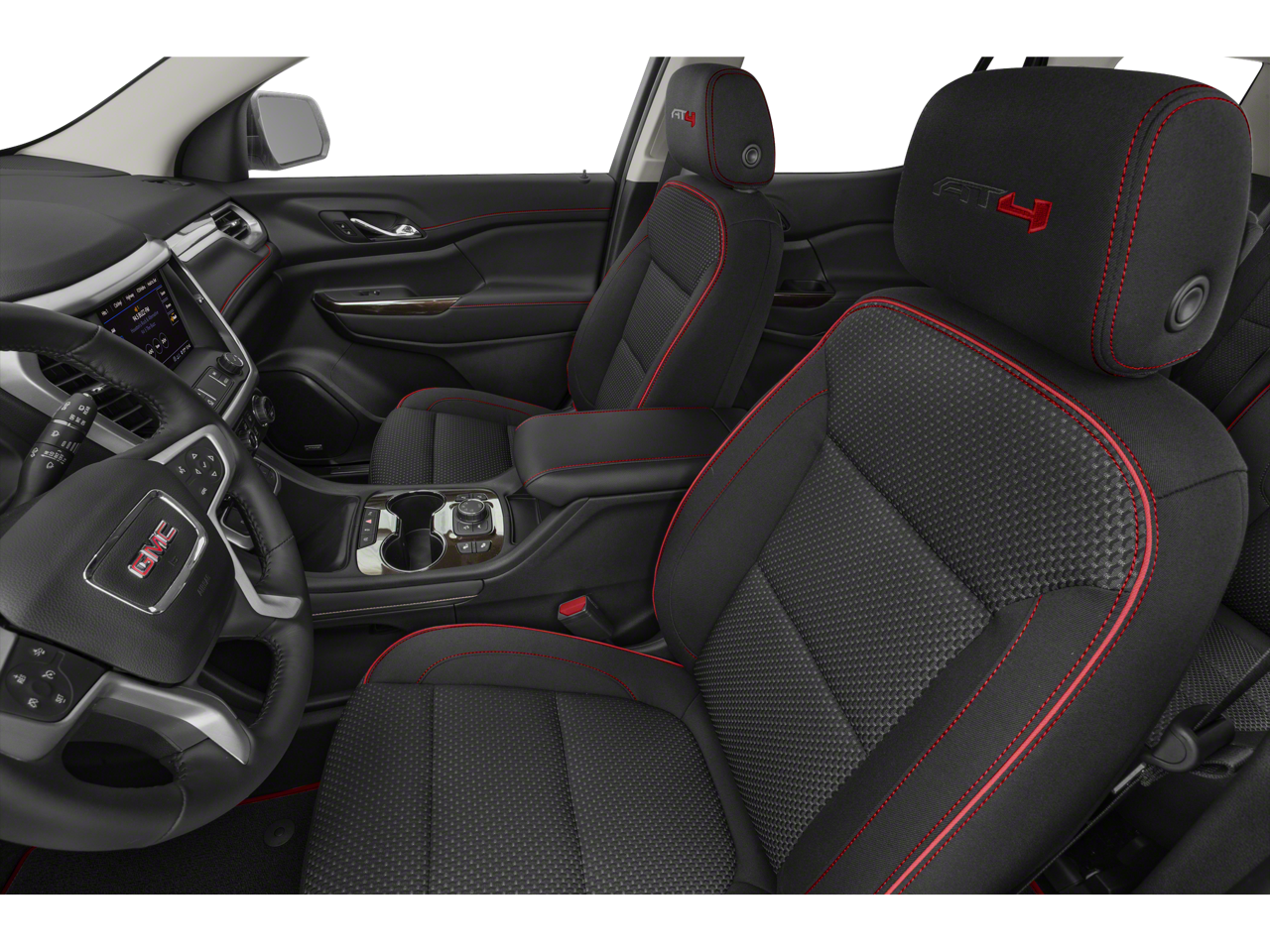 TRAILERING PACKAGE includes factory-installed hitch, 4000 lbs. towing, 7-pin wiring harness, Class III hitch, (V08) heavy-duty cooling system, (PZ8) Hitch Guidance and (CTT) trailering assist guidelines, LPO, ROOF RACK CROSS RAILS, AUDIO SYSTEM, 8 DIAGONAL GMC INFOTAINMENT SYSTEM WITH NAVIGATION includes multi-touch display, AM/FM/SiriusXM stereo, Bluetooth® streaming audio for music and most phones, Android Auto® and Apple CarPlay® capability for compatible phones, advanced voice recognition, in-vehicle apps, personalized profiles for infotainment and vehicle settings (Standard on models built after September 23rd, 2019) (STD), ENGINE, 3.6L V6, SIDI, DOHC with Variable Valve Timing (VVT) (310 hp [231.1 kW] @ 6600 rpm, 271 lb-ft of torque [365.9 N-m]) @ 5000 rpm (STD), TRANSMISSION, 9-SPEED AUTOMATIC, ELECTRONICALLY-CONTROLLED with 3.6L V6 engine (STD). GMC AT4 with Red Quartz Tintcoat exterior and Jet Black interior features a V6 Cylinder Engine with 310 HP at 6600 RPM*.