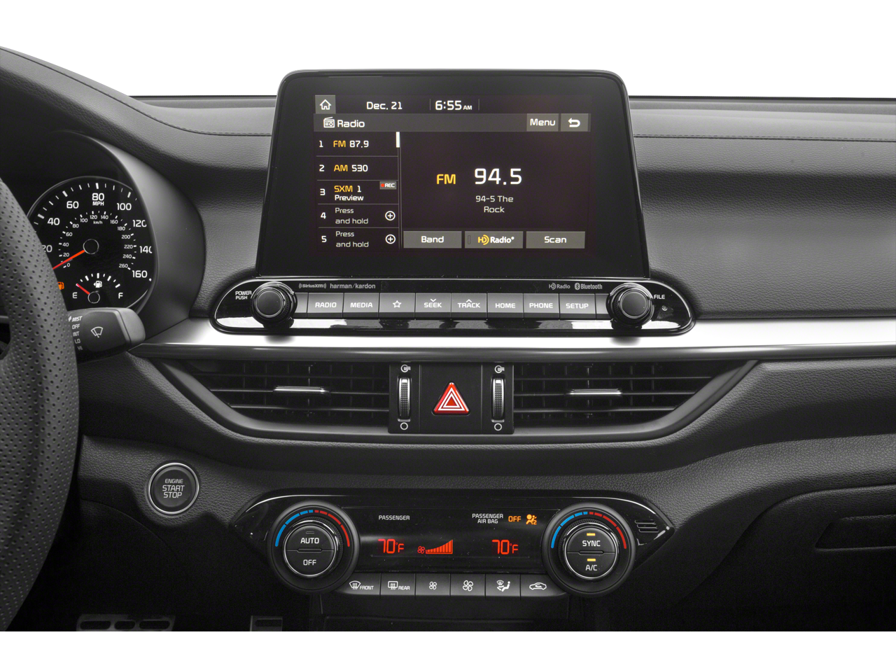 Leather Seats, Back-Up Camera, iPod/MP3 Input, Bluetooth®, Aluminum Wheels, Keyless Start, Smart Device Integration, Apple CarPlay®, Blind Spot Monitor, Cross-Traffic Alert, Lane Keeping Assist Rear Spoiler, MP3 Player, Remote Trunk Release, Keyless Entry, Child Safety Locks. Kia GT-Line with Deep Sea Blue exterior and Black interior features a 4 Cylinder Engine with 147 HP at 6200 RPM*.