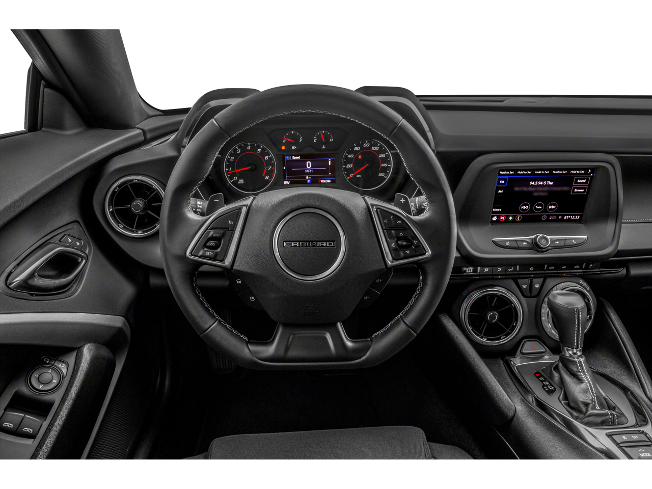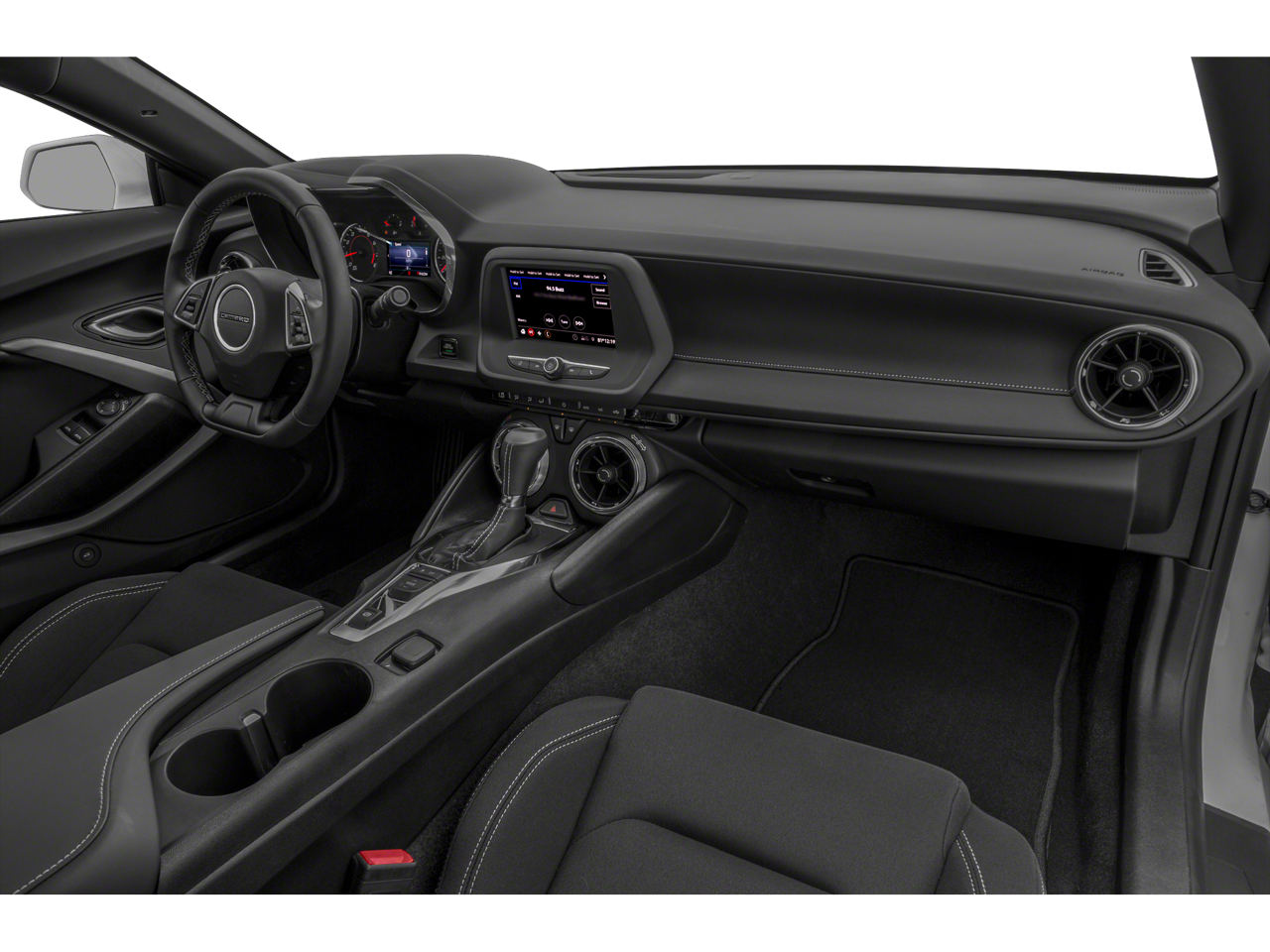 TRANSMISSION, 10-SPEED AUTOMATIC includes transmission oil cooler and (BTV) remote vehicle starter system, WHEELS, 20 (50.8 CM) 5-SPOKE CARBON FLASH PAINTED ALUMINUM, AUDIO SYSTEM, CHEVROLET INFOTAINMENT 3 SYSTEM, 7 DIAGONAL COLOR TOUCHSCREEN, AM/FM STEREO. Additional features for compatible phones include: Bluetooth® audio streaming for 2 active devices, voice command pass-through to phone, Apple CarPlay® and Android Auto® capable. (STD), ENGINE, 6.2L (376 CI) V8 DI, VVT (455 hp [339.3 kW] @ 6000 rpm, 455 lb-ft of torque [614.3 N-m] @ 4400 rpm) (STD). Chevrolet LT1 with Black exterior and Jet Black interior features a 8 Cylinder Engine with 455 HP at 6000 RPM*.