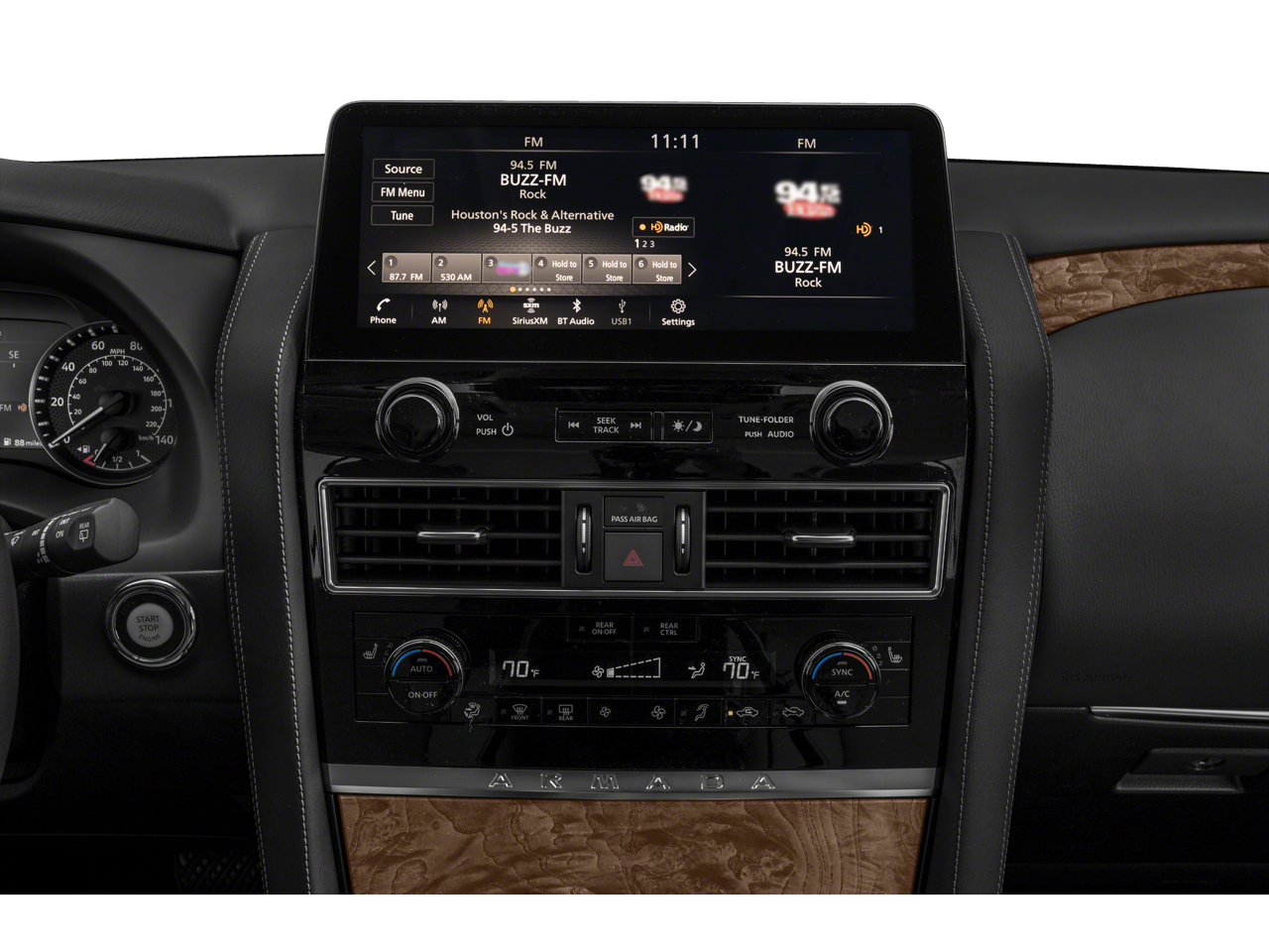MIDNIGHT EDITION PACKAGE black exterior logos, black interior headliner and black interior trim, Rear LED Lamps w/Black Paint Finisher, Wheels: 20 x 8J Aluminum Alloy, 18-spoke, Cargo Mat & Midnight Edition Floor Mats, Black Painted Roof Rails, Front & Rear Lower Center Bumper Fascias, Black painted, Black Painted Grille, Auto-Dimming Exterior Mirror w/LED Turn Signals, Black painted, heated, power adjust and folding and reverse linked w/puddle lights, CAPTAINS CHAIRS PACKAGE Seating revised from 8 to 7 passengers, 2nd Row Captains Chairs, 2nd Row Center Console w/Padded Armrest. Nissan SL with Aspen White TriCoat Pearl exterior and Midnight Edition interior features a 8 Cylinder Engine with 400 HP at 5800 RPM*.