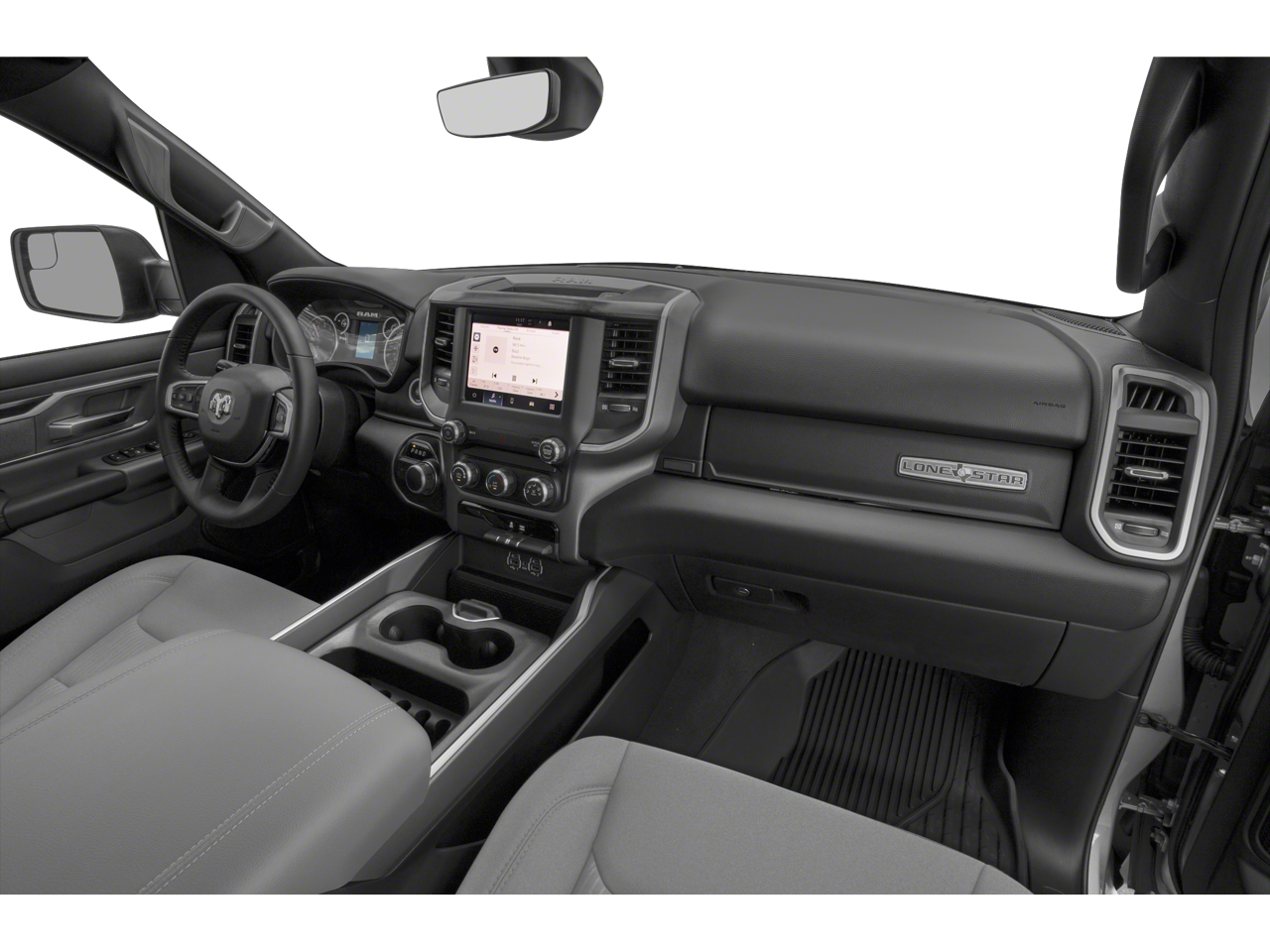 BIG HORN LEVEL A EQUIPMENT GROUP Google Android Auto®, SiriusXM Radio Service, Bluetooth® Handsfree Phone & Audio, USB Host Flip, Rear Window Defroster, Integrated Center Stack Radio, Rear View Auto Dim Mirror, Power Adjustable Pedals, For More Info, Call 800-643-2112, Rear Power Sliding Window, Rear Dome w/On/Off Switch Lamp, Connectivity - US/Canada, Lone Star IP Badge, Glove Box Lamp, 4G LTE Wi-Fi Hot Spot, Power 8-Way Driver Seat, Auto Dim Exterior Driver Mirror, Radio: Uconnect 5 W w/8.4 Display, 8.4 Touchscreen Display, Foam Bottle Insert (Door Trim Panel), Class IV Receiver Hitch, Apple CarPlay®, Black Premium Power Mirrors (GUL), SiriusXM Satellite Radio, Exterior Mirrors w/Supplemental Signals, Exterior Mirrors Courtesy Lamps, Universal Garage Door Opener, Cluster 3.5 TFT Color, BLACK, DELUXE CLOTH BUCKET SEATS Power 8-Way Driver Seat, Bucket Seats, Full Length Floor Console, Delete LED Lamp - Floor Console Bin, Power 2-Way Driver Lumbar Adjust, REMOTE START SYSTEM, TRANSMISSION: 8-SPEED AUTOMATIC (850RE) (STD), ENGINE: 3.6L V6 24V VVT ETORQUE UPG I (STD). Ram Lone Star with Flame Red Clearcoat exterior and Black interior features a V6 Cylinder Engine with 305 HP at 6400 RPM*.