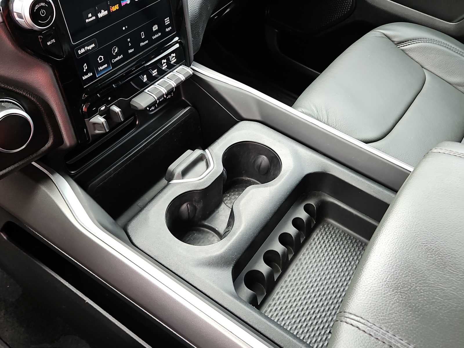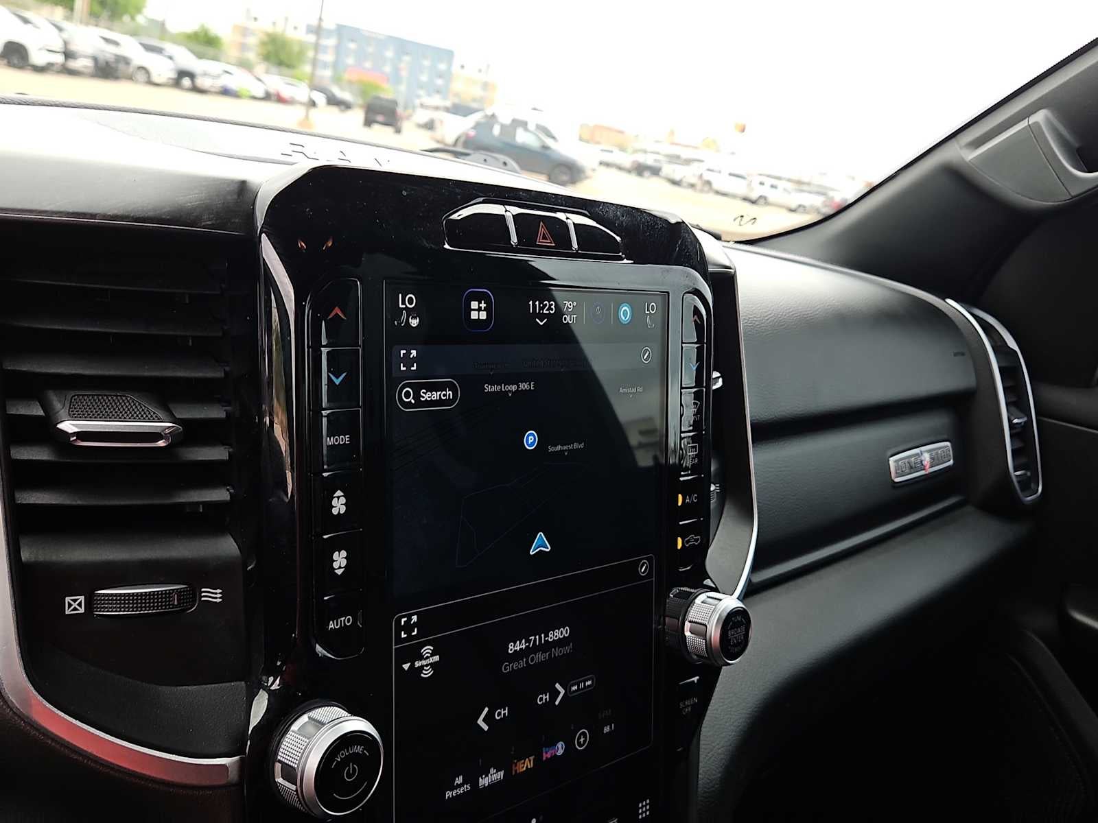 BIG HORN LEVEL 2 EQUIPMENT GROUP Google Android Auto®, USB Host Flip, Power Adjustable Pedals, For More Info, Call 800-643-2112, Front Fog Lamps, Lone Star IP Badge, Glove Box Lamp, Media Hub w/2 Charge Only USBs, Heated Front Seats, 8.4 Touchscreen Display, Class IV Receiver Hitch, Security Alarm, Black Premium Power Mirrors, Apple CarPlay®, Remote Start System, SiriusXM Satellite Radio, 9 Amplified Speakers w/Subwoofer, 115V Auxiliary Power Outlet, Universal Garage Door Opener, Electric Shift On Demand Transfer Case, 2nd Row In Floor Storage Bins, Sun Visors w/Illuminated Vanity Mirrors, LED Footwell Lighting, Power 2-Way Driver Lumbar Adjust, Bluetooth® Handsfree Phone & Audio, Rear Window Defroster, Integrated Center Stack Radio, ParkSense Front/Rear Park Assist w/Stop, Rear View Auto, ENGINE: 5.7L V8 HEMI MDS VVT ETORQUE Active Noise Control System, Heavy Duty Engine Cooling, Passive Tuned Mass Damper, Dual Rear Exhaust w/Bright Tips, HEMI Badge, 23 Gallon Fuel Tank, 18 Aluminum Spare Wheel, NIGHT EDITION Tires: 275/55R20 OWL All Season, Bridgestone Brand Tires, Accent Color Premium Power Mirrors, Exterior Mirrors w/Supplemental Signals, Black Headlamp Bezels, Exterior Mirrors Courtesy Lamps, Auto Dim Exterior Driver Mirror, Black Exterior Truck Badging, Anti-Spin Differential Rear Axle, Wheels: 20 x 9.0 Premium Paint/Polished, Accent Color Door Handles, Black Interior Accents, Dual Exhaust w/Black Tips, Power-Folding Mirrors, Body Color Front Bumper, Body Color Rear Bumper w/Step Pads, RAM Grille Badge - Black, Black Painted Exterior Mirrors Caps, RADIO: UCONNECT 5 NAV W/12.0 DISPLAY Google Android Auto®, USB Host Flip, Disassociated Touchscreen Display, HD Radio, Integrated Center Stack Radio, For More Info, Call 800-643-2112, Connectivity - US/Canada, 12 Touchscreen Display, GPS Navigation, 4G LTE Wi-Fi Hot Spot, SiriusXM w/360L, All Radio Equipped Vehicles, Connected Travel & Traffic Services, All R1 High Radios, Apple CarPlay®, PREMIUM LIGHTING GROUP Front LED Fog Lamps, LED Reflector Headlamps, LED Taillamps, BLIND SPOT & CROSS PATH DETECTION LED Taillamps, TRANSMISSION: 8-SPEED AUTOMATIC (8HP75), BLACK, DELUXE CLOTH BUCKET SEATS Power 8-Way Driver Seat, Center Console Parts Module, Bucket Seats, Manual Adjust 4-Way Front Passenger Seat, Full Length Floor Console, Rear Center Armrest, Power 2-Way Driver Lumbar Adjust. Ram Lone Star with Granite Crystal Metallic Clearcoat exterior and Black interior features a 8 Cylinder Engine with 395 HP at 5600 RPM*.