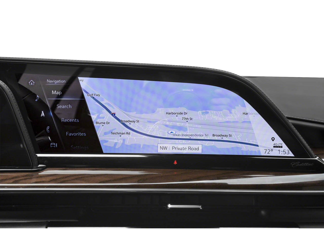 TOURING PACKAGE includes (AF7) front and rear, soft-close doors, (B7G) illuminating sill plates and (F47) Air Ride Adaptive suspension, NIGHT VISION, REAR SEAT ENTERTAINMENT SYSTEM includes dual independent rear seat-mounted 12.6 diagonal color-touch LCD HD screens, 2 HDMI input ports on the back of the center console, two 2-channel Bluetooth® headphones; compatible with other Bluetooth® headphones, SUSPENSION, AIR RIDE ADAPTIVE, OLED INFOTAINMENT EXPERIENCE WITH NAVIGATION AM/FM/SiriusXM with 360L with 16.9 diagonal color information display (displays and controls navigation, music and all features and functions of the vehicle), personalized profiles for each drivers settings, Natural Voice Recognition, Phone Integration for Wireless Apple CarPlay®/Wireless Android Auto® capability for compatible phone, Connected Apps and Teen Driver (STD), ENGINE, 6.2L V8 WITH DYNAMIC FUEL MANAGEMENT Direct Injection and Variable Valve Timing, includes aluminum block construction (420 hp [313.2 kW] @ 5600 rpm, 460 lb-ft of torque [623.7 Nm] @ 4100 rpm) (STD), TRANSMISSION, 10-SPEED AUTOMATIC electronically controlled with overdrive, tow/haul mode and tap up/tap down shifting (STD). Cadillac 4WD Sport with Argent Silver Metallic exterior and Jet Black interior features a 8 Cylinder Engine with 420 HP at 5600 RPM*.