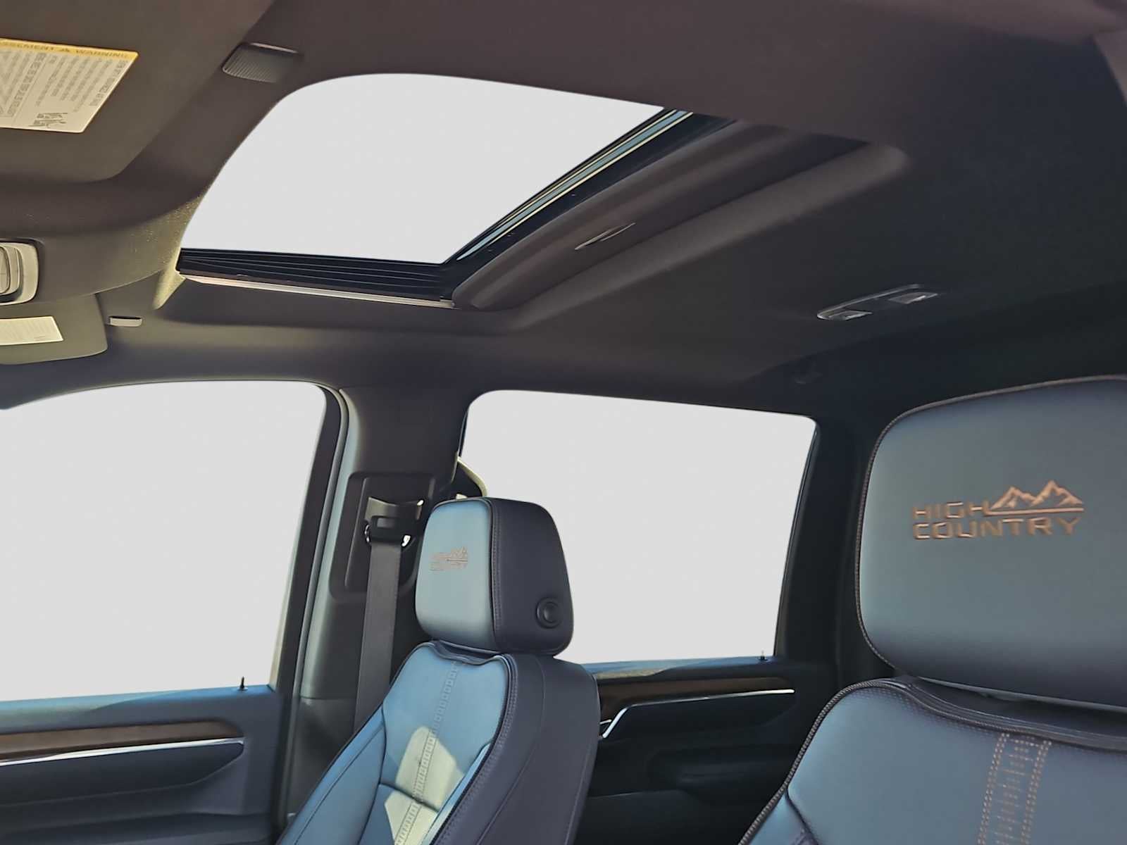 ENGINE, DURAMAX 6.6L TURBO-DIESEL V8 B20-Diesel compatible, (470 hp [350.5 kW] @ 2800 rpm, 975 lb-ft of torque [1322 Nm] @ 1600 rpm), ASSIST STEPS, POWER-RETRACTABLE, WITH BRIGHT TRIM includes LED lighting, SUNROOF, POWER on Crew Cab models, GOOSENECK/5TH WHEEL PREP PACKAGE Hitch platform to accept Gooseneck or 5th Wheel hitch. Includes hitch platform with tray to accept ball, stamped bed holes with removable caps installed and bed mounted 7-pin trailer harness (similar to UY2 harness). (Includes (CGN) Chevytec spray-on bedliner. AUDIO SYSTEM, CHEVROLET INFOTAINMENT 3 PREMIUM SYSTEM with Google built-in compatibility (select service plan required, terms and limitations apply) including navigation capability, 13.4 diagonal HD color touchscreen, includes multi-touch display, AM/FM stereo, Bluetooth® streaming audio for music and most phones; featuring Wireless Apple CarPlay® and Wireless Android Auto® capability for compatible phones, advanced voice recognition, in-vehicle apps, personalized profiles for infotainment and vehicle settings (STD), TRANSMISSION, ALLISON 10-SPEED AUTOMATIC. Chevrolet High Country with Black exterior and Jet Black/Nightshift Blue interior features a 8 Cylinder Engine with 401 HP at 5200 RPM*.