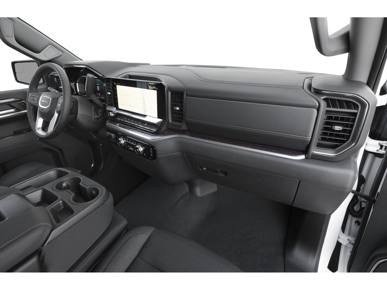 AUDIO SYSTEM, 13.4 DIAGONAL PREMIUM GMC INFOTAINMENT SYSTEM WITH GOOGLE BUILT IN APPS SUCH AS NAVIGATION AND VOICE ASSISTANCE, INCLUDES COLOR TOUCH-SCREEN, MULTI-TOUCH DISPLAY, AM/FM STEREO Bluetooth® streaming audio for music and most phones; featuring wireless Android Auto® and Apple CarPlay® capability for compatible phones (STD), ENGINE, 5.3L ECOTEC3 V8 (355 hp [265 kW] @ 5600 rpm, 383 lb-ft of torque [518 Nm] @ 4100 rpm); featuring Dynamic Fuel Management (STD), TRANSMISSION, 10-SPEED AUTOMATIC, (COLUMN SHIFTER) ELECTRONICALLY CONTROLLED with overdrive and tow/haul mode. Includes Cruise Grade Braking and Powertrain Grade Braking (STD). GMC SLT with Onyx Black exterior and Jet Black interior features a 8 Cylinder Engine with 355 HP at 5600 RPM*.